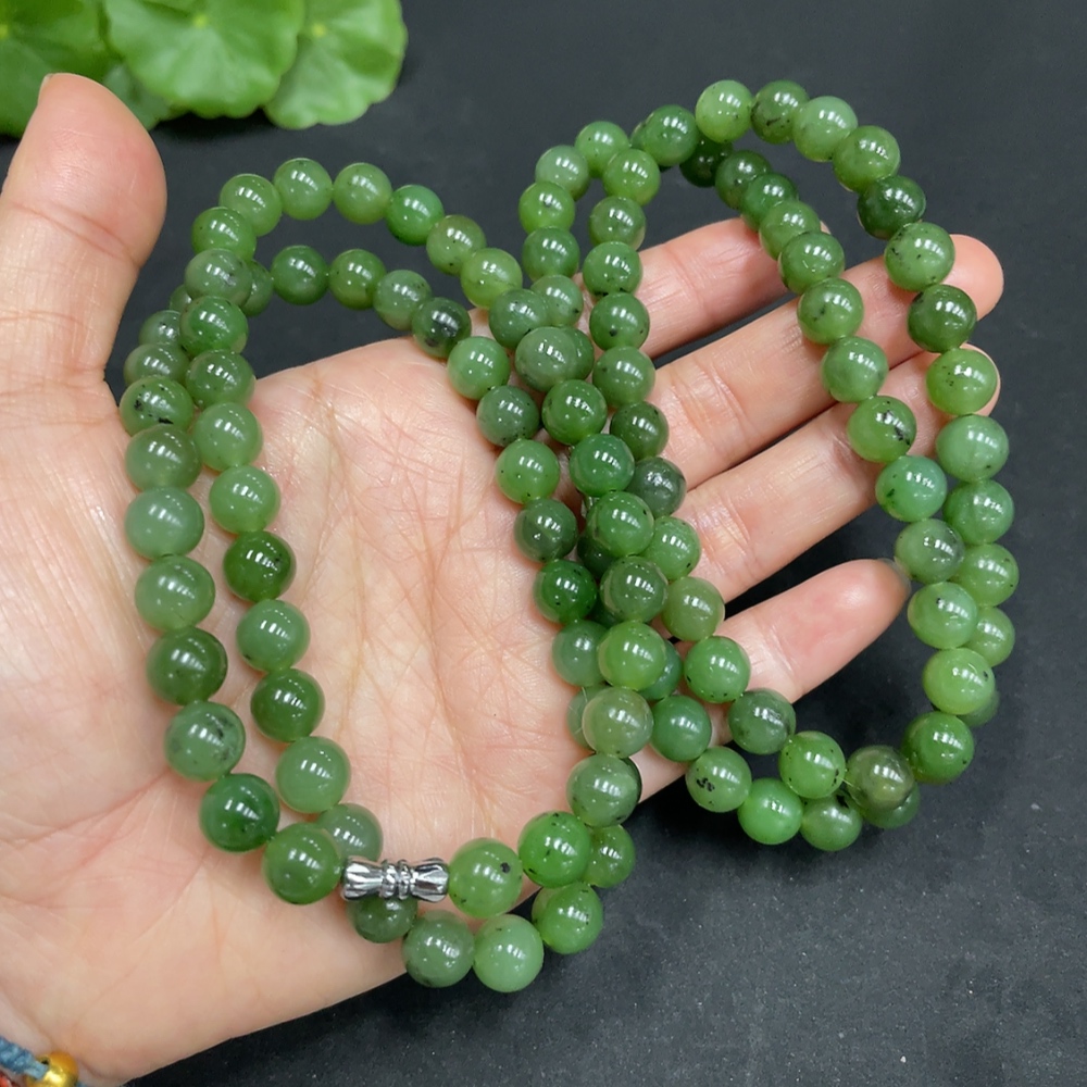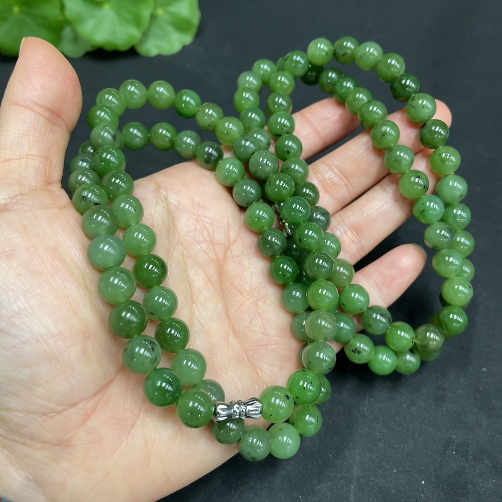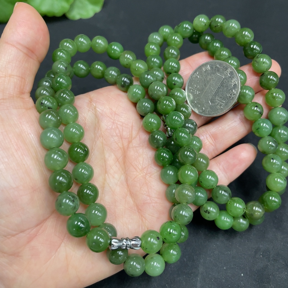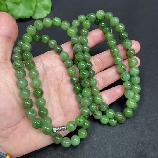 Hetian Jade Jasper Bead Necklace, Approx. 8/7.9mm, Total Weight Approx. 94.9g