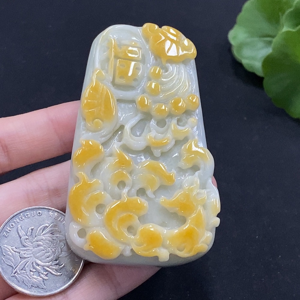Jadeite Nine-Tailed Fox Pendant Total Weight Approx. 81.34g