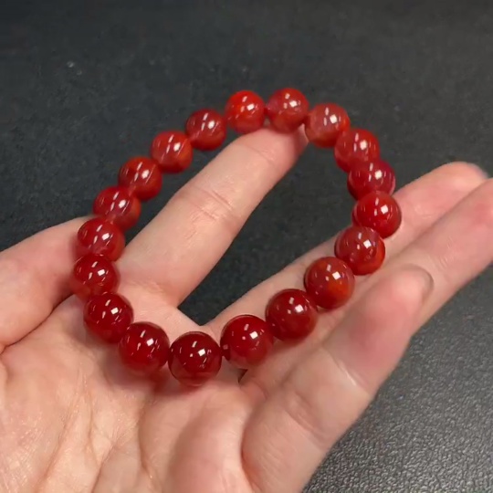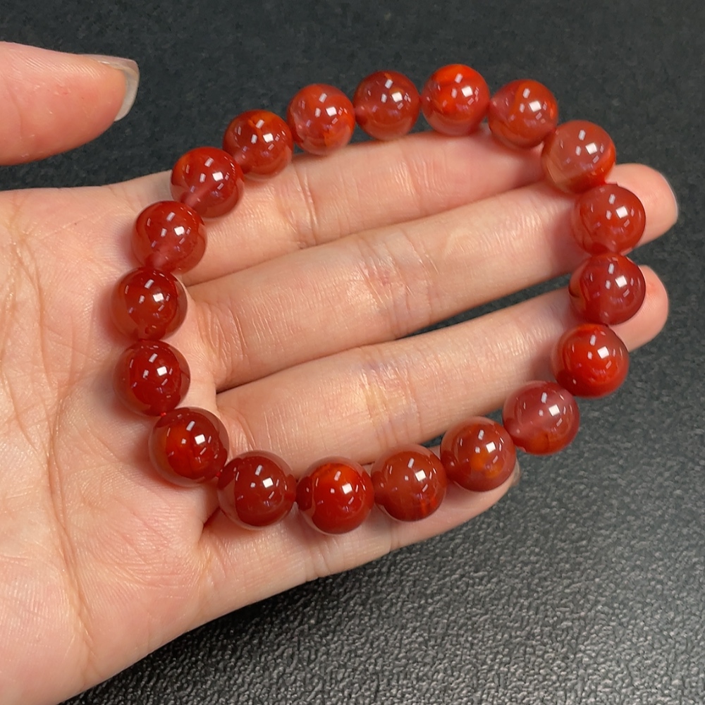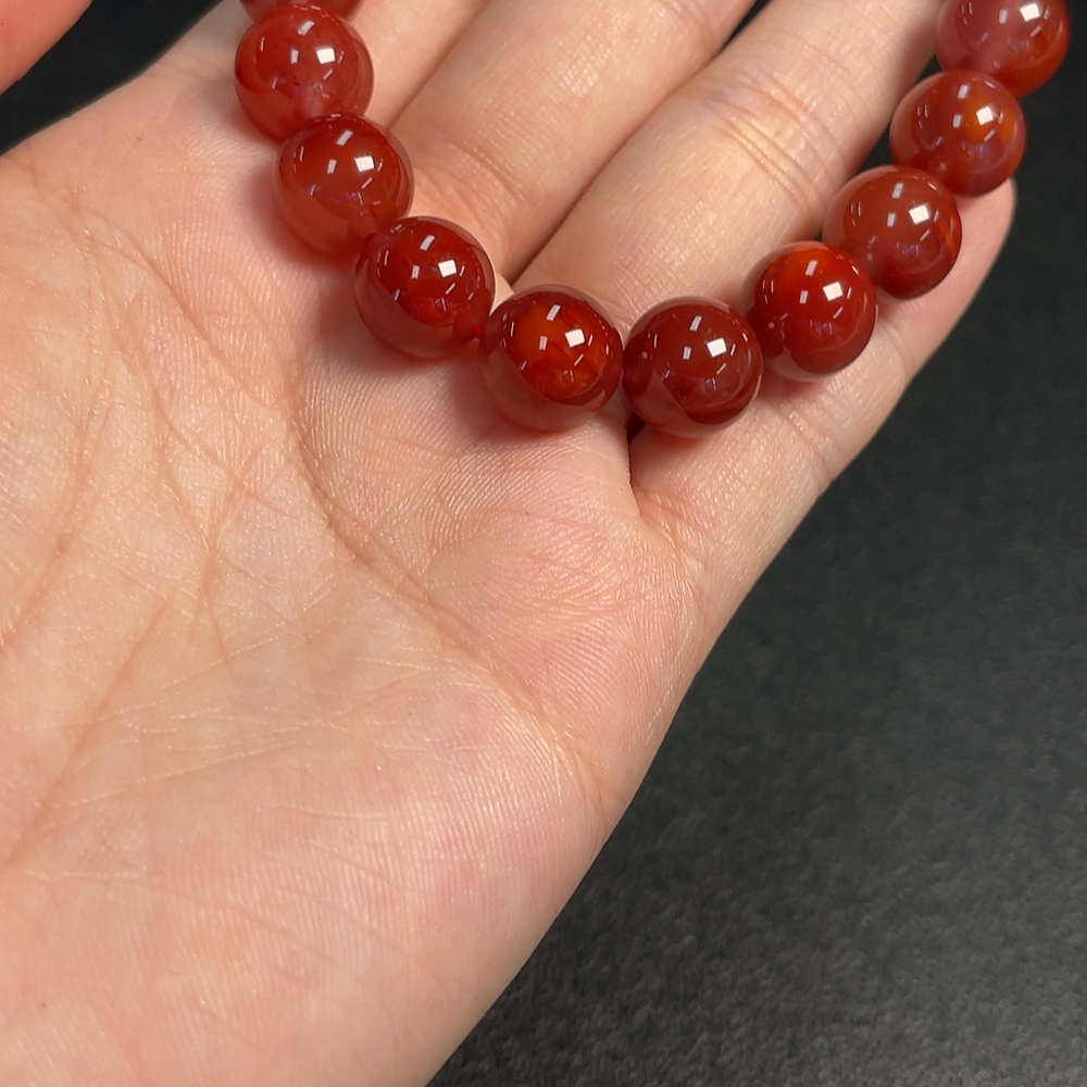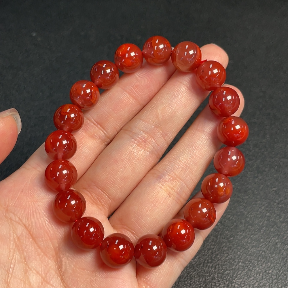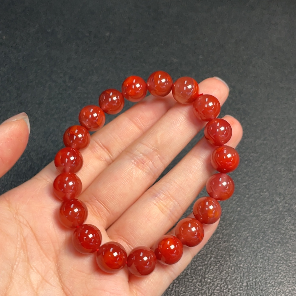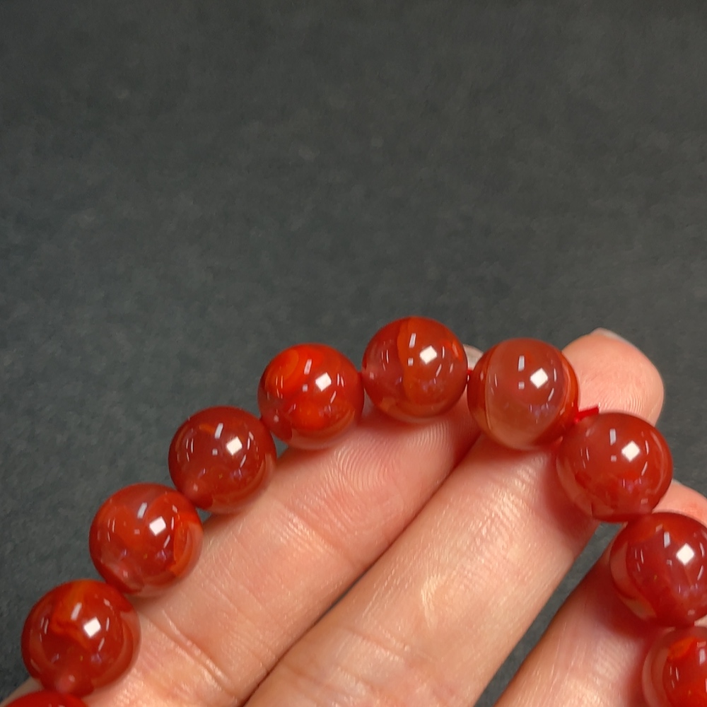Red Agate Bracelet with Visible Organic Matter, Total Weight Approx. 32.19g, Size ~10.7mm
