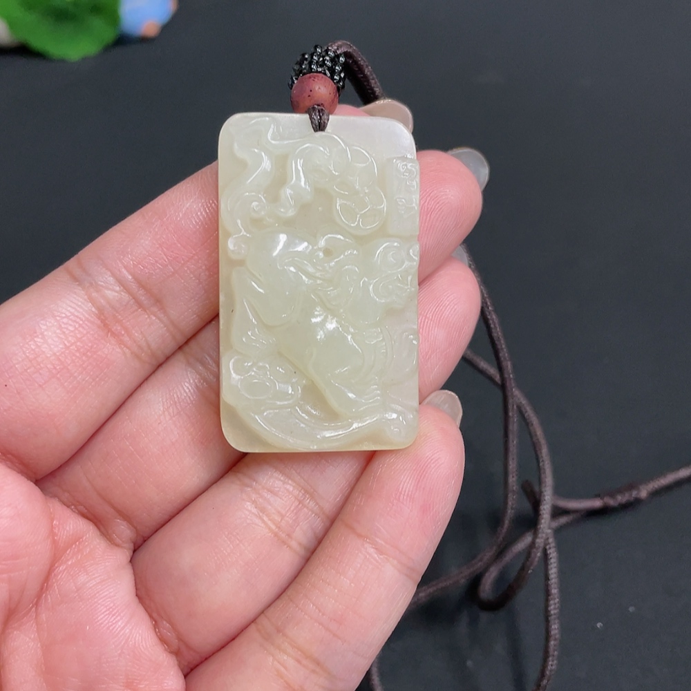 Hetian Jade Pendant Auspicious Beast Total Weight Approx. [with rope] 20.6g