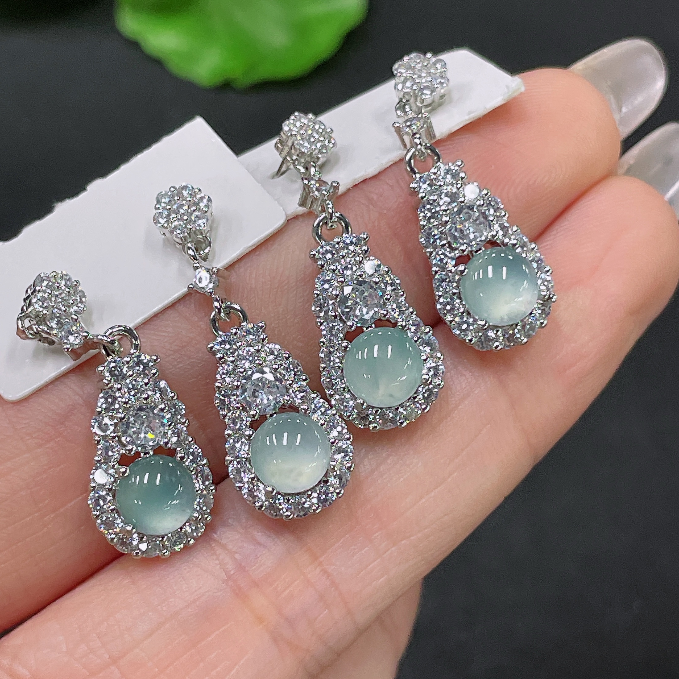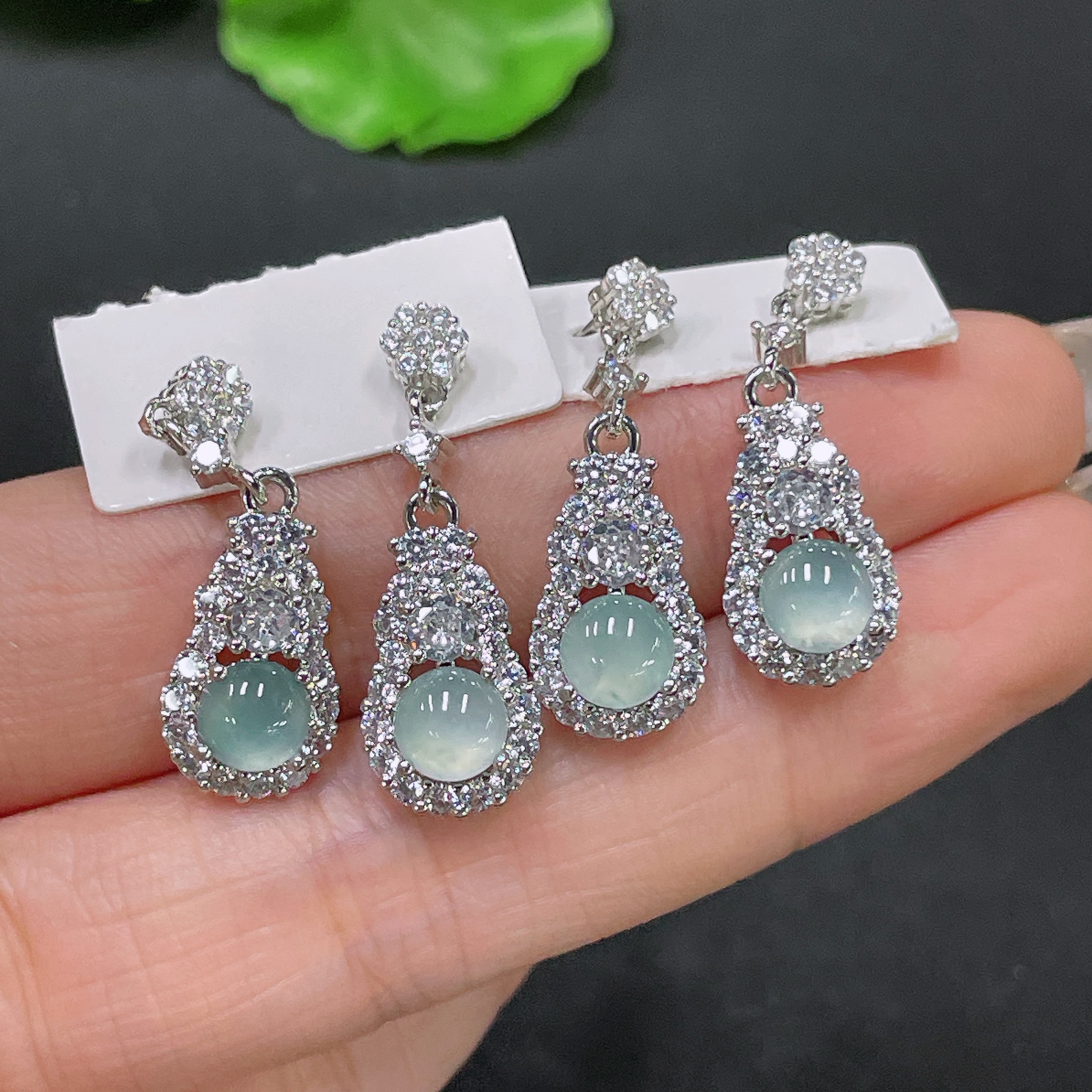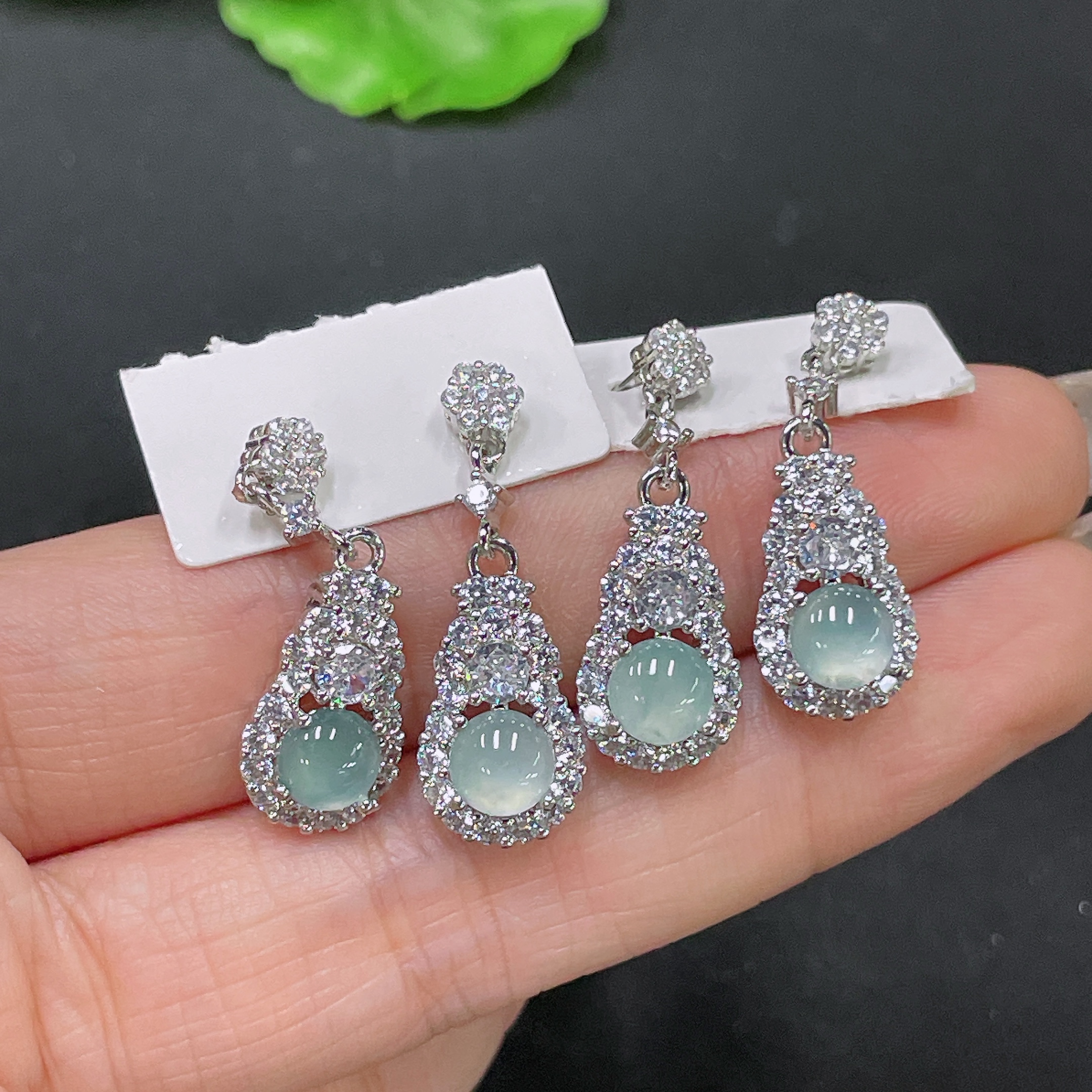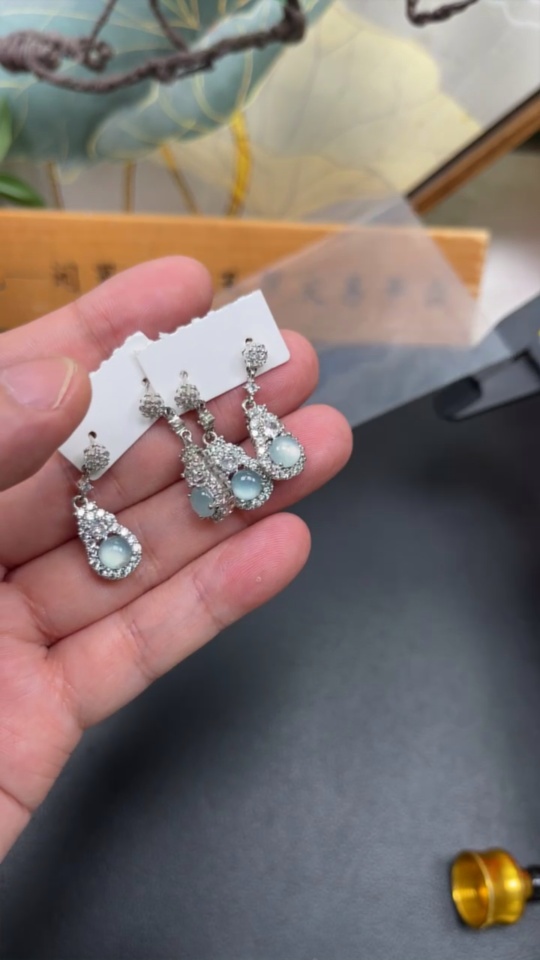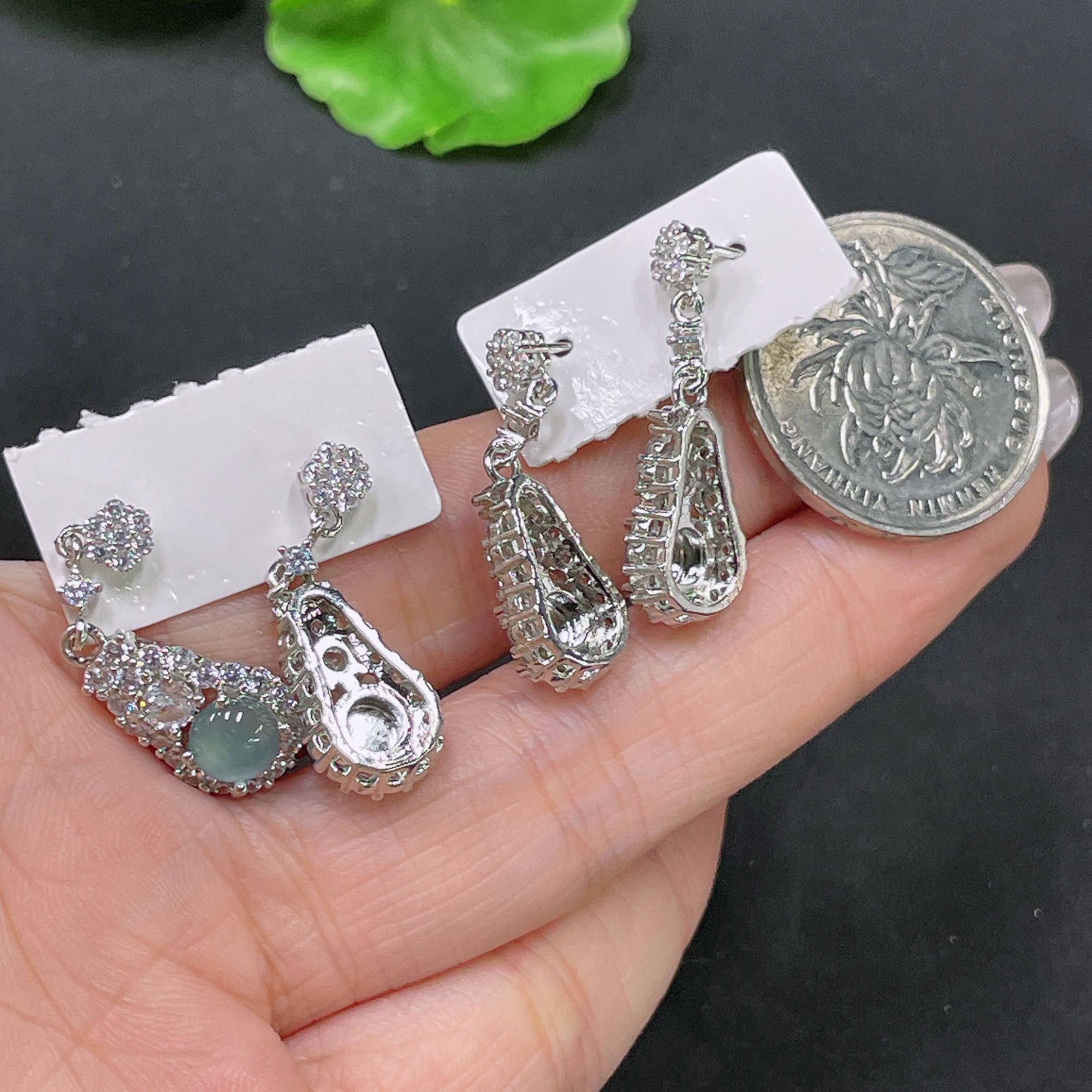 Jadeite inlaid earrings non-gold