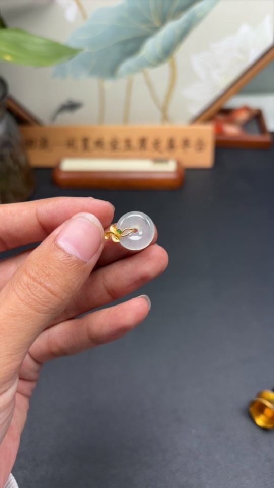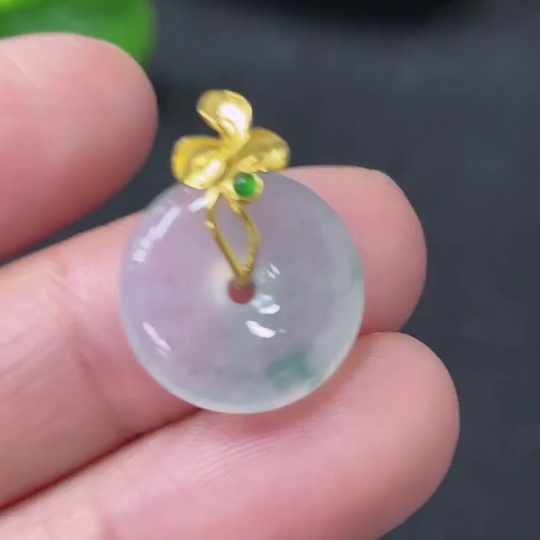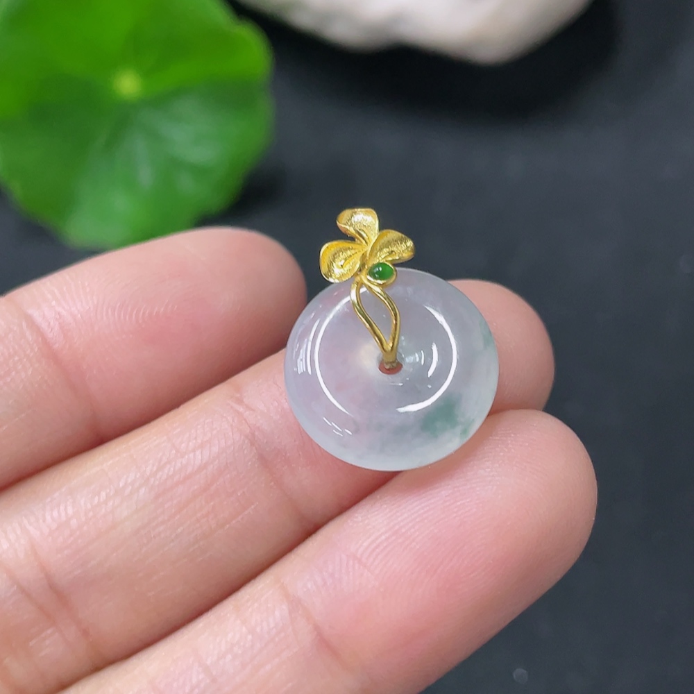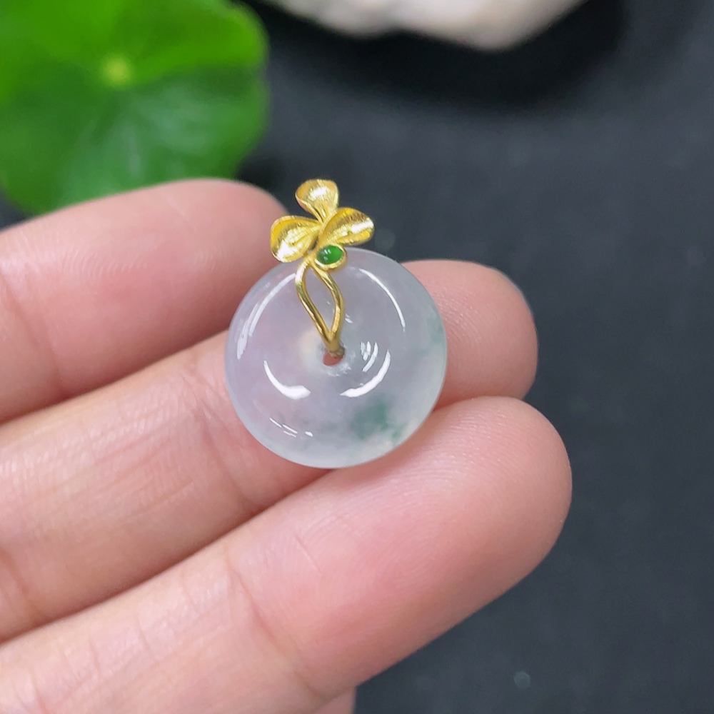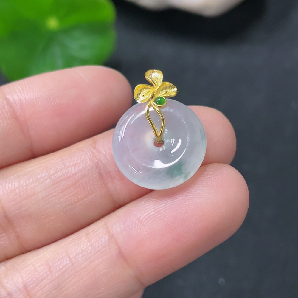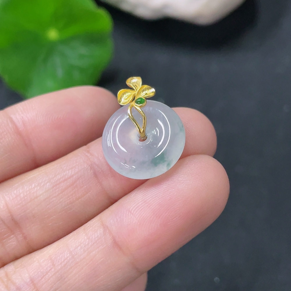 Jadeite Peace Knot Pendant, Total Weight Approx. 2.14g, 18K Gold Clasp