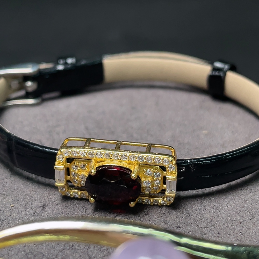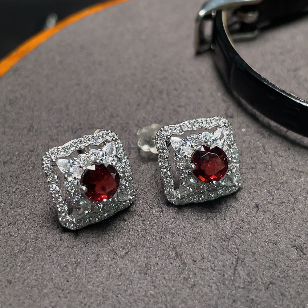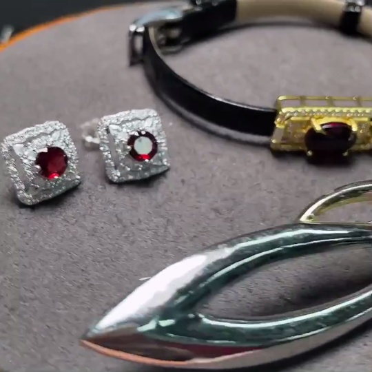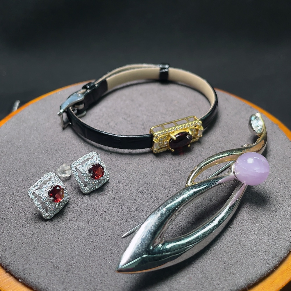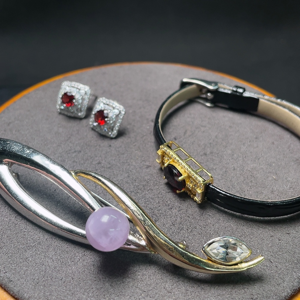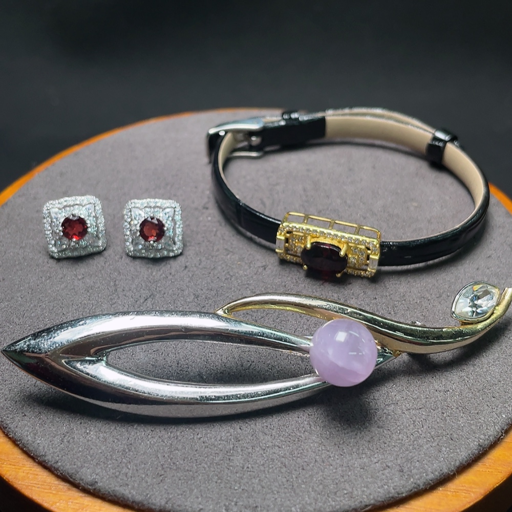 Trezaar - Garnet Ear Jewelry + Garnet Hand Jewelry + Crystal Brooch