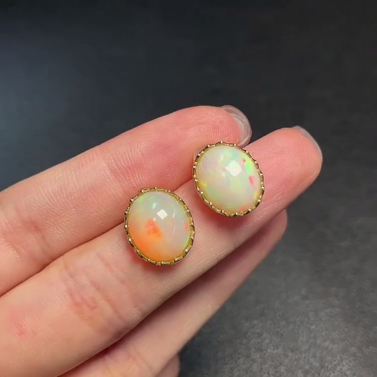 18k Opal Earrings Gold Content Au37% Total Weight Approx.2.9g