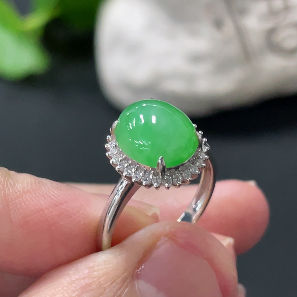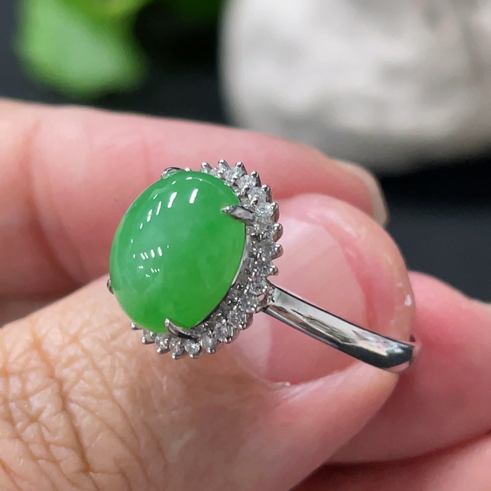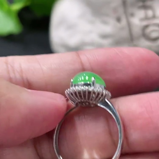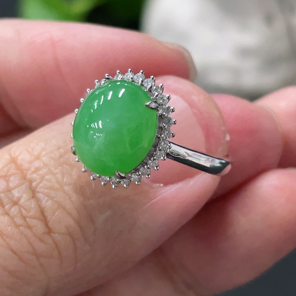 Jadeite Cabochon Ring 18k Gold Size 14 Total Weight Approx. 2.9g with Diamond Accents
