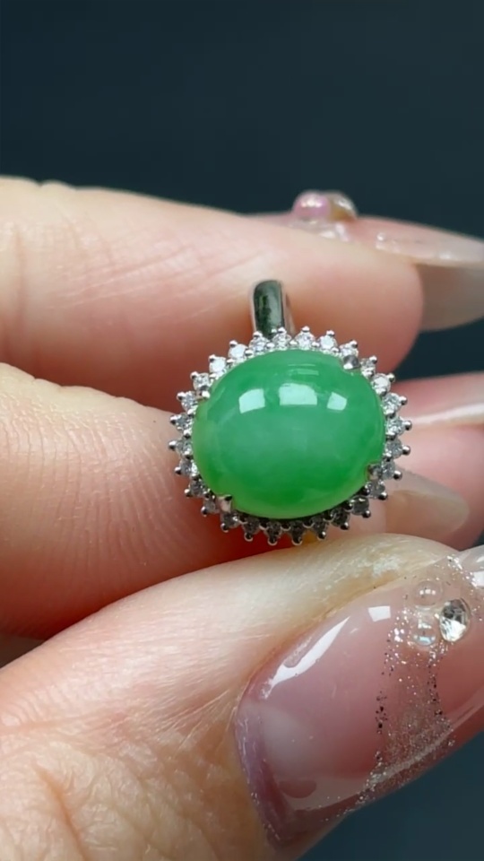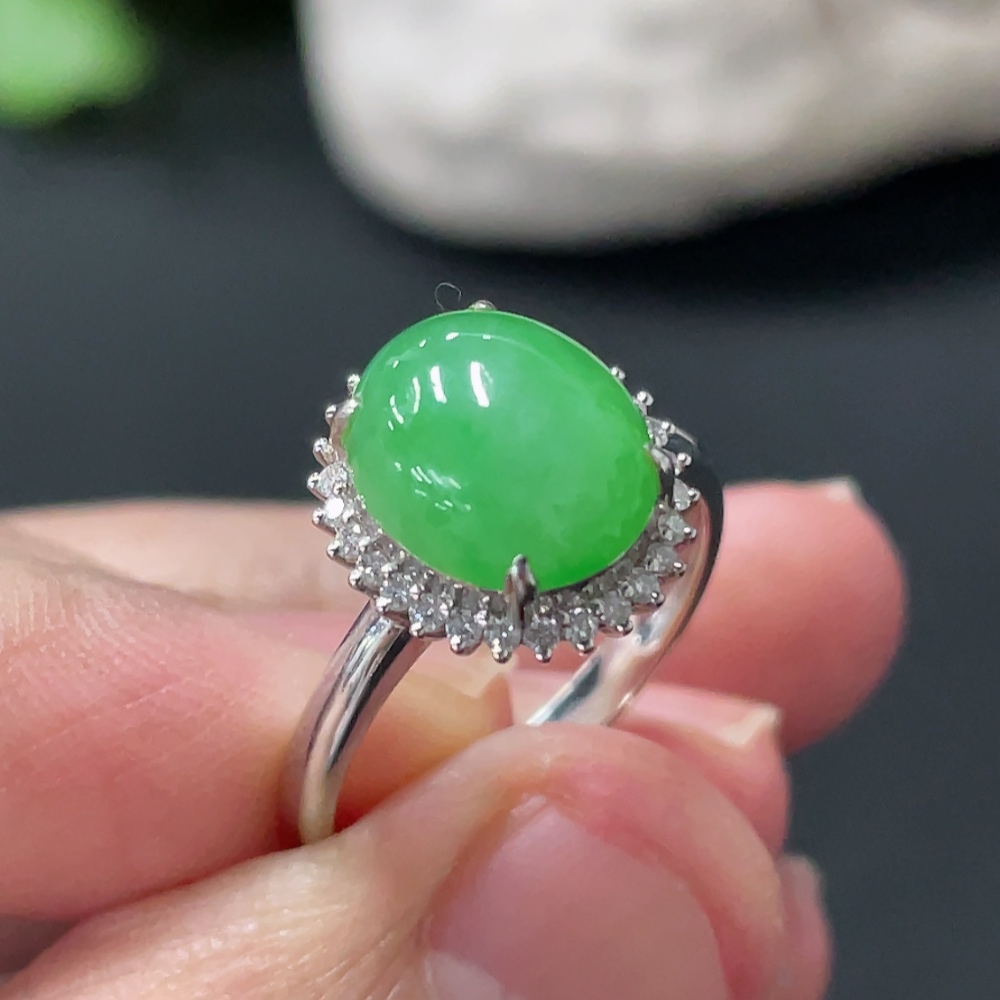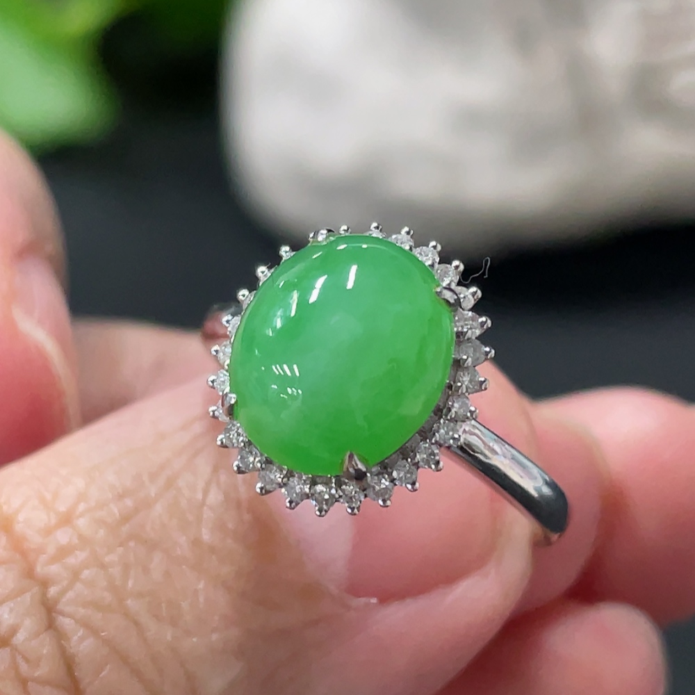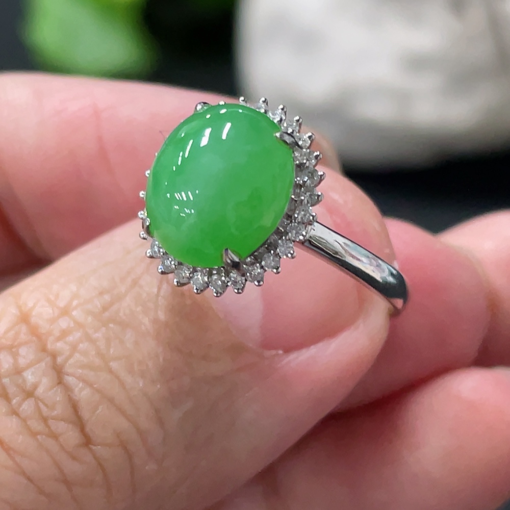 Jadeite Cabochon Ring 18k Gold Size 14 Total Weight Approx. 2.9g with Diamond Accents