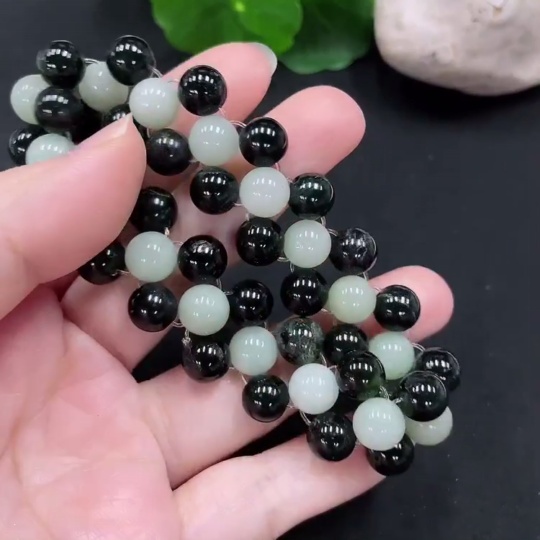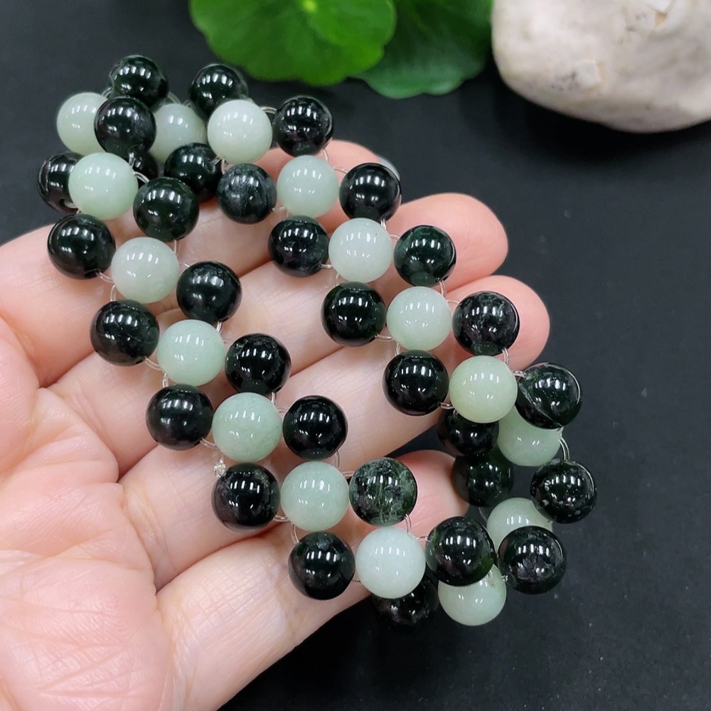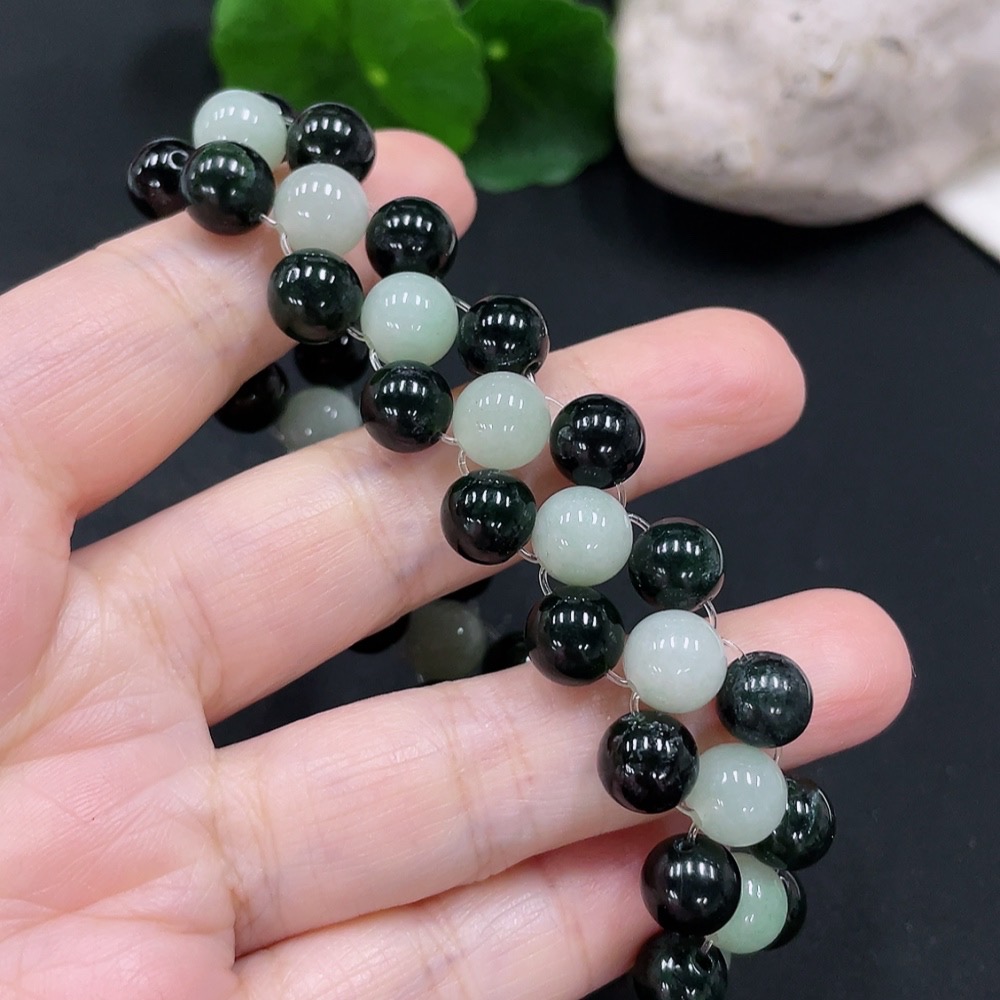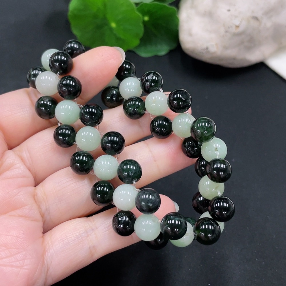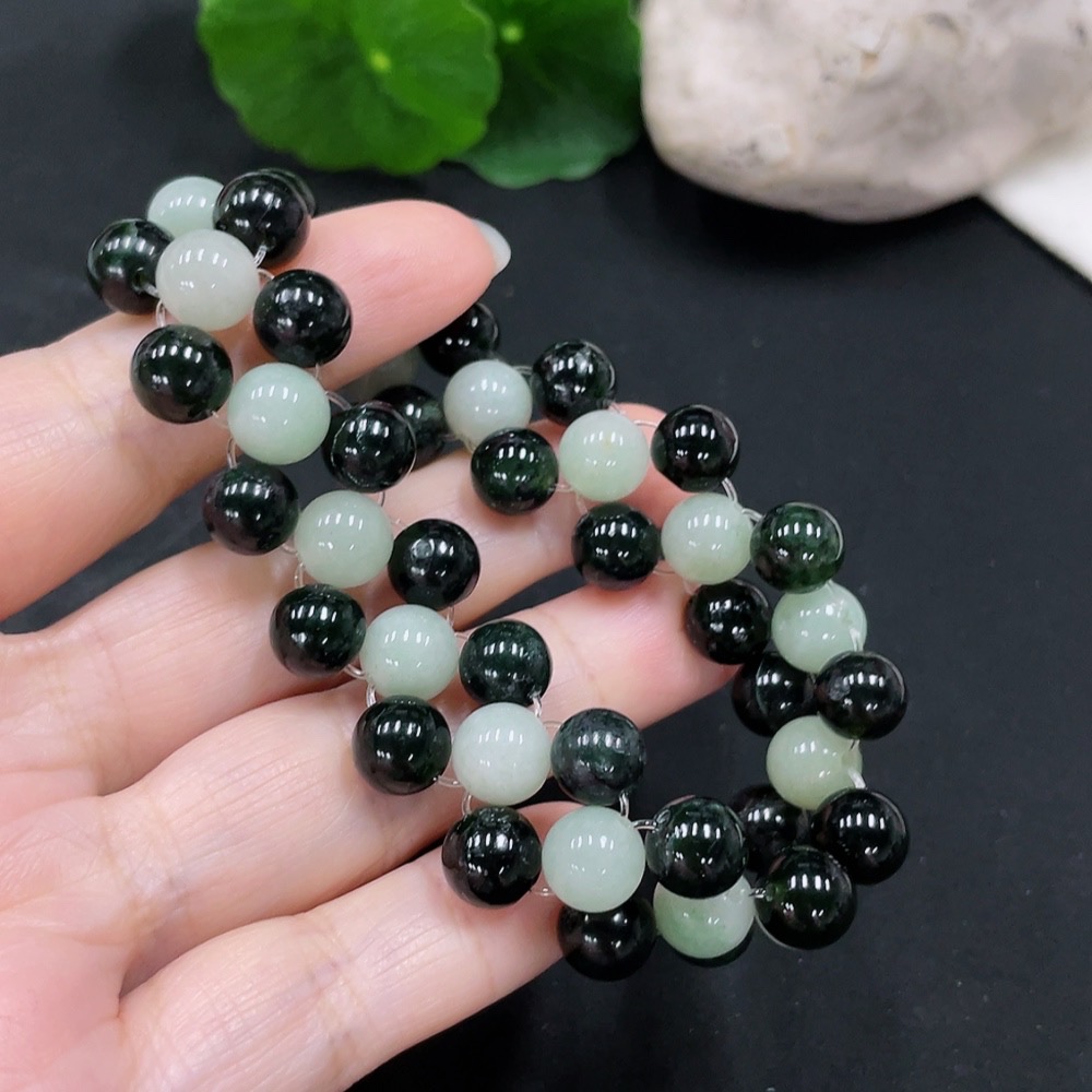 Jadeite bead necklace approx. 8.5mm total weight approx. 37.4g (non-A black matching beads)