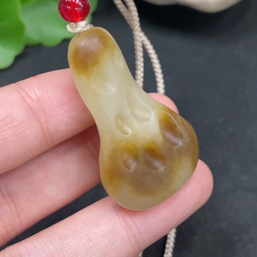 Hetian Jade Pendant, Freeform Shape, Non-Hetian Jade Beads Included, Total Weight Approx. 12.6g (Including Cord)