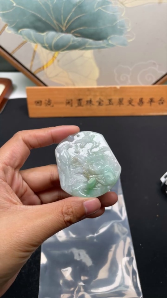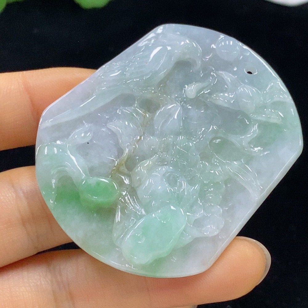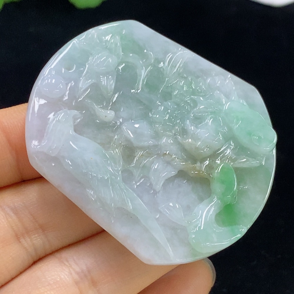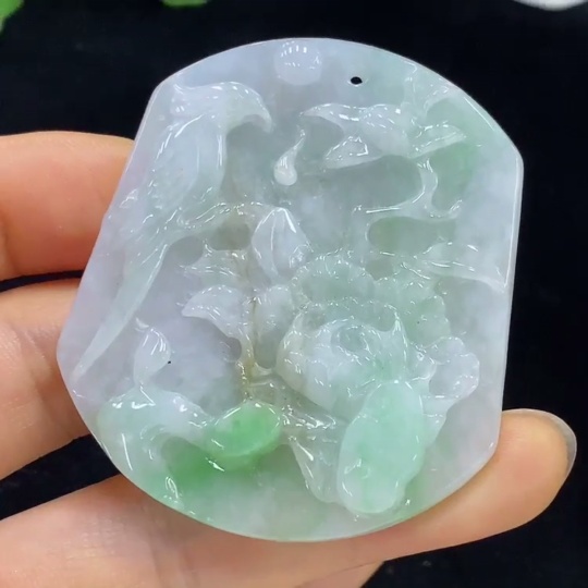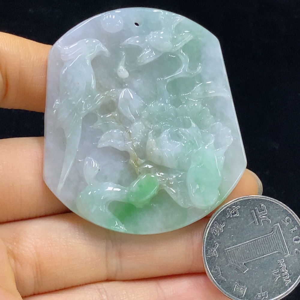 Jadeite Flower and Bird Pendant, Total Weight Approximately 26.6g