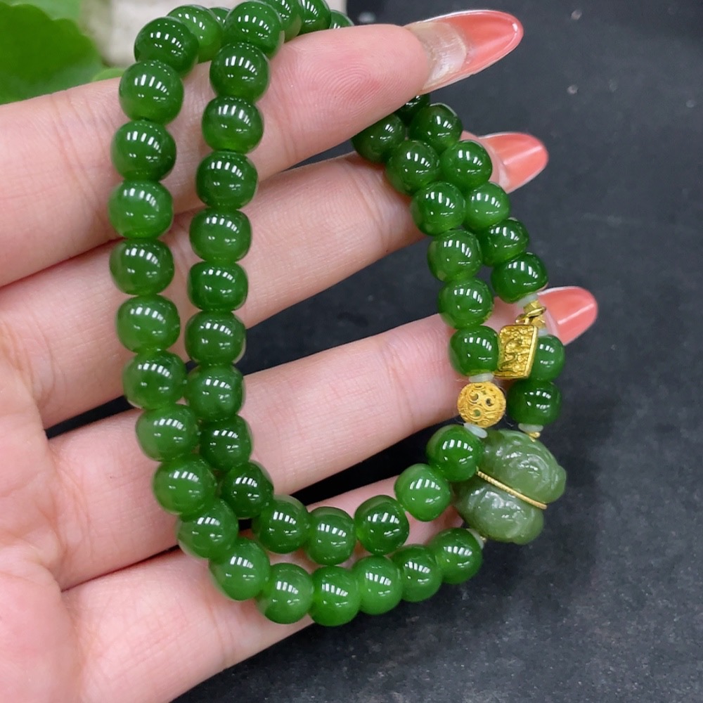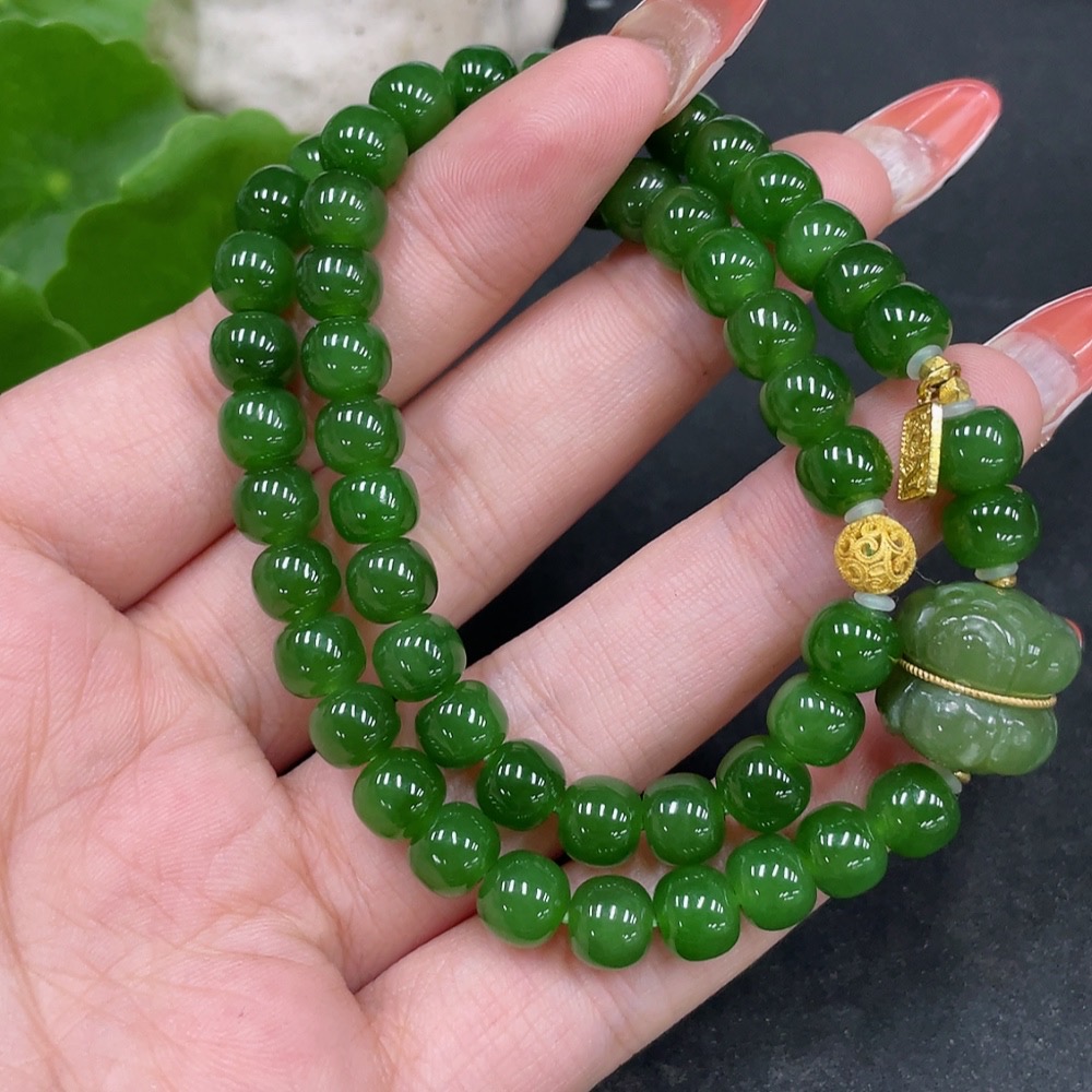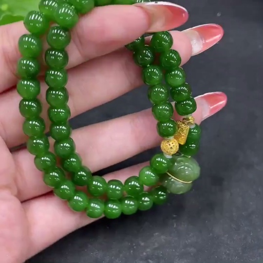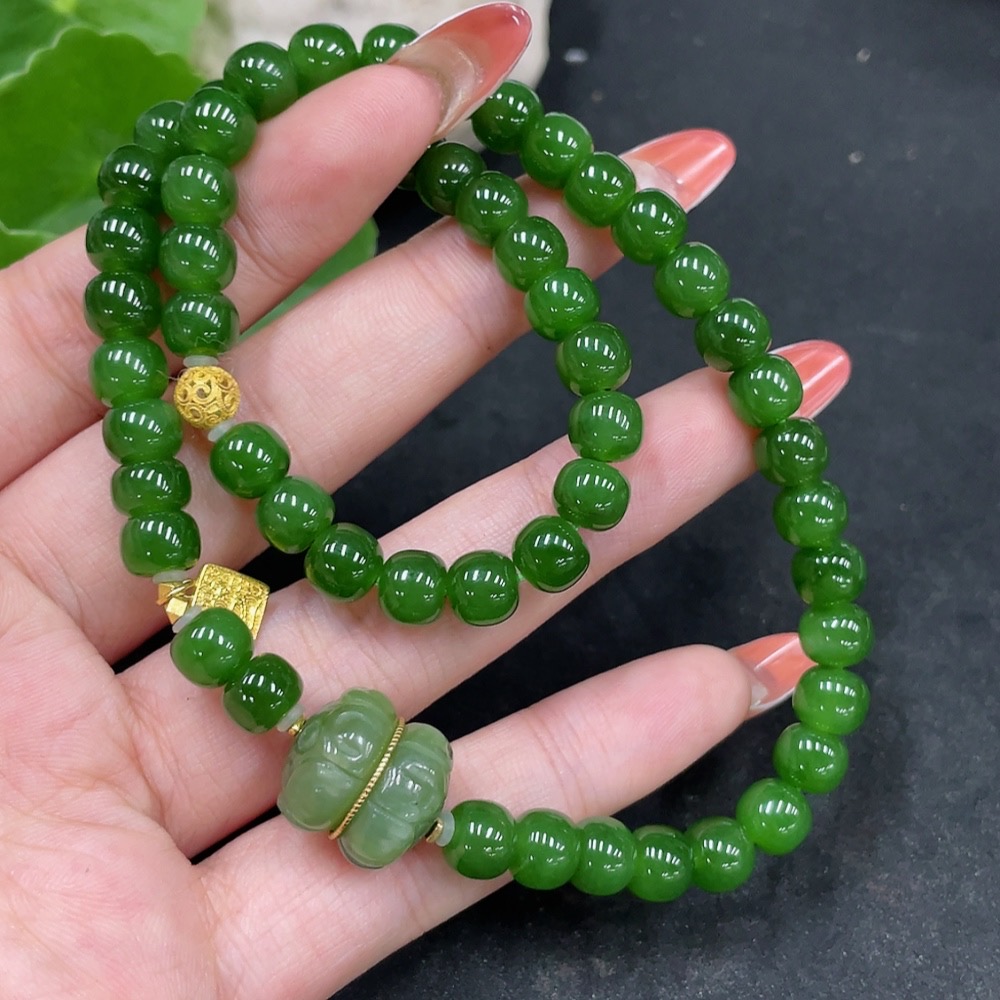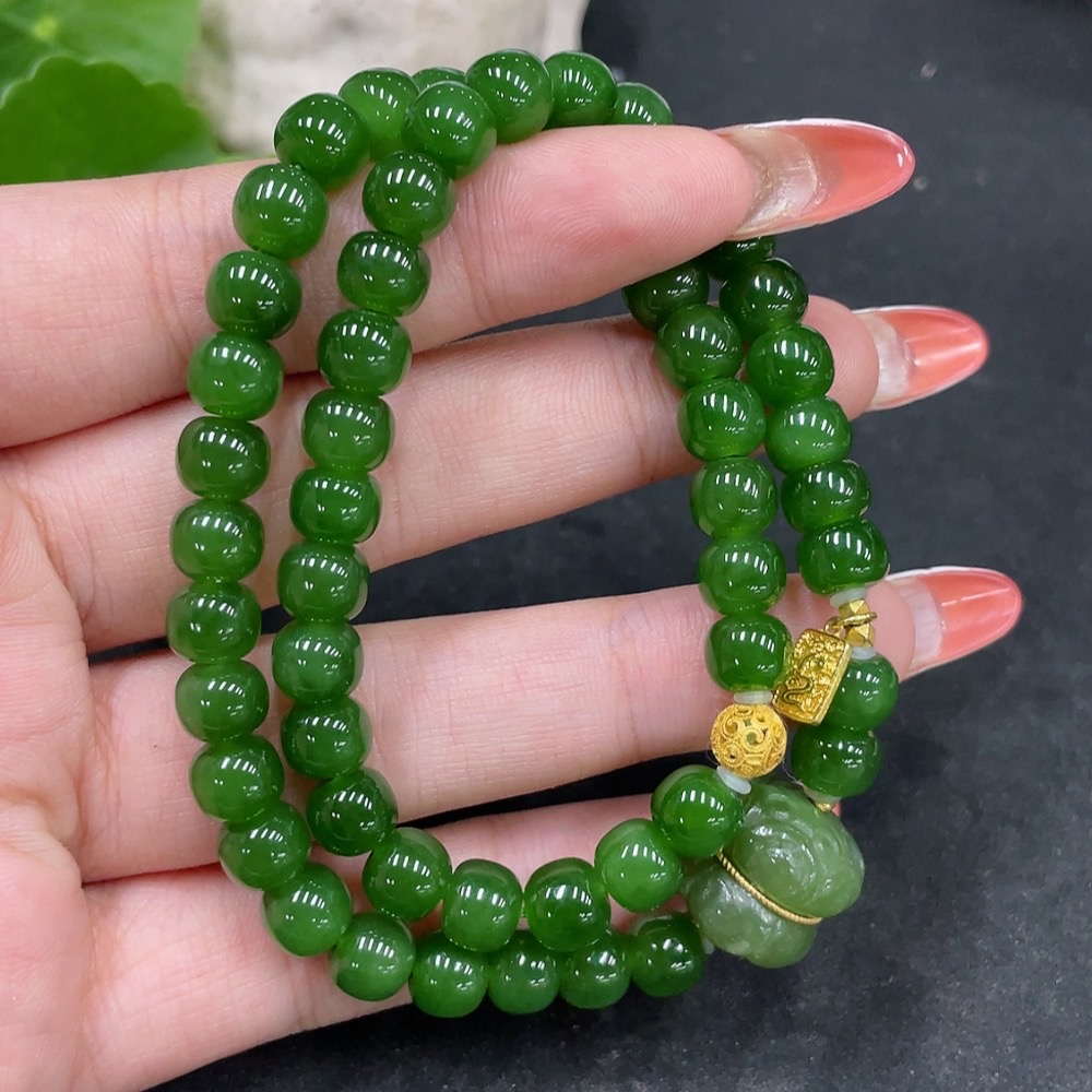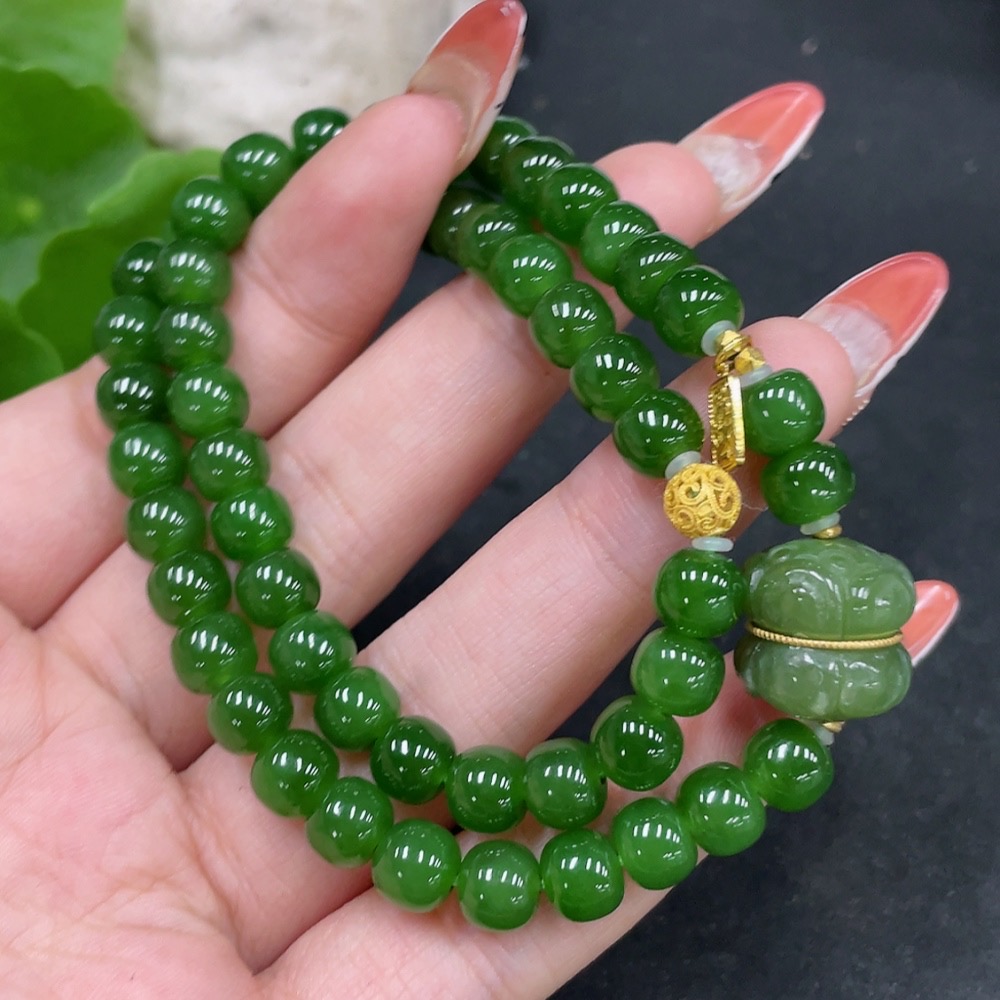 Hetian Jade Jasper Bead Necklace, No Stamp, Marked Red Test Gold Content 37%, Rest 18k, Approx. 6.8mm, Total Weight Approx. 35.2g