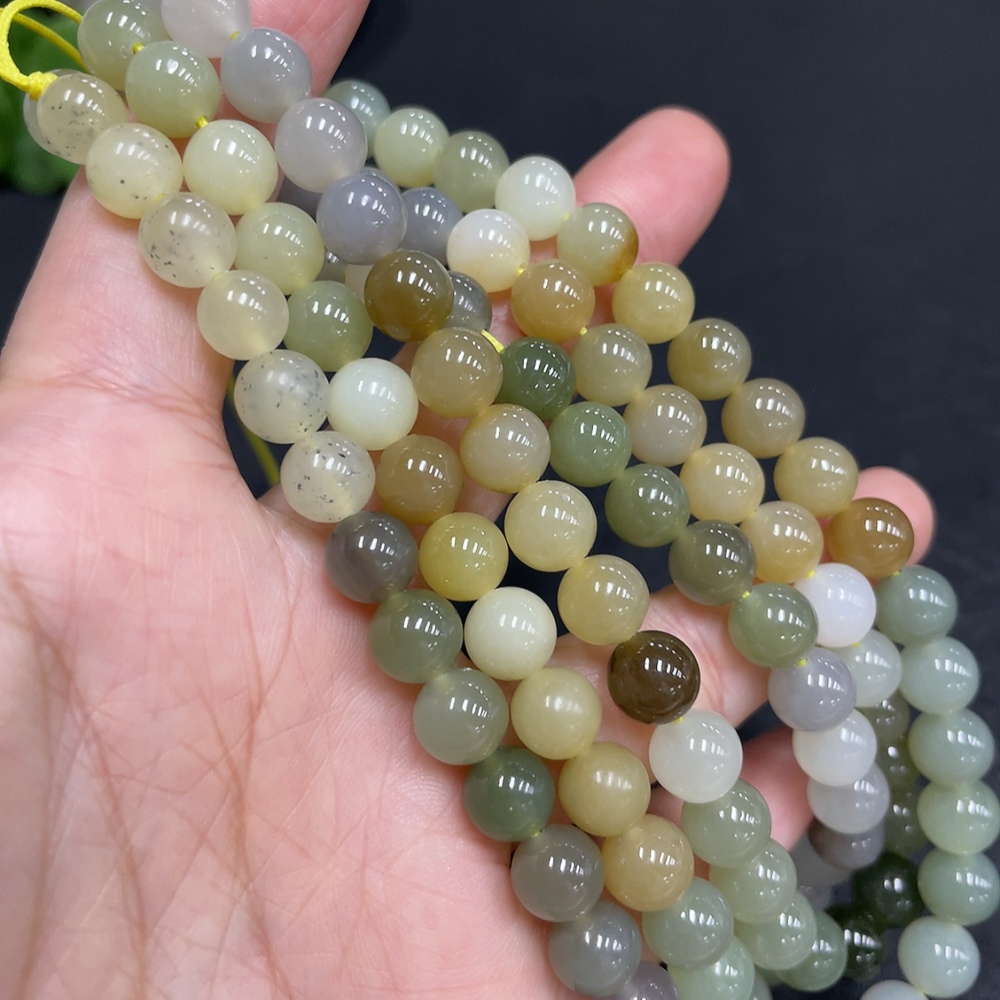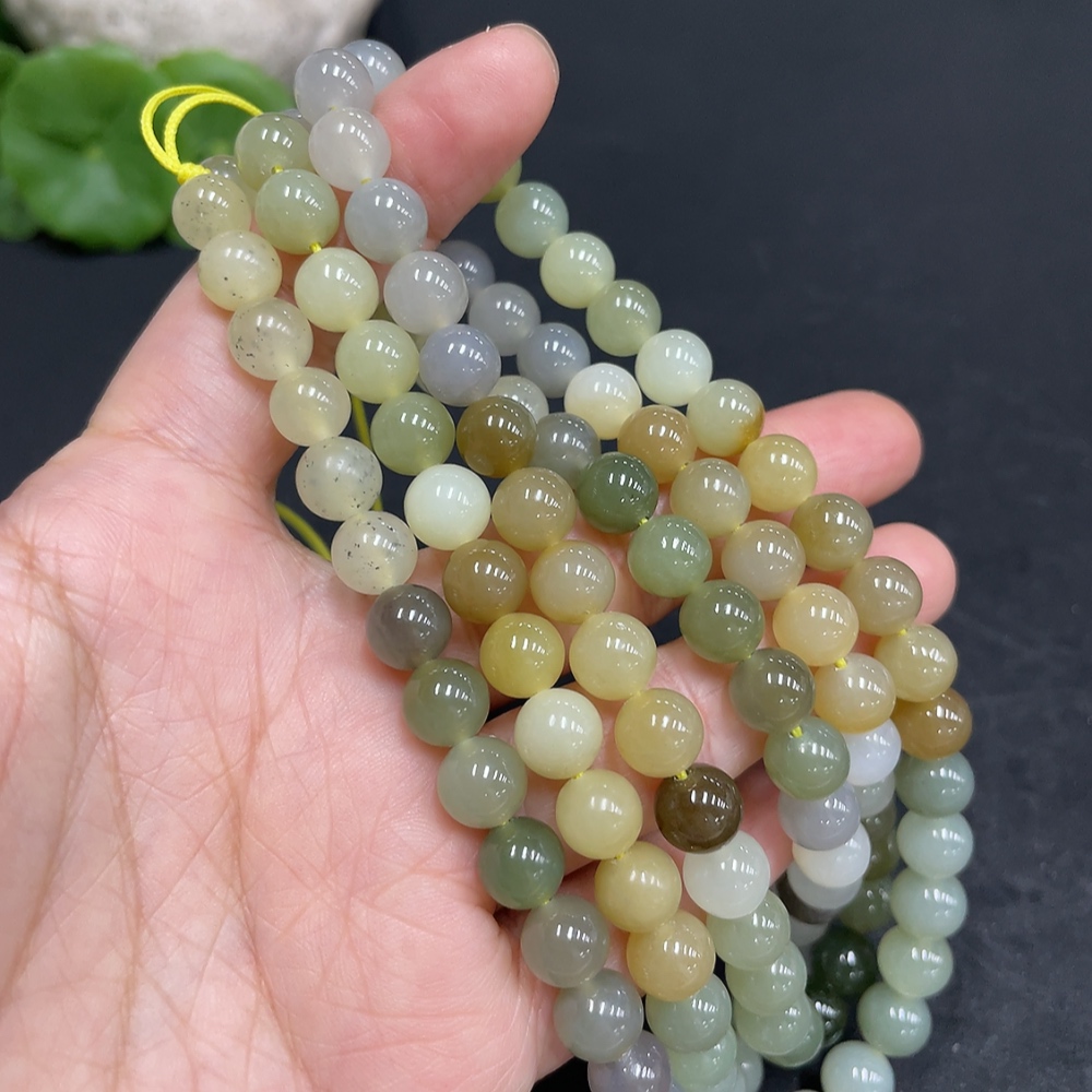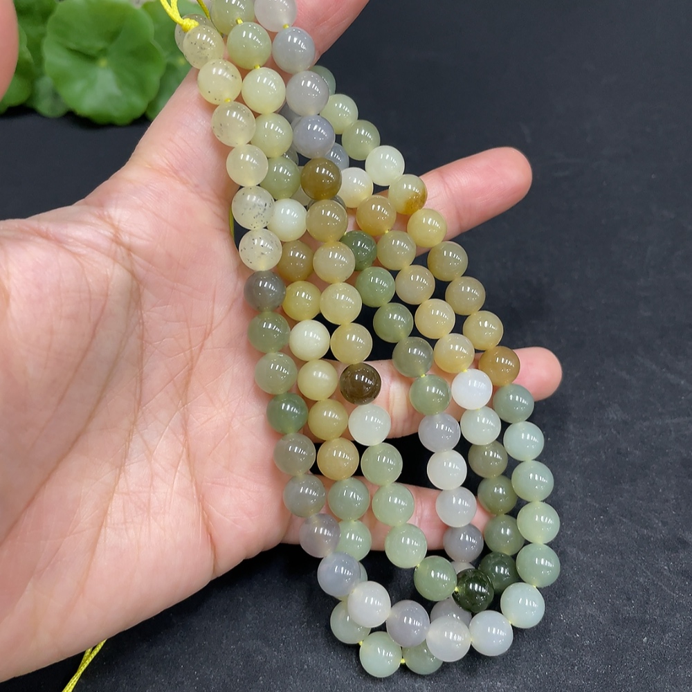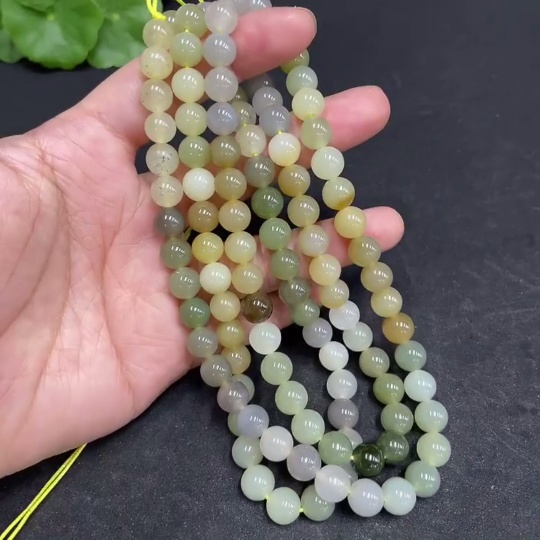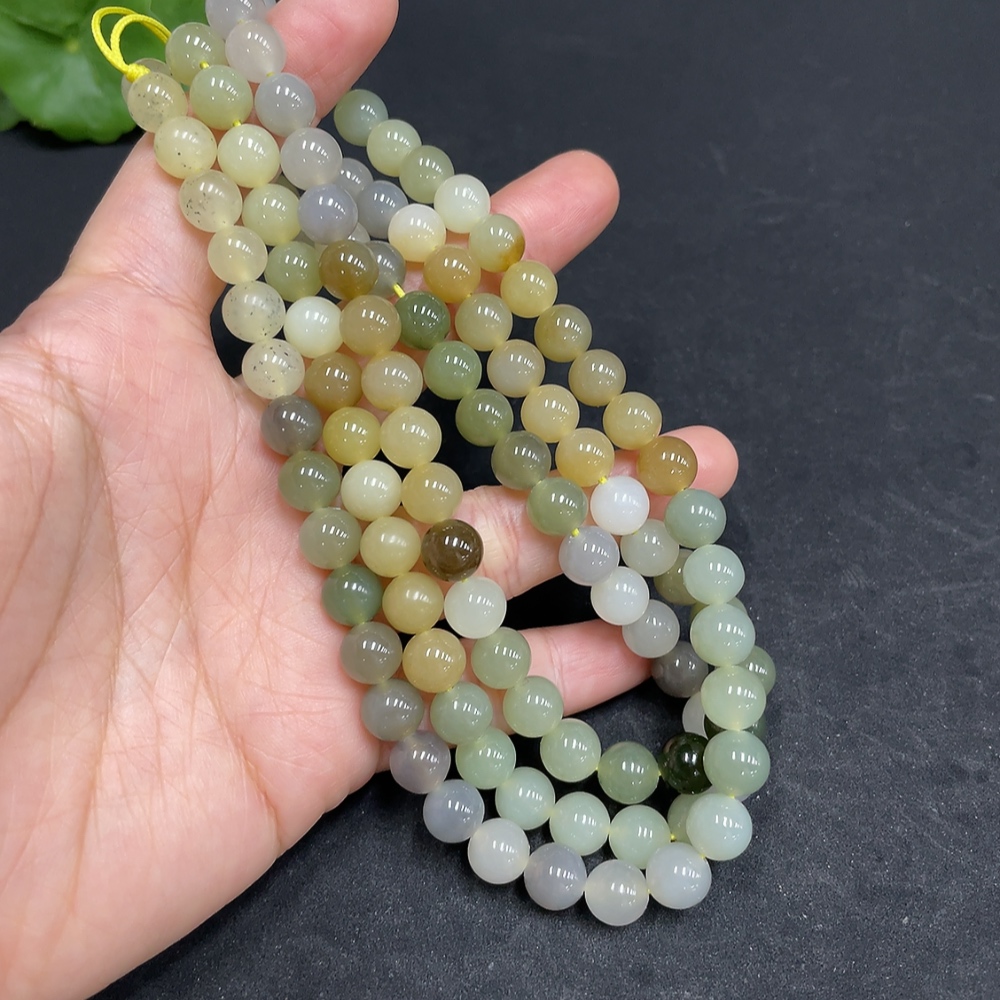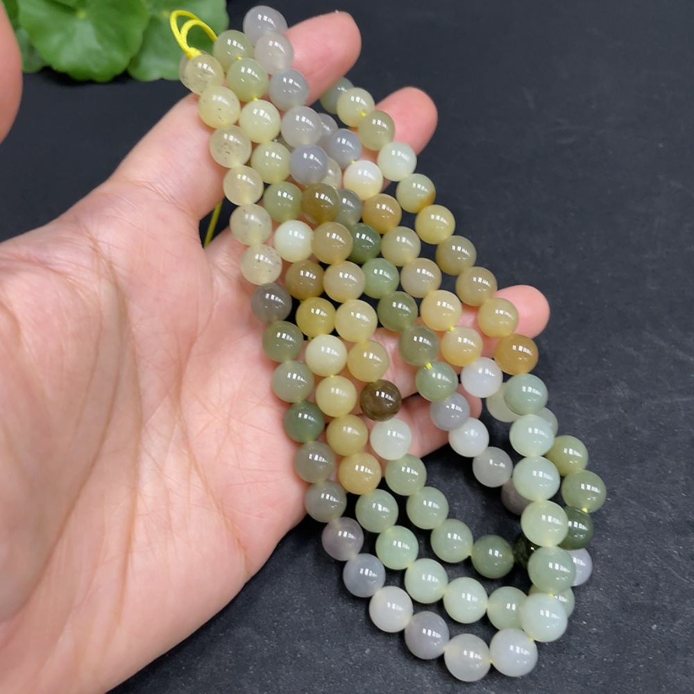 Hetian Jade Bead Necklace, approx. 7.7mm, total weight about 79.1g