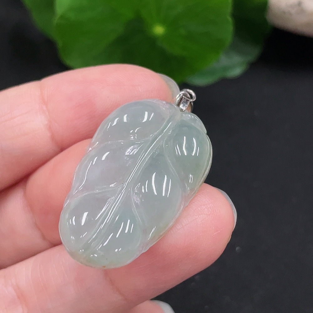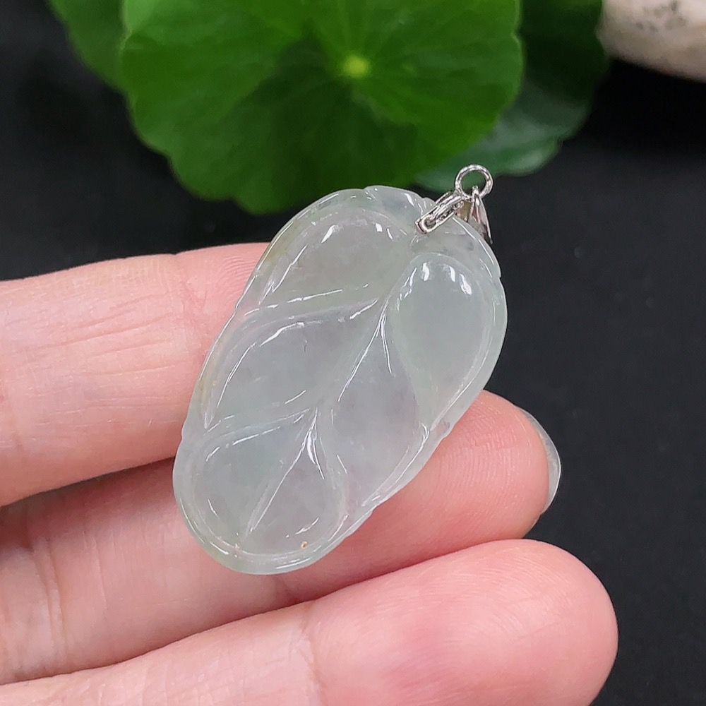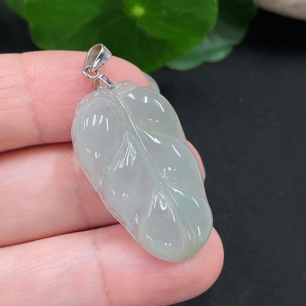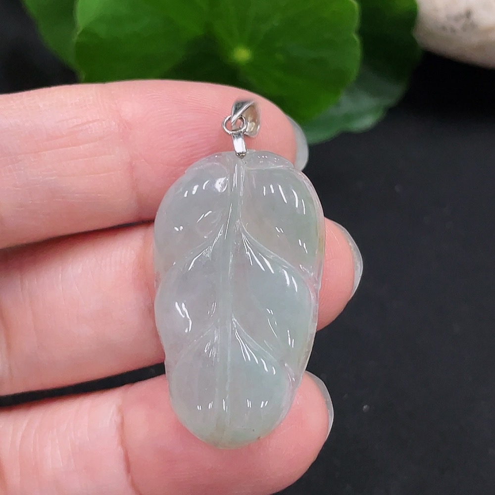 Jadeite Leaf Pendant Non-Gold Inlaid Total Weight Approx. 4.55g