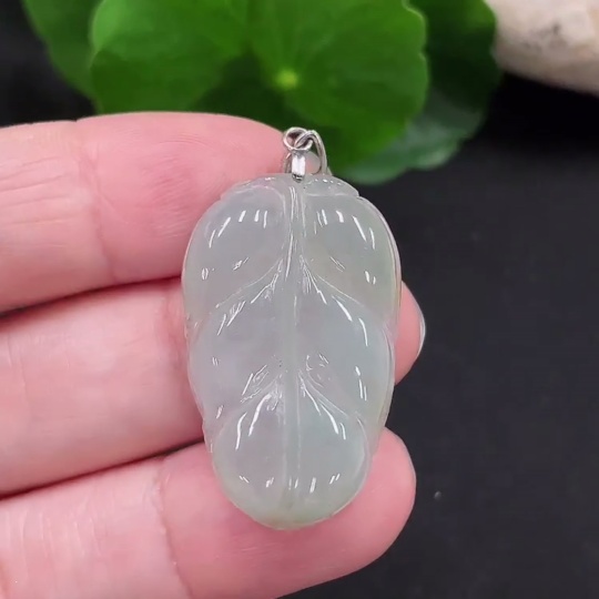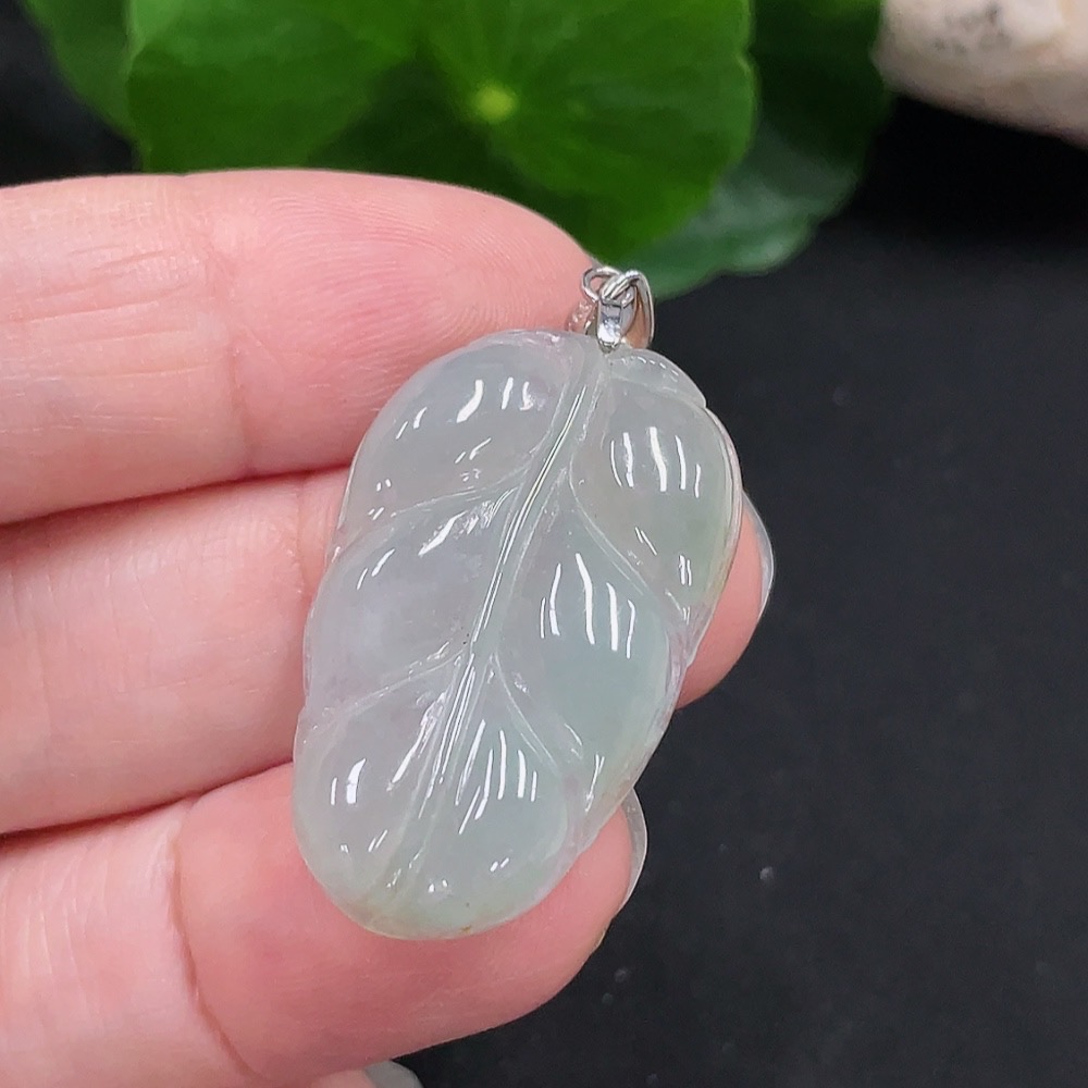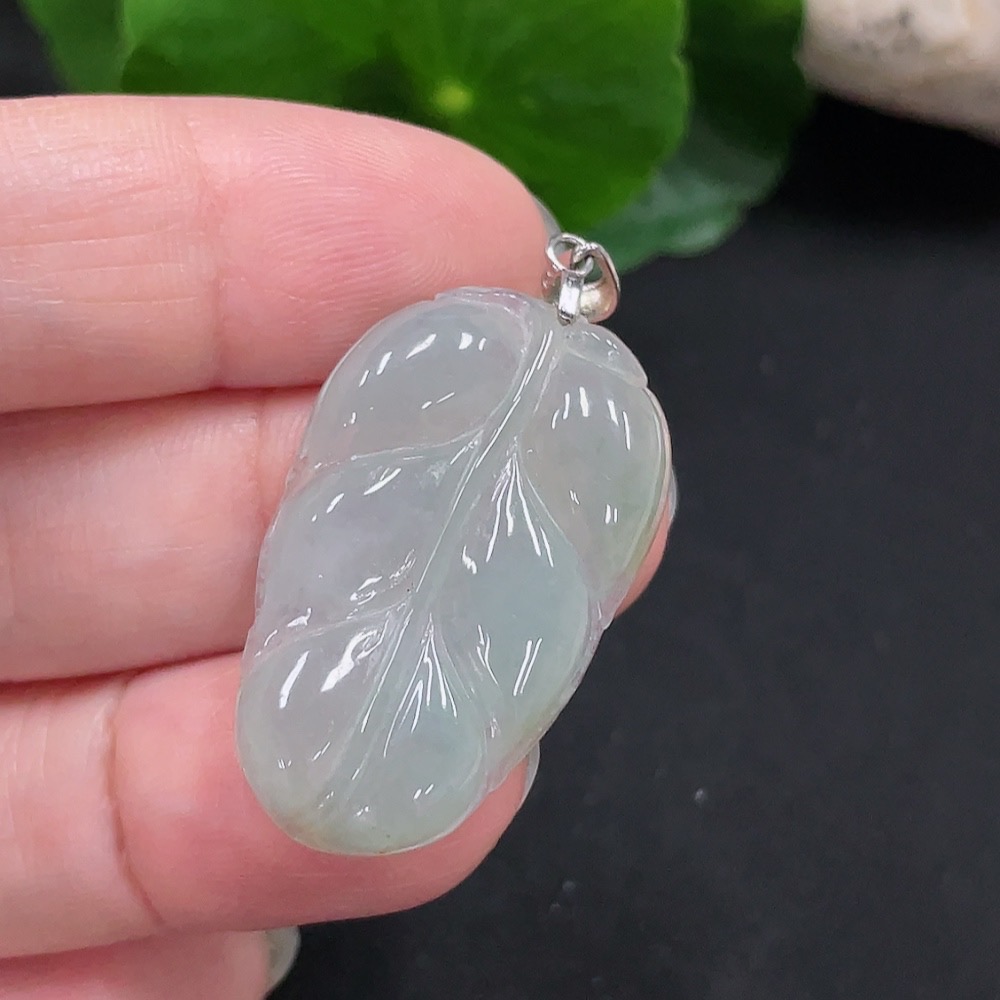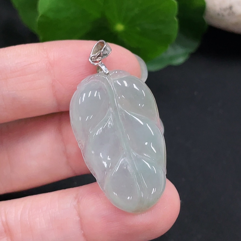 Jadeite Leaf Pendant Non-Gold Inlaid Total Weight Approx. 4.55g