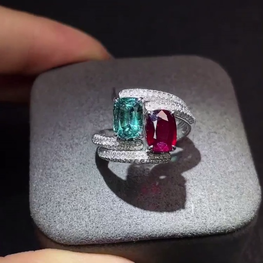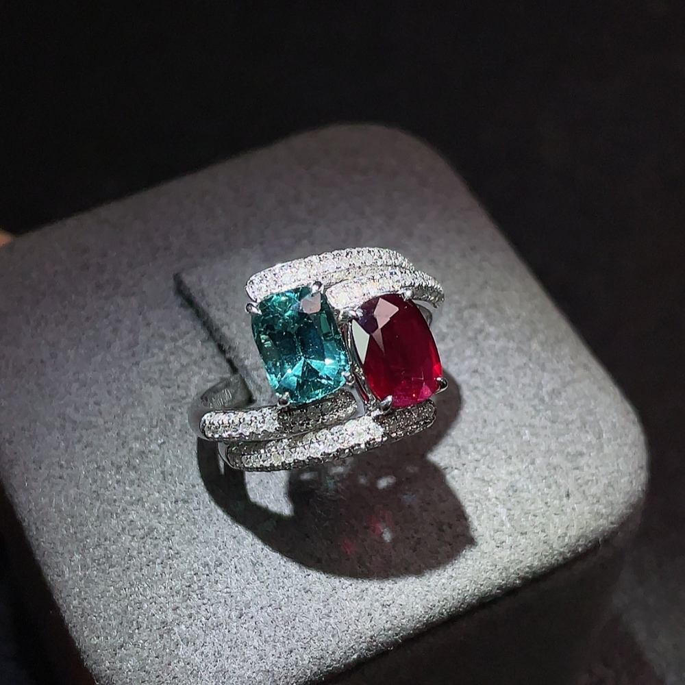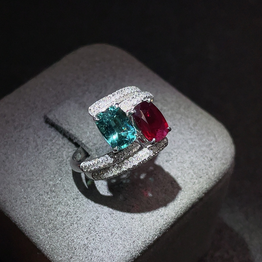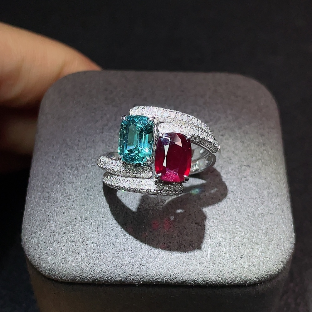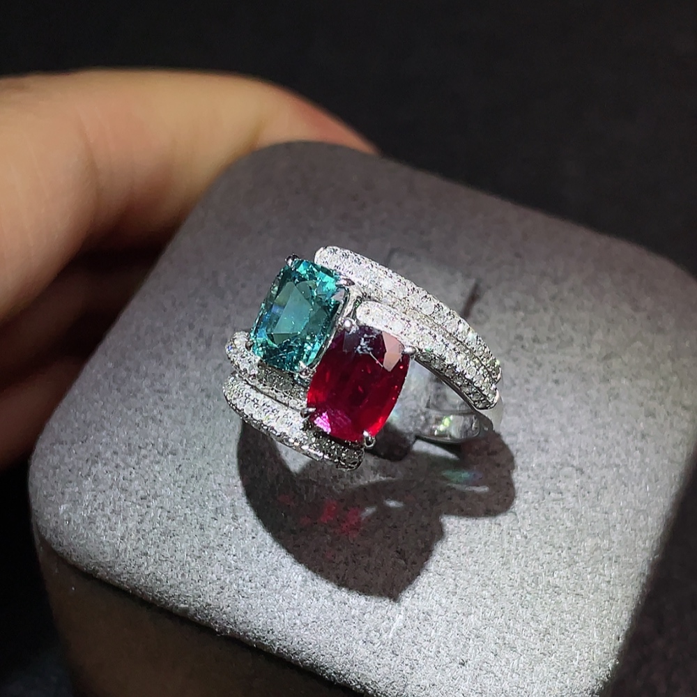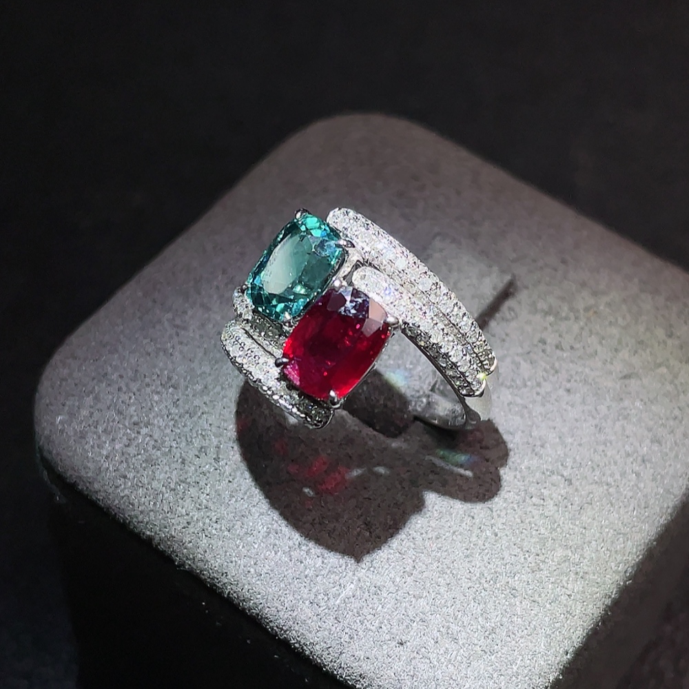 18K Tourmaline Ring + 18K Ruby Ring with Diamond Accents, Total Weight Approx. 4.81g, Size 13, Sell as a Lot, GILDER Certificate: Pigeon Blood, Tanzania (Longido Mine), No Heat, Vivid to Deep Red, 1.14ct