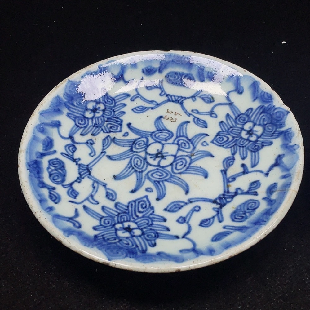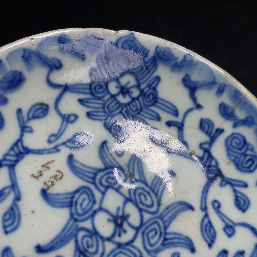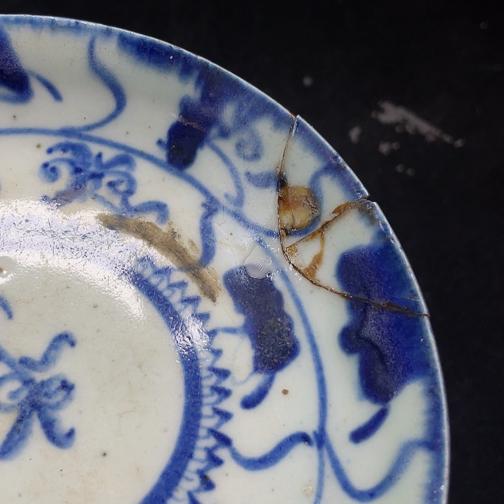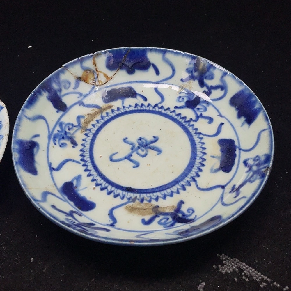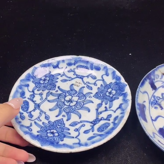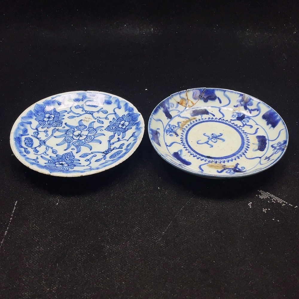 Porcelain 2 pcs chipped Qing blue and white plates