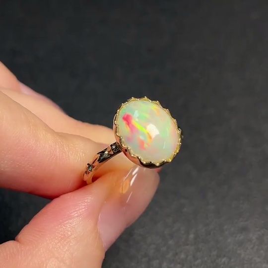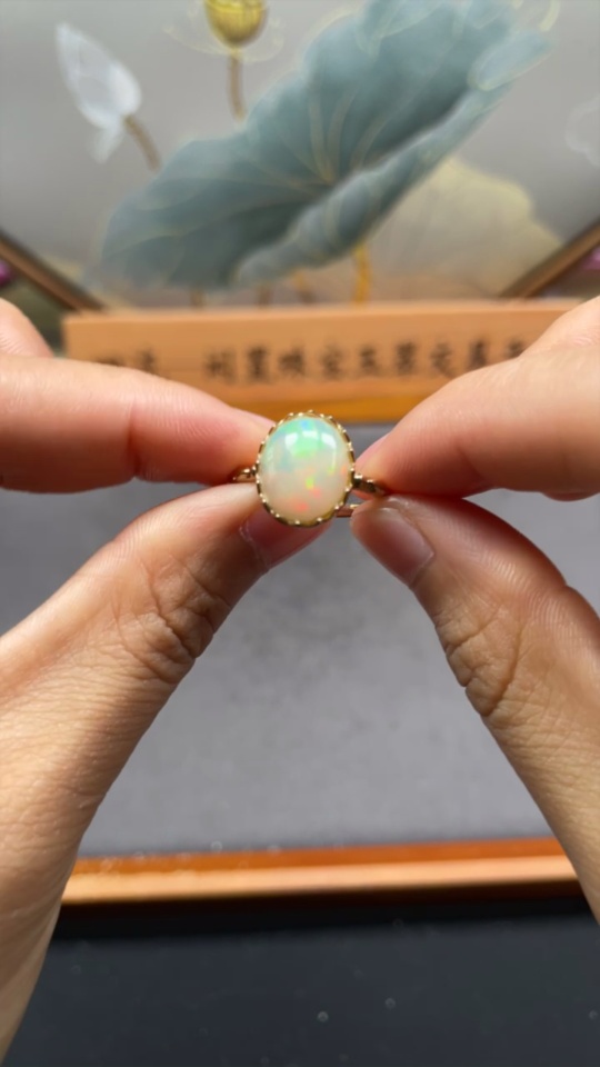 Opal Ring, Gold Content Au 37%, Total Weight Approx. 2.8g, Size 15