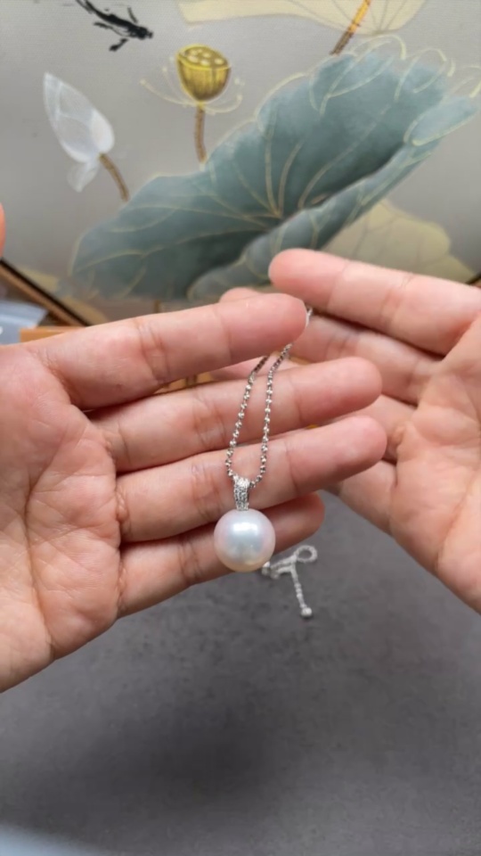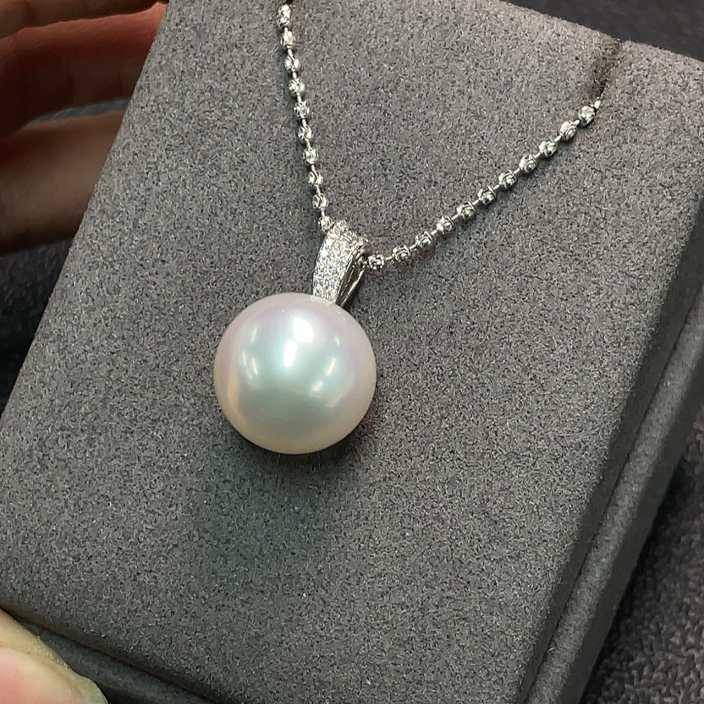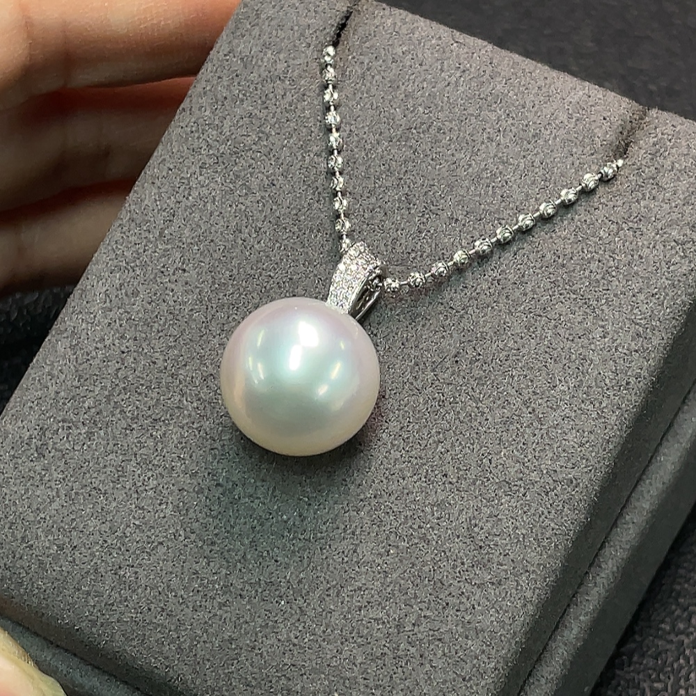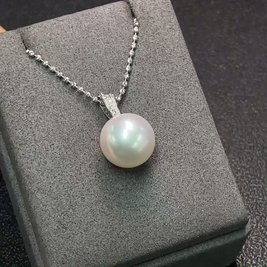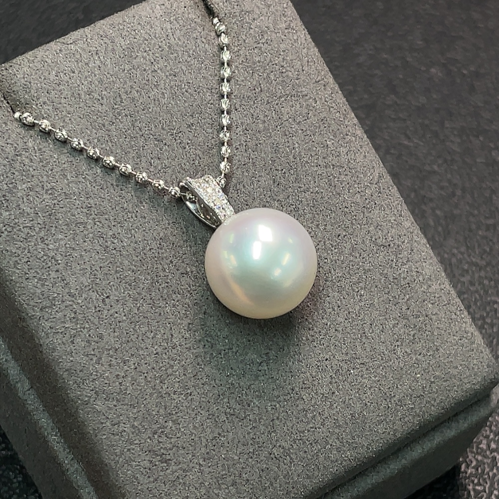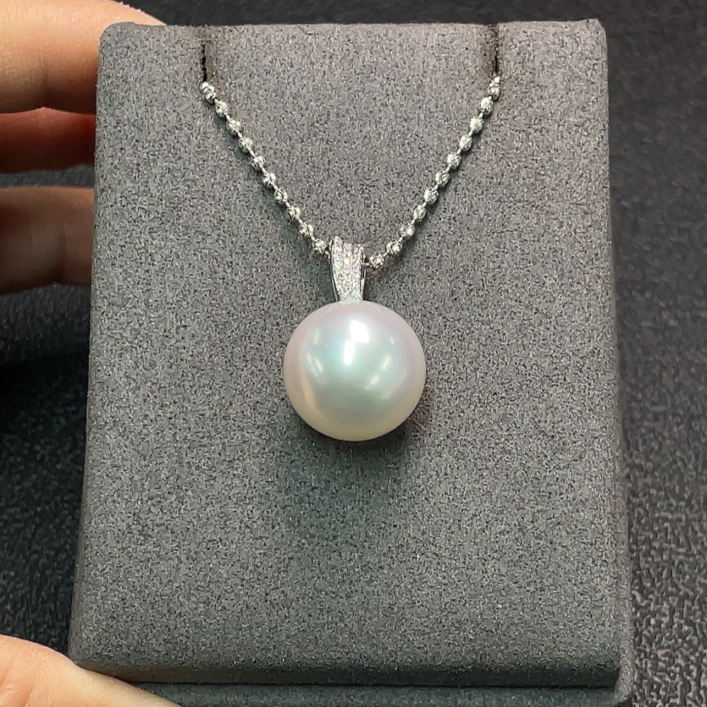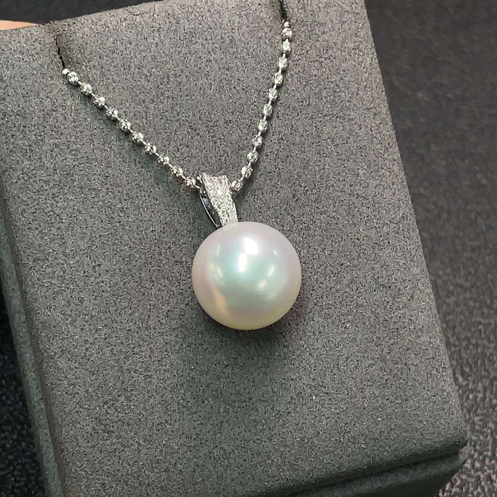 18K Sea Water Pearl Necklace with Diamond Accents, Total Weight Approx. 11.63g, Pearl Size Approx. 14.4mm