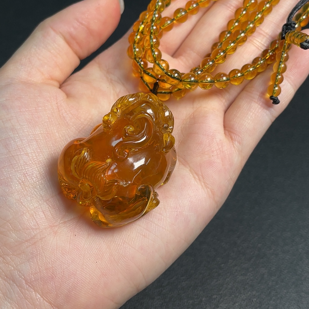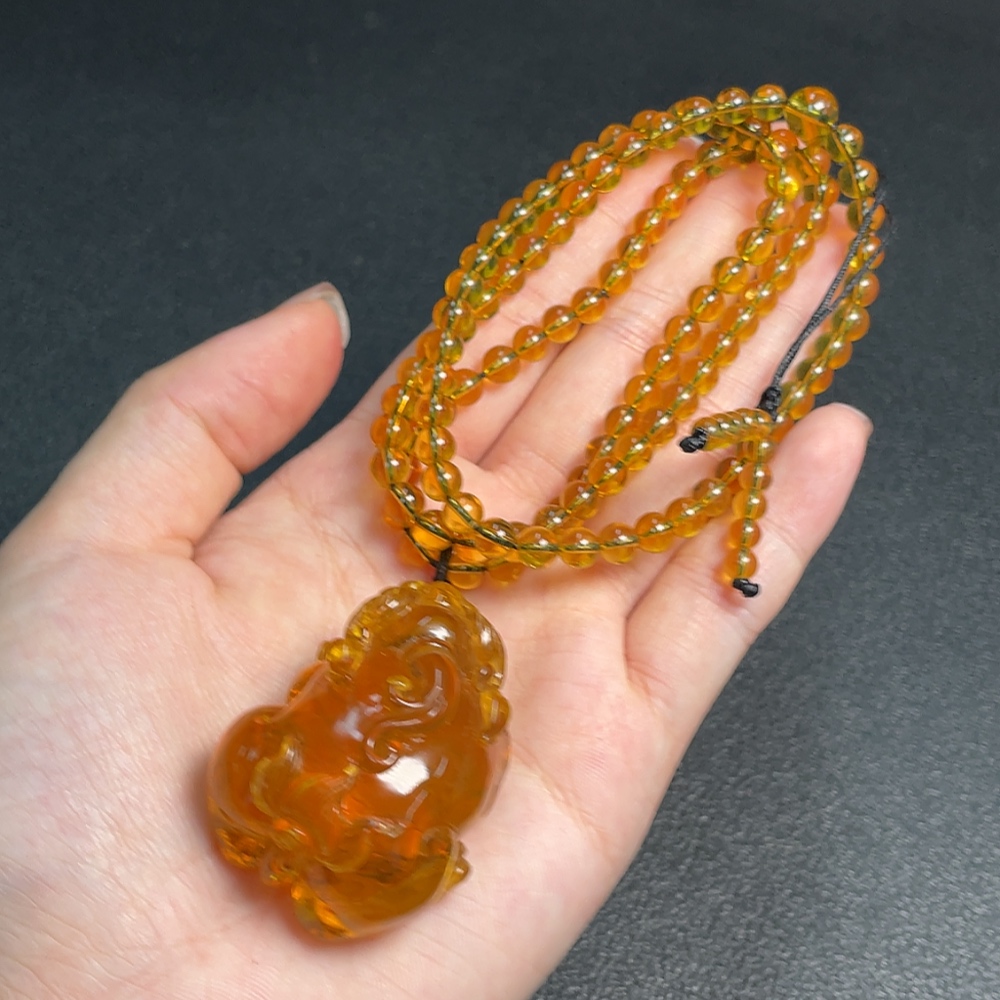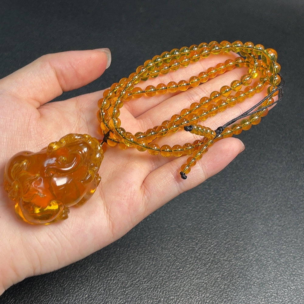 Amber Beeswax Pendant Total Weight Approx. 27.5g Including Chain