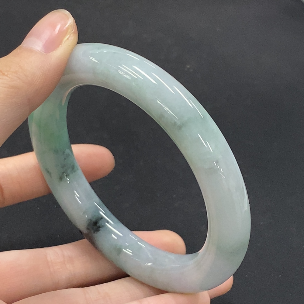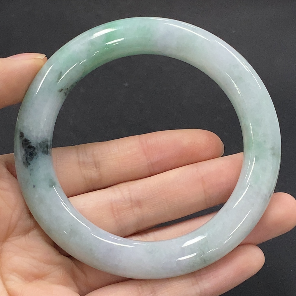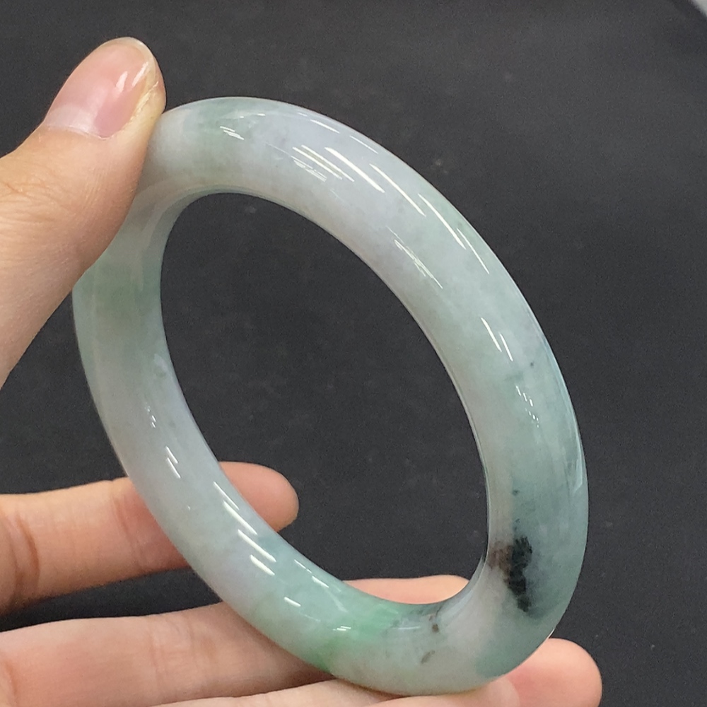 Jadeite Round Bangle with Other Mineral Components, Total Weight Approximately 73.07g, Size 58.4