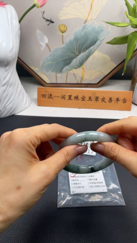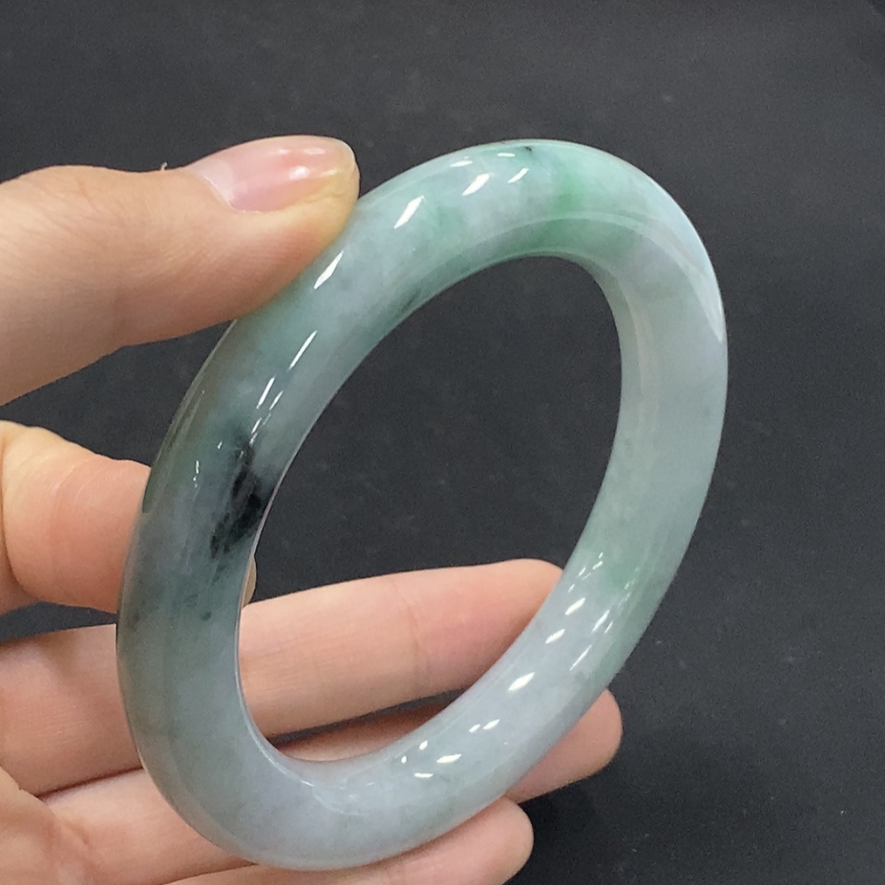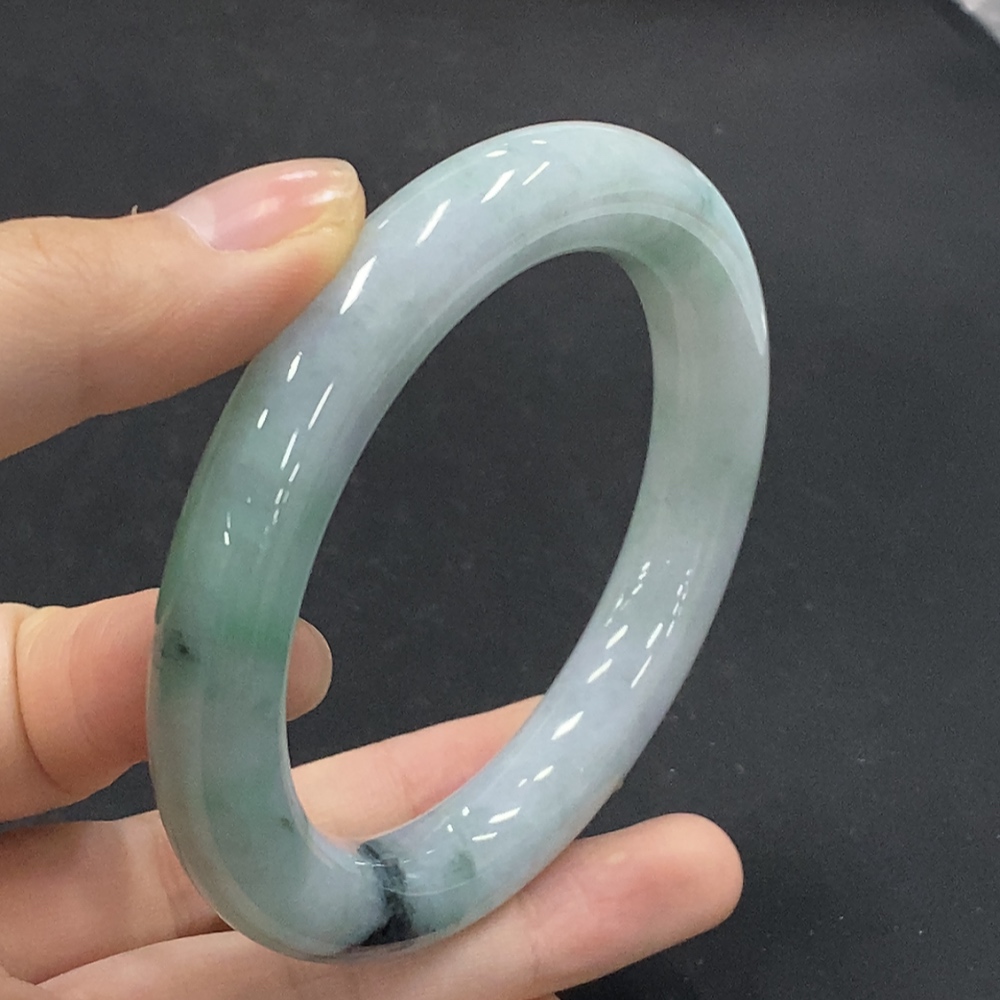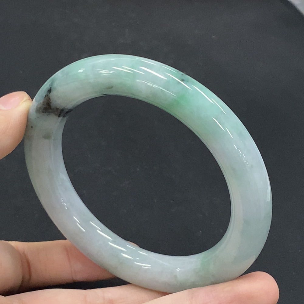 Jadeite Round Bangle with Other Mineral Components, Total Weight Approximately 73.07g, Size 58.4