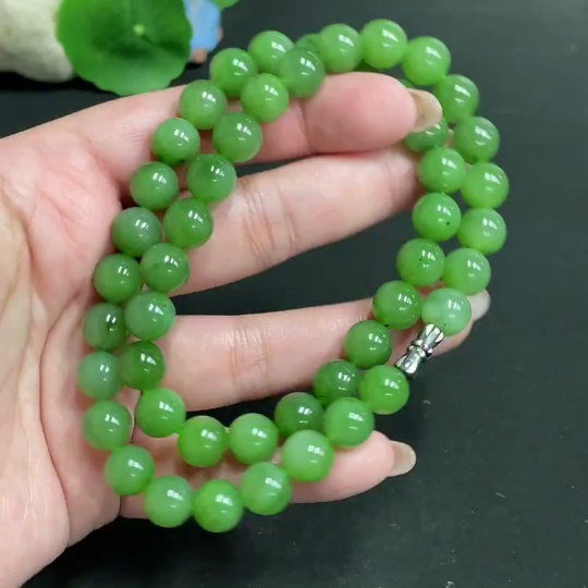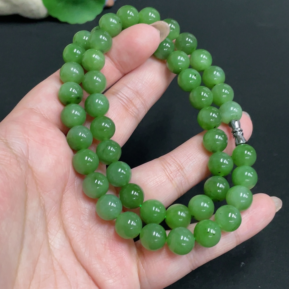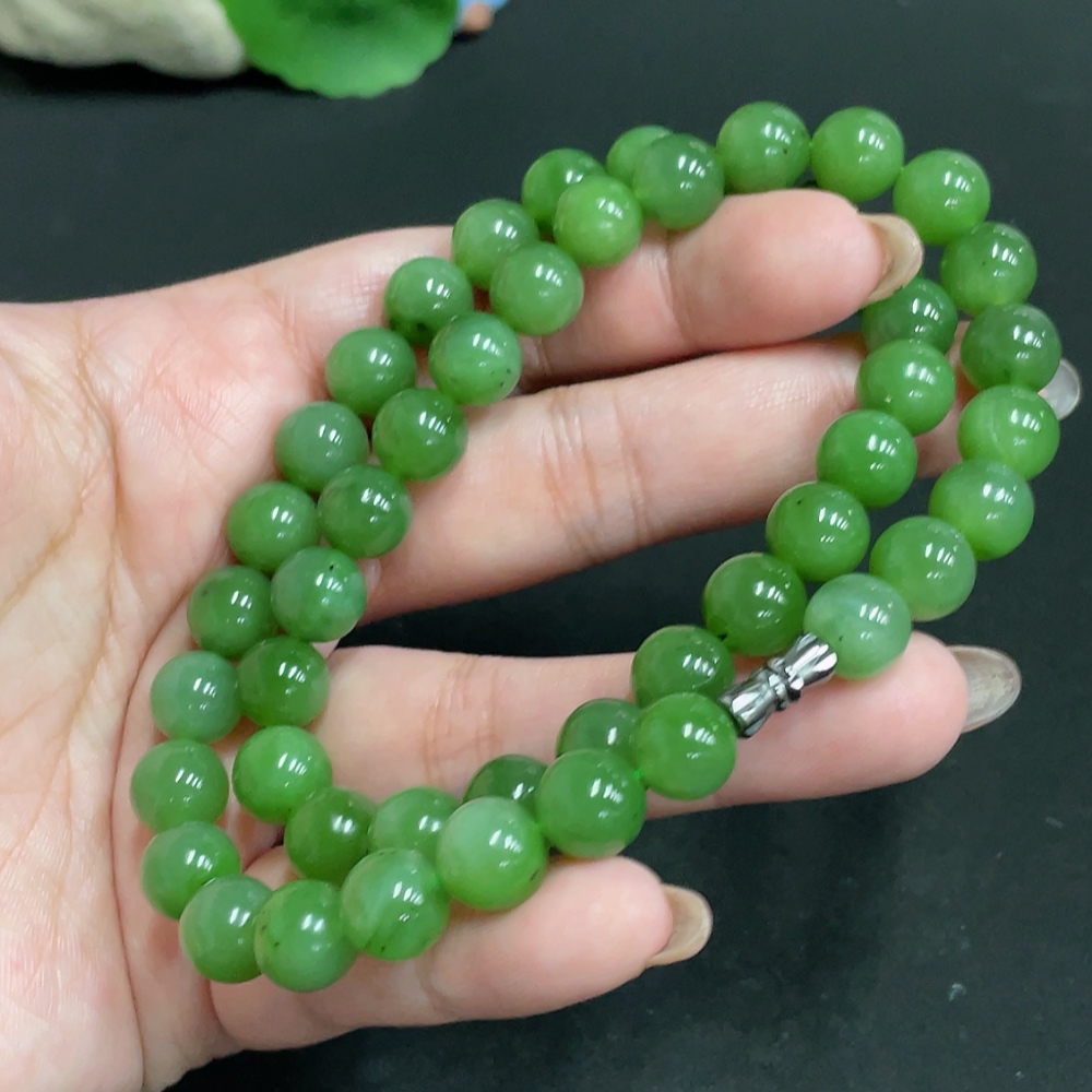 Hetian Jade Jasper Bead Necklace, approx. 9.2mm, total weight approx. 64.6g