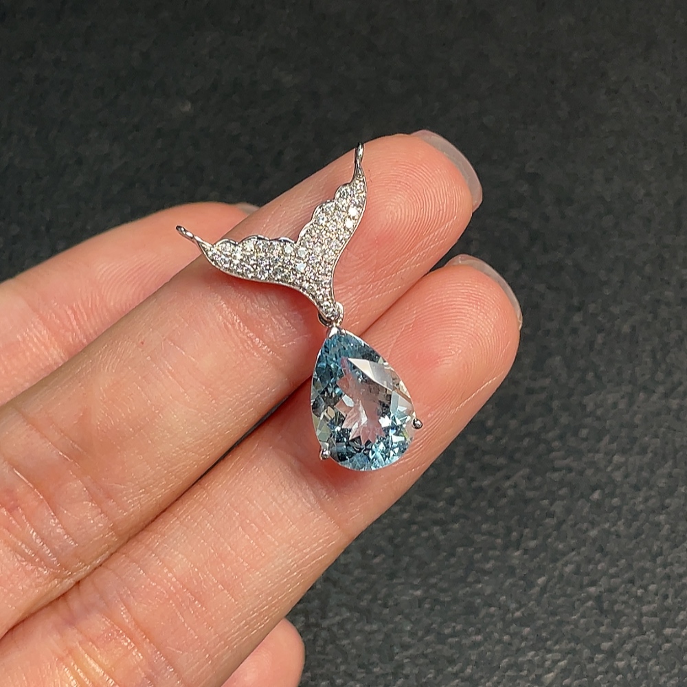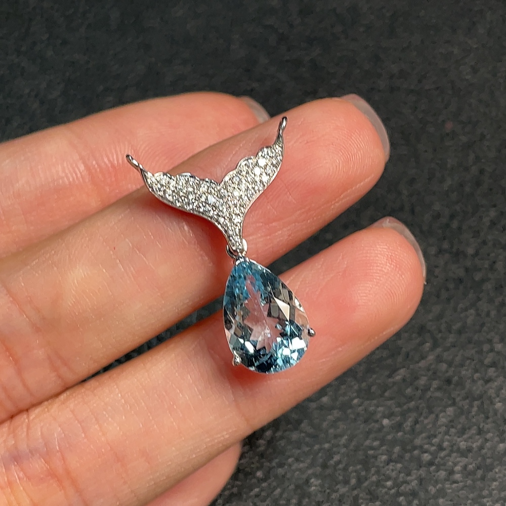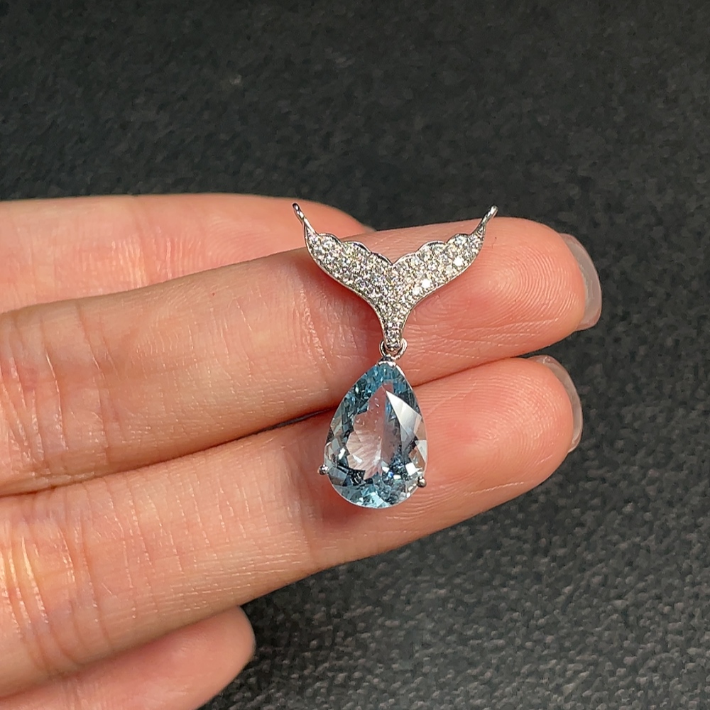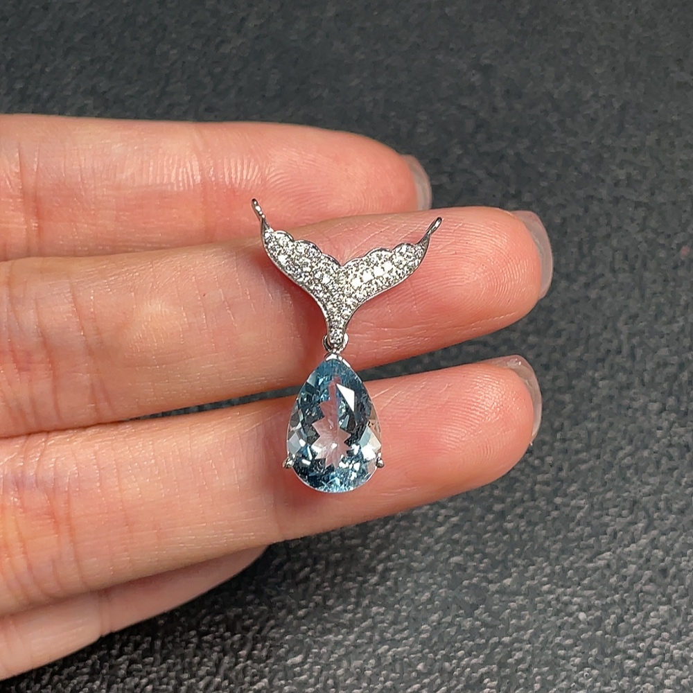 Aquamarine Pendant Unmarked 18K Gold Non-Diamond Total Weight Approx. 2.39g