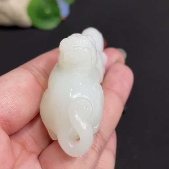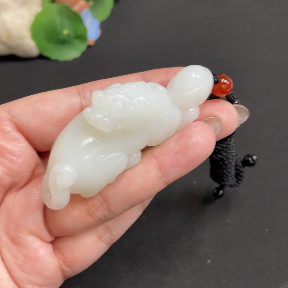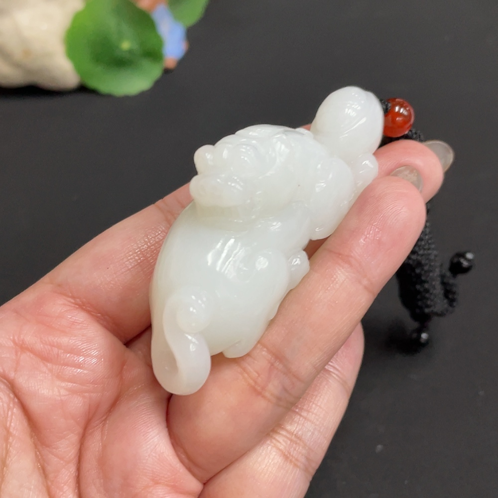 Hetian Jade Pendant, Auspicious Beast, with Non-Hetian Jade Beads, Total Weight Approx. [Including Rope] 65.3g