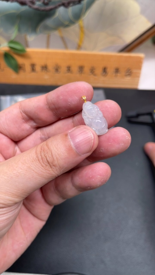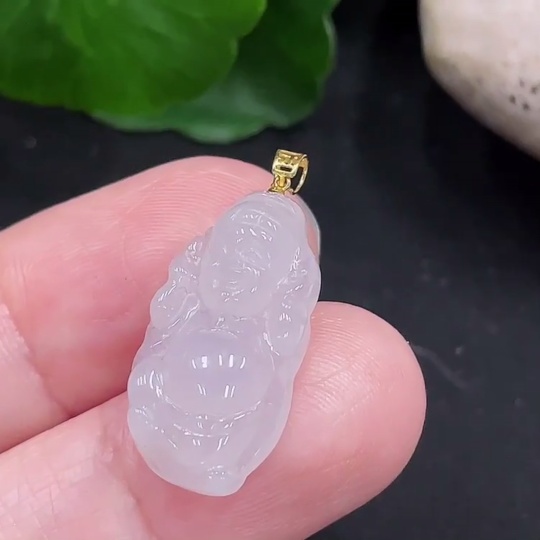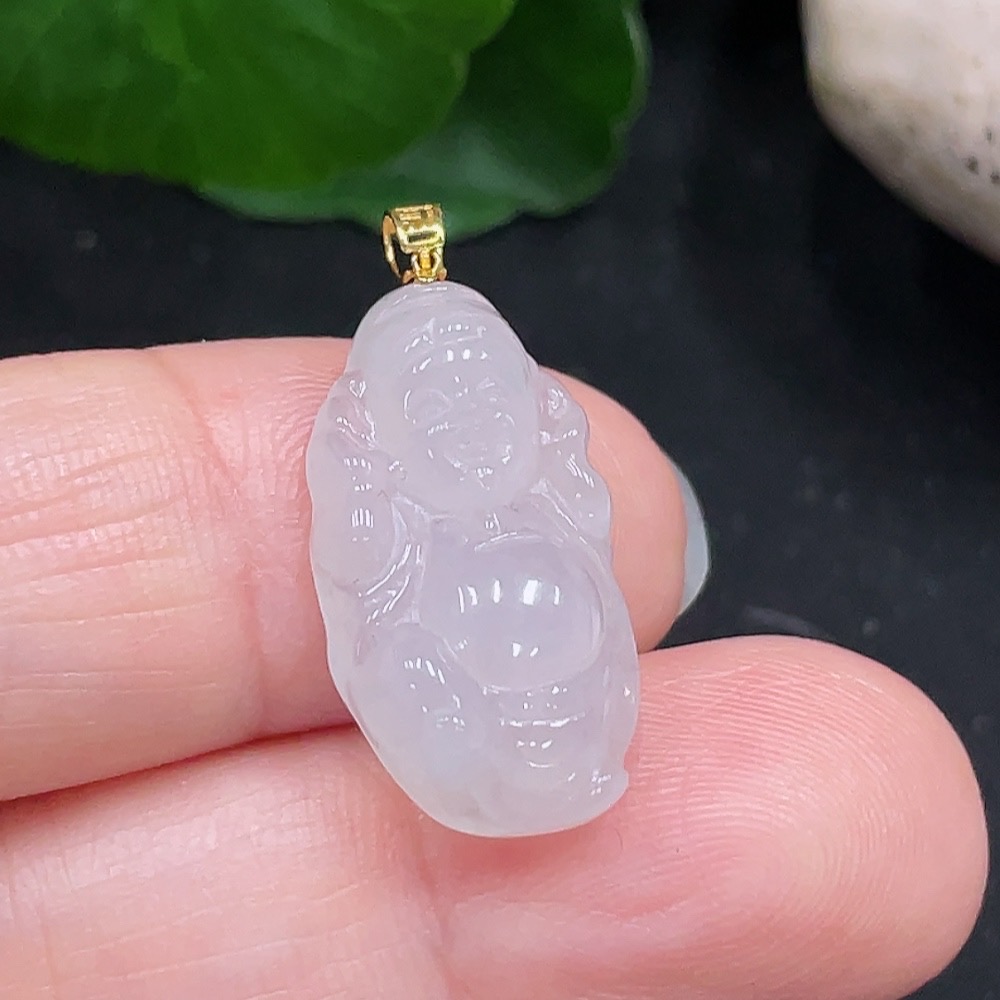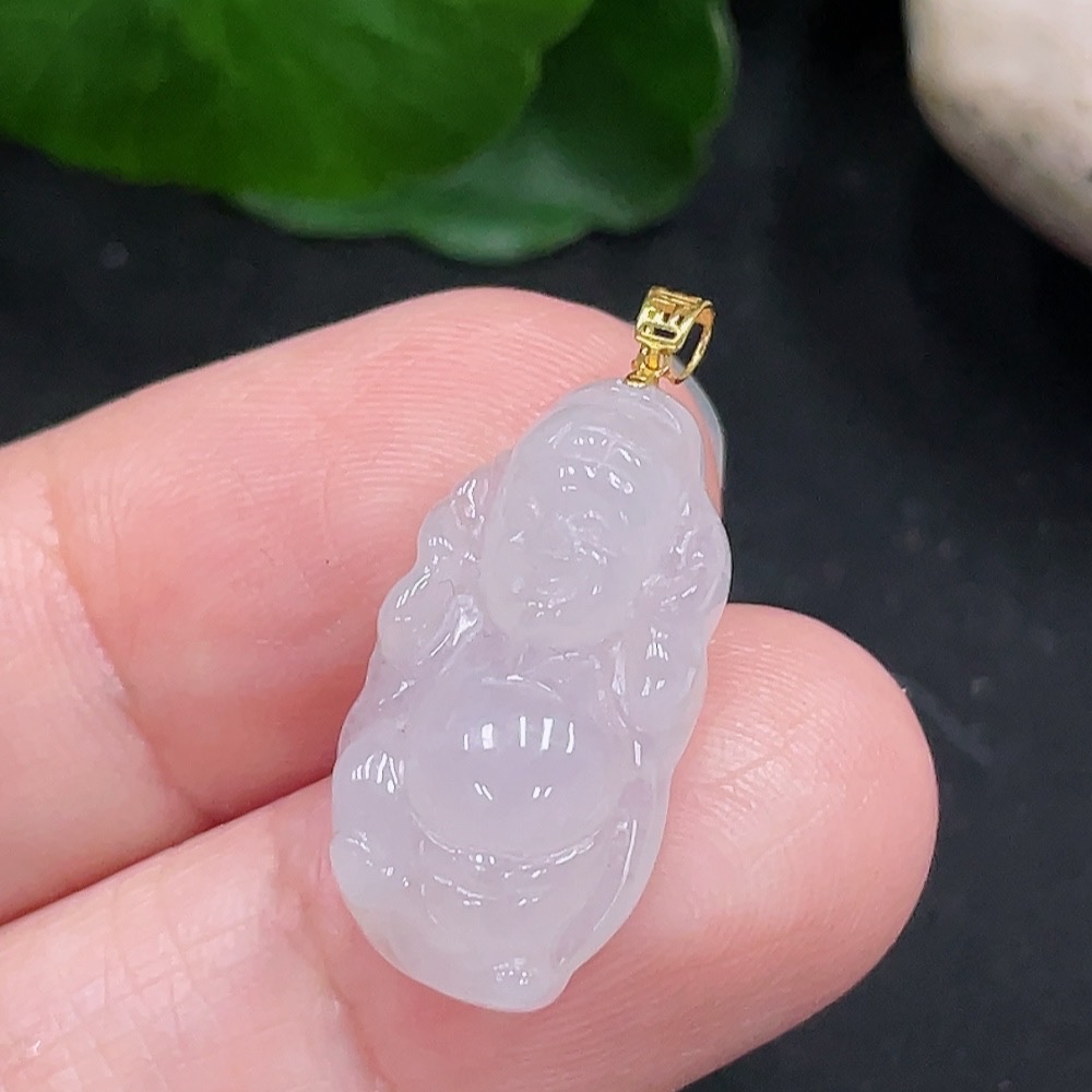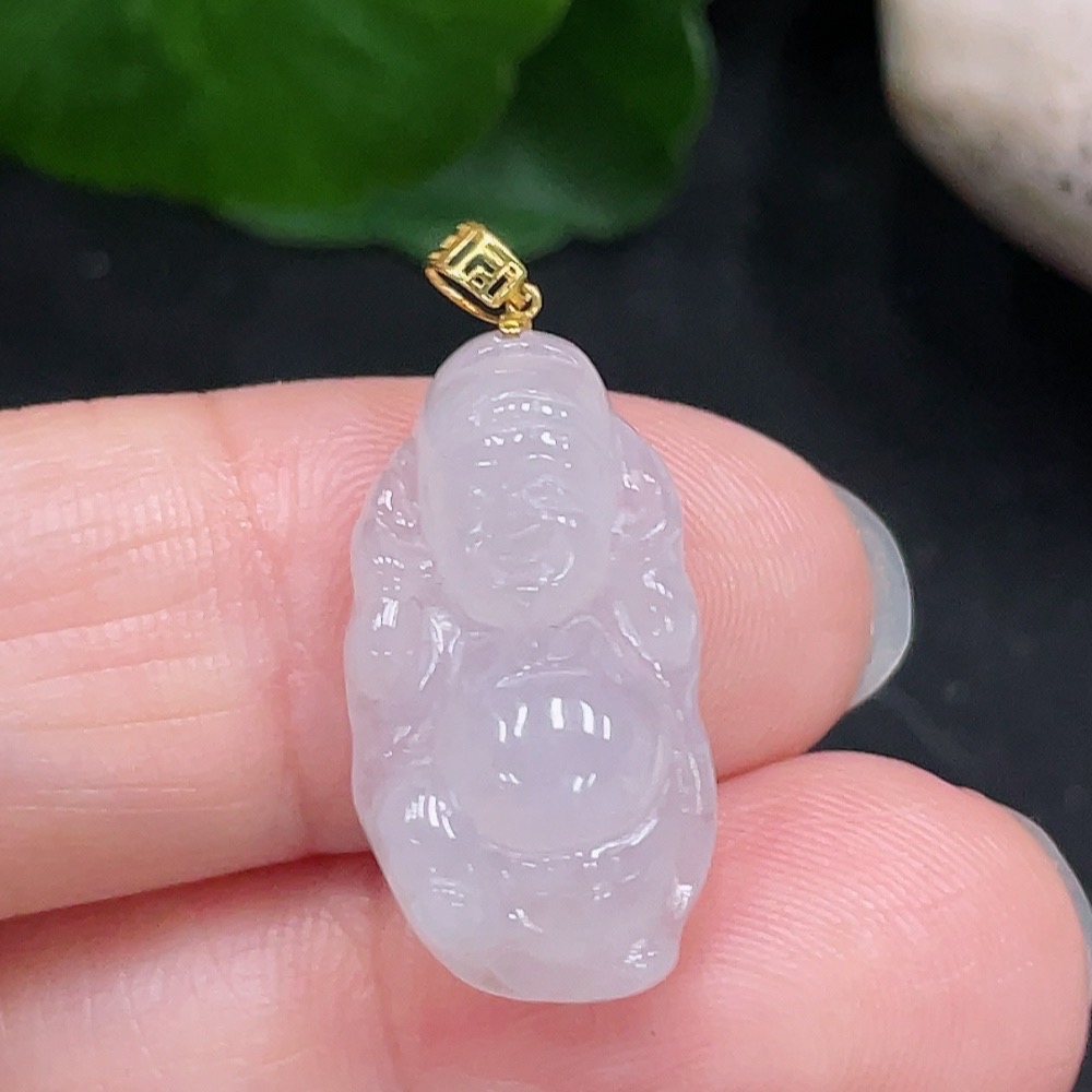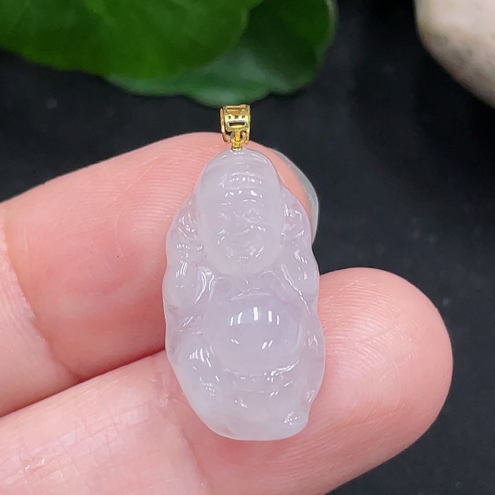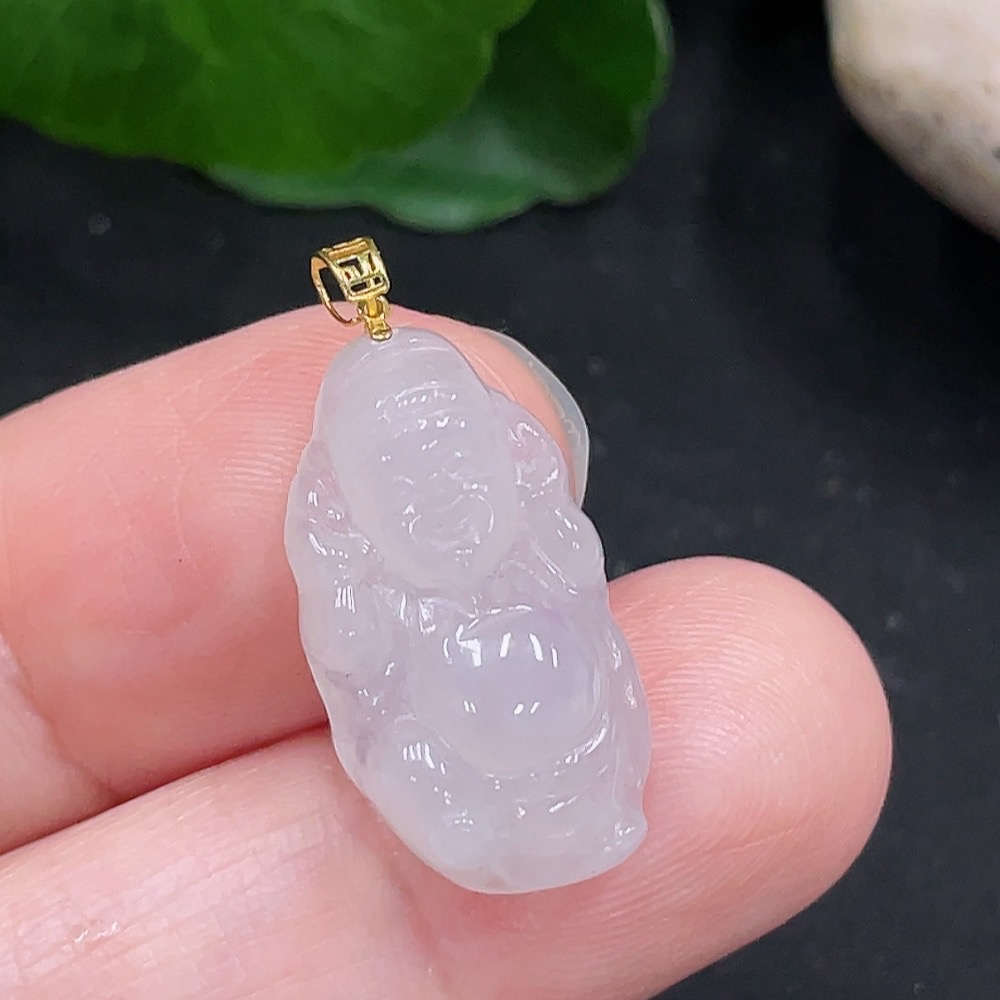 Jadeite Caishen Pendant 18K Gold Total Weight Approx. 2.1g