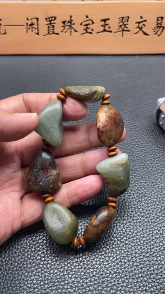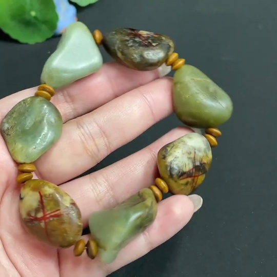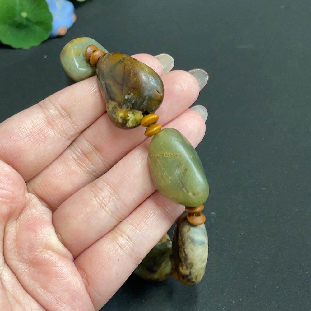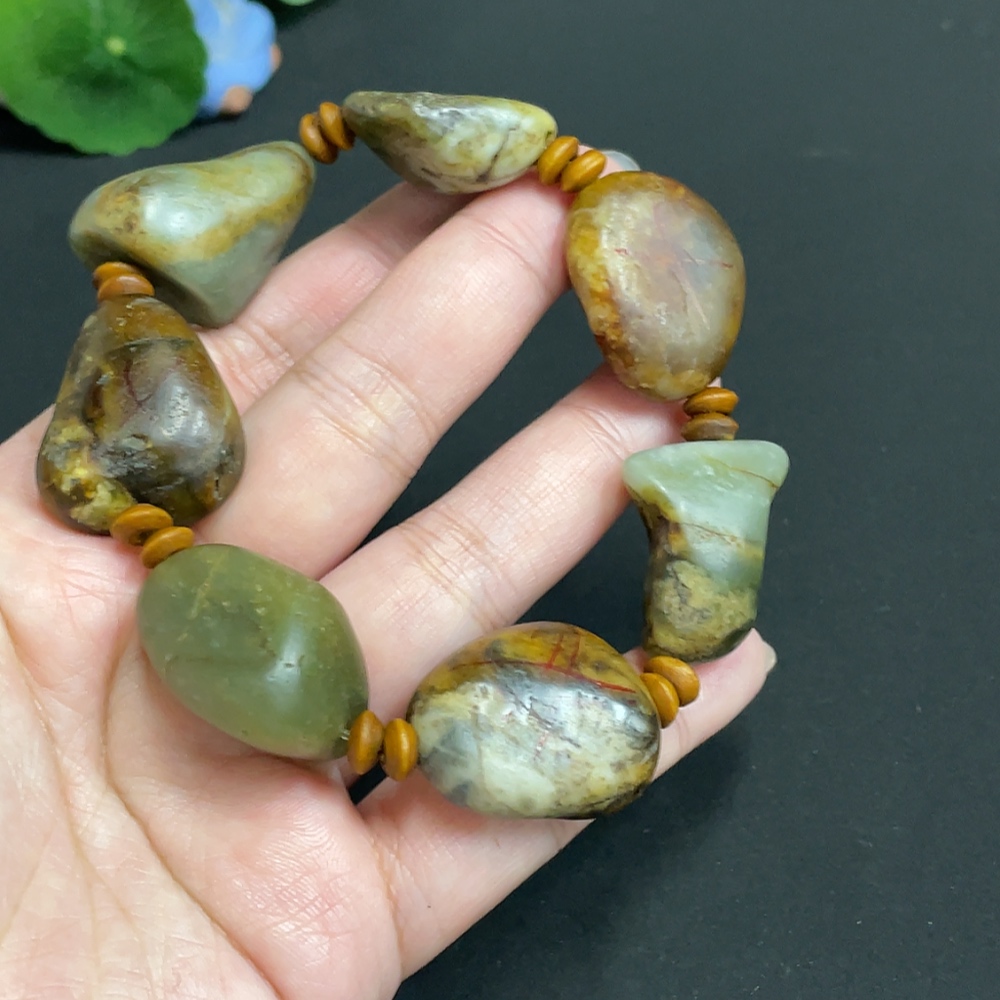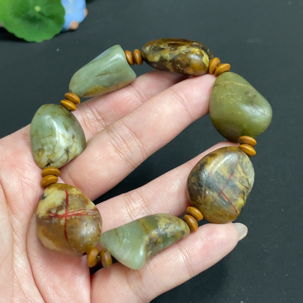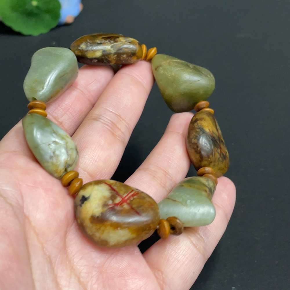 Hetian Jade Bracelet with Non-Hetian Jade Beads, Containing Impurities, Undetermined Skin Color Origin, Including Other Mineral Components, Total Weight Approximately 79.9g