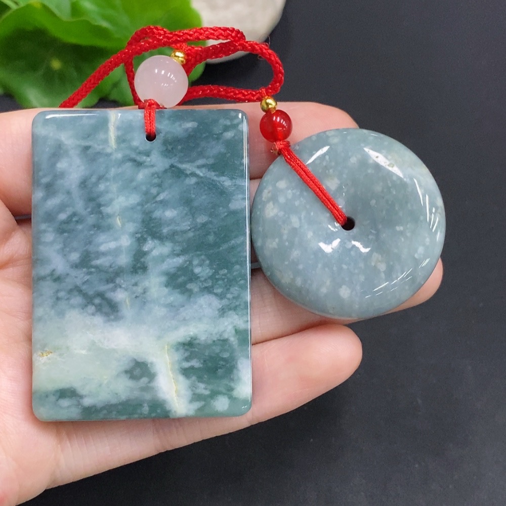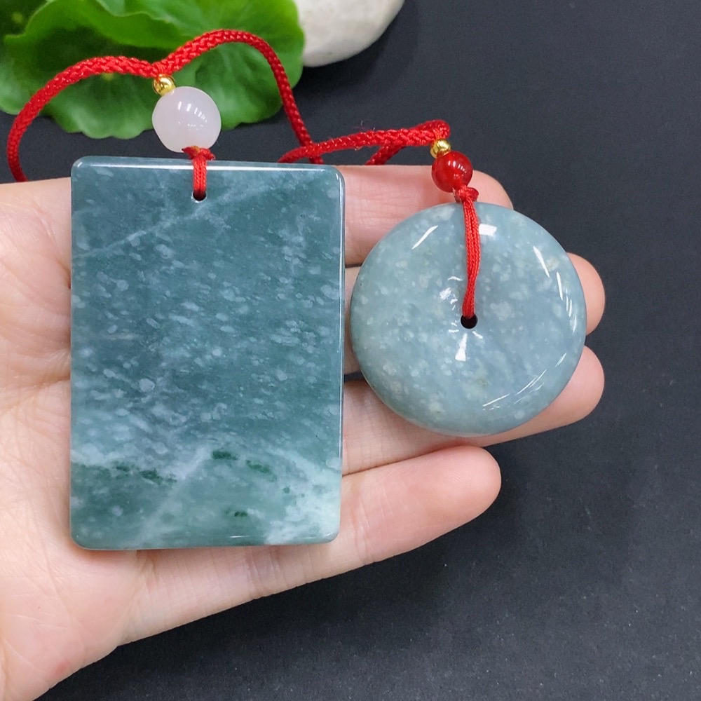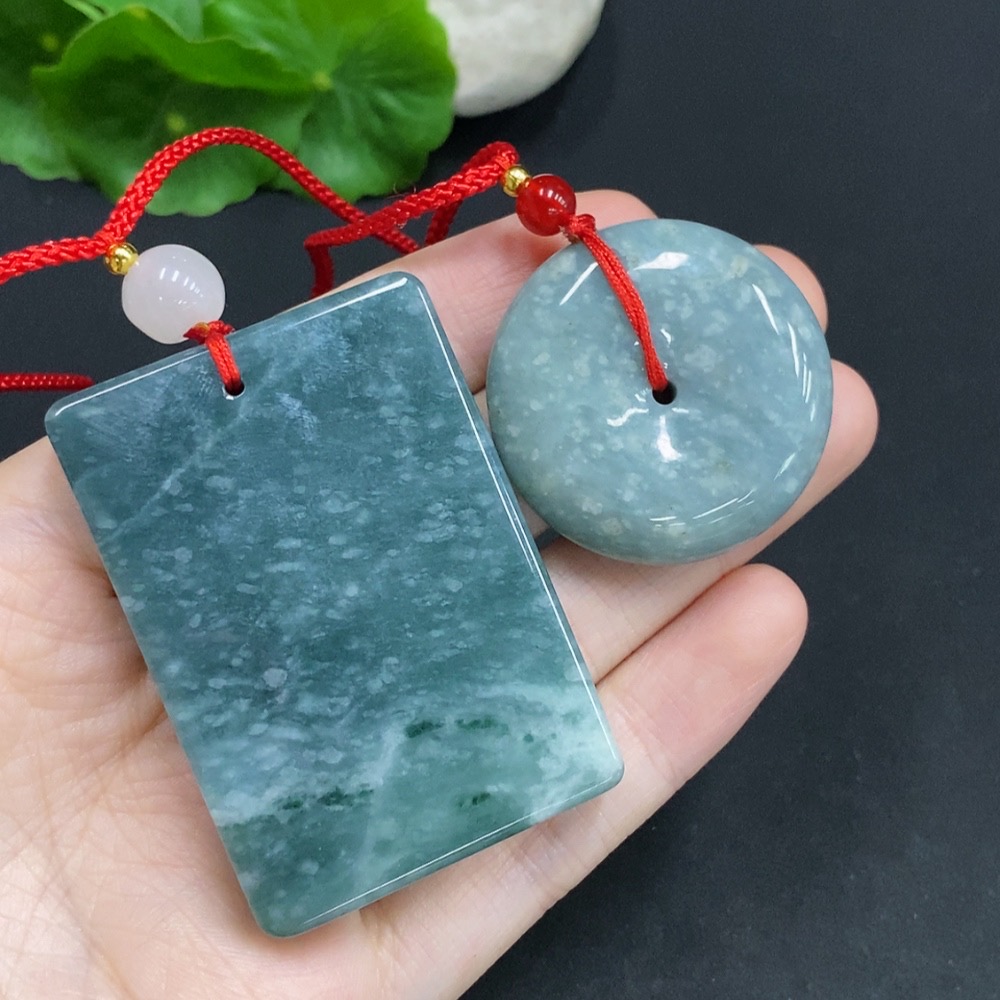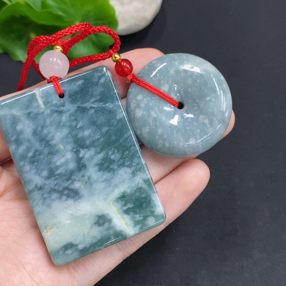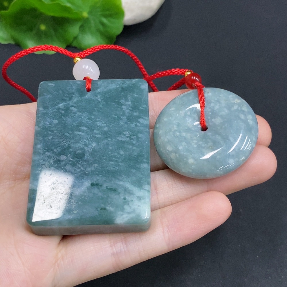 Jadeite Pendants Sell as a Lot (Beads Not Grade A) (Non-Gold Inlaid)