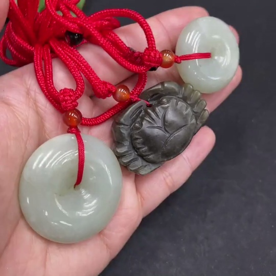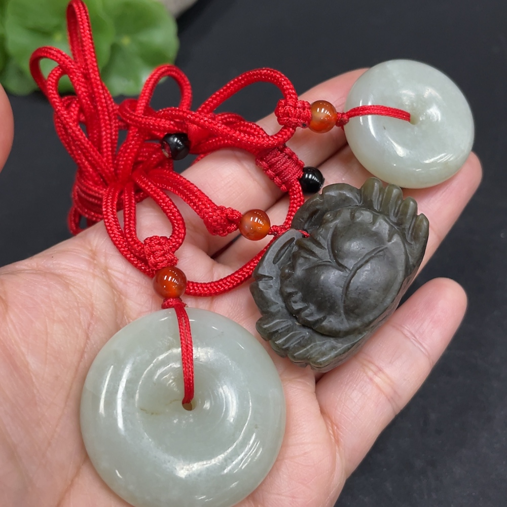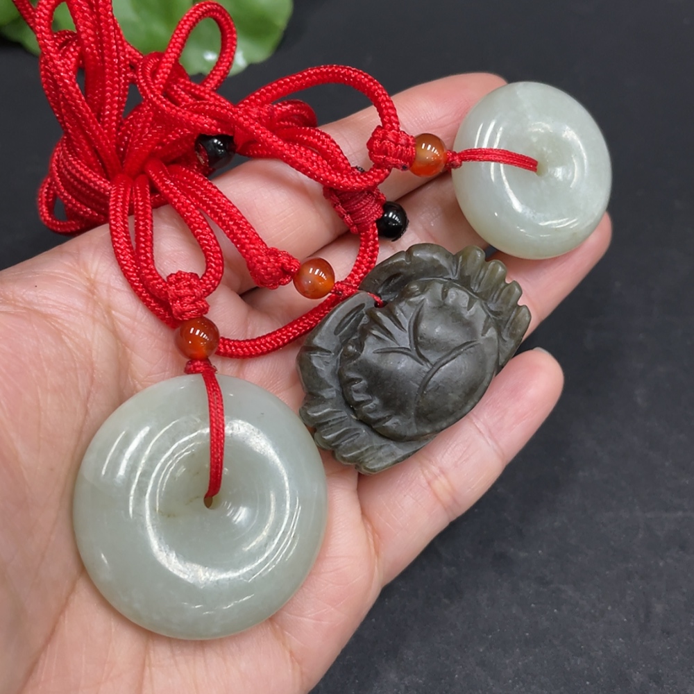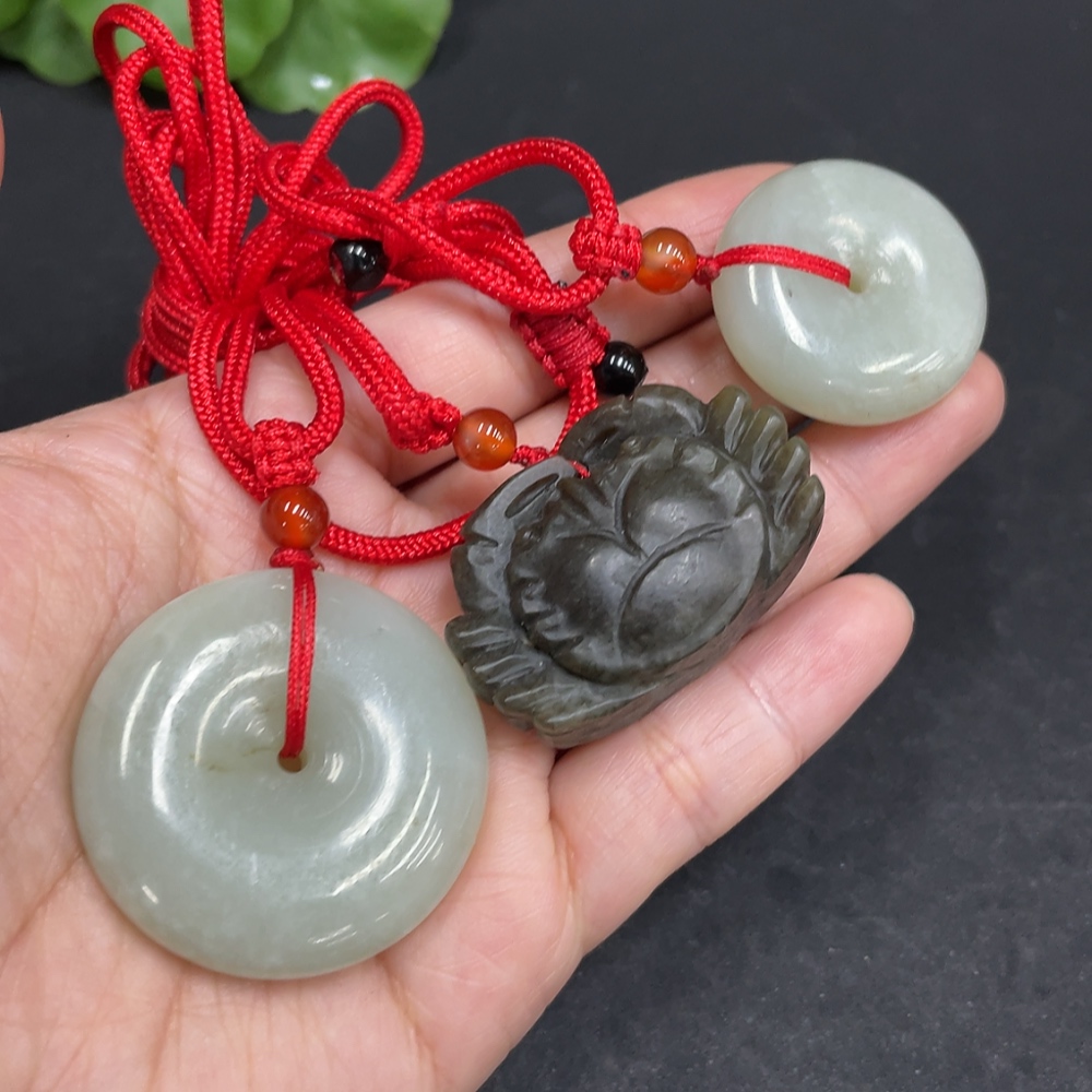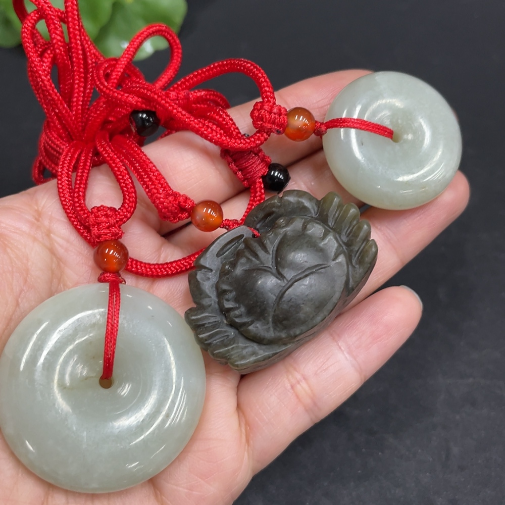 Hetian Jade Pendant, Peace Knot, Wealth from All Directions
