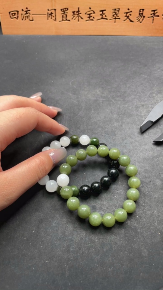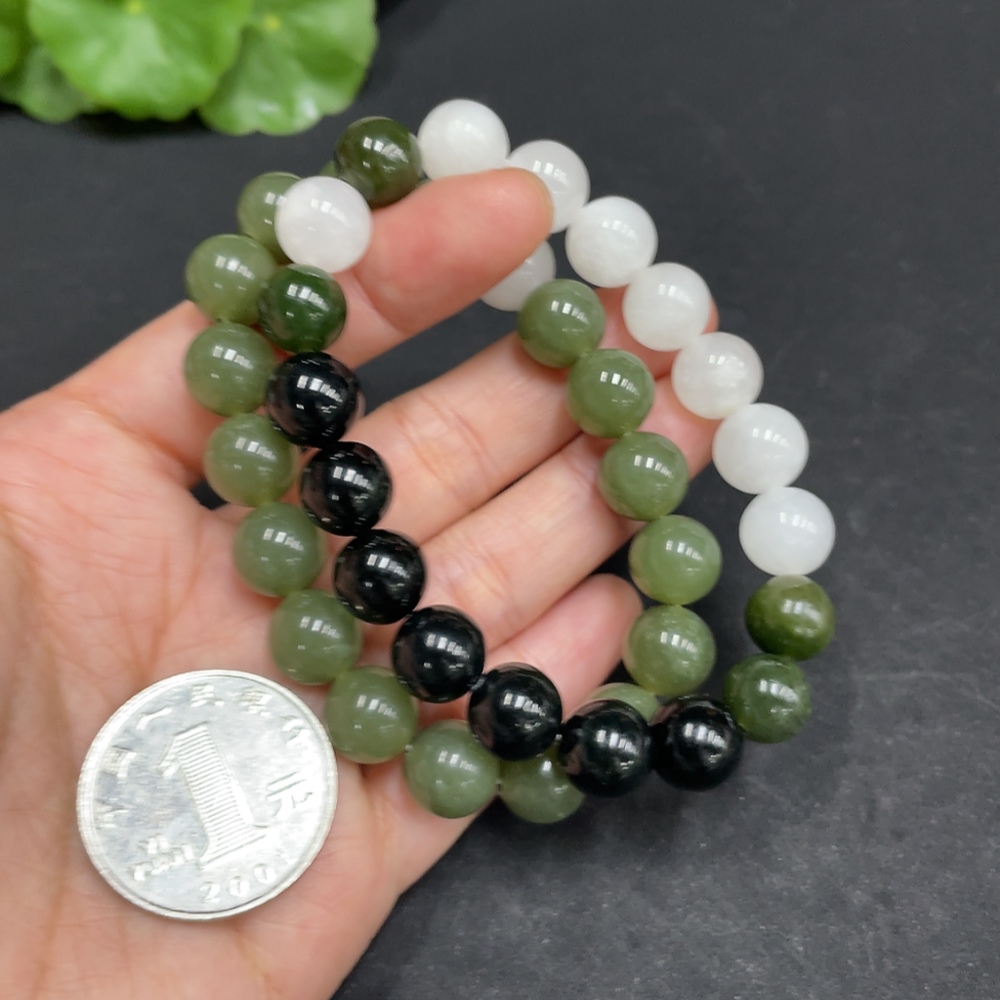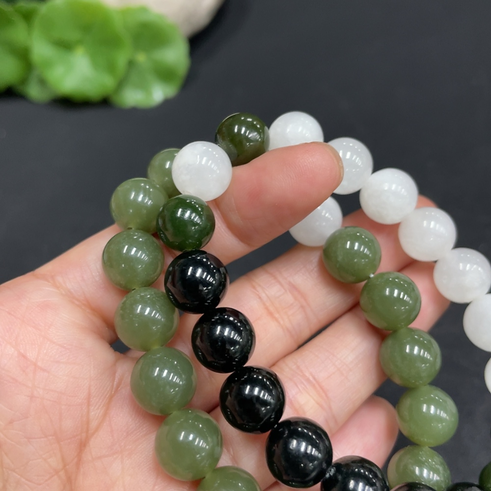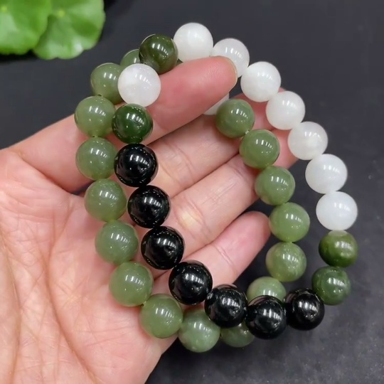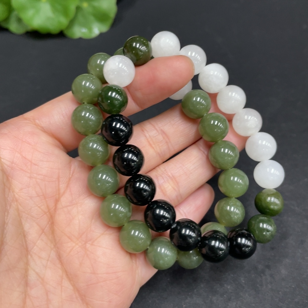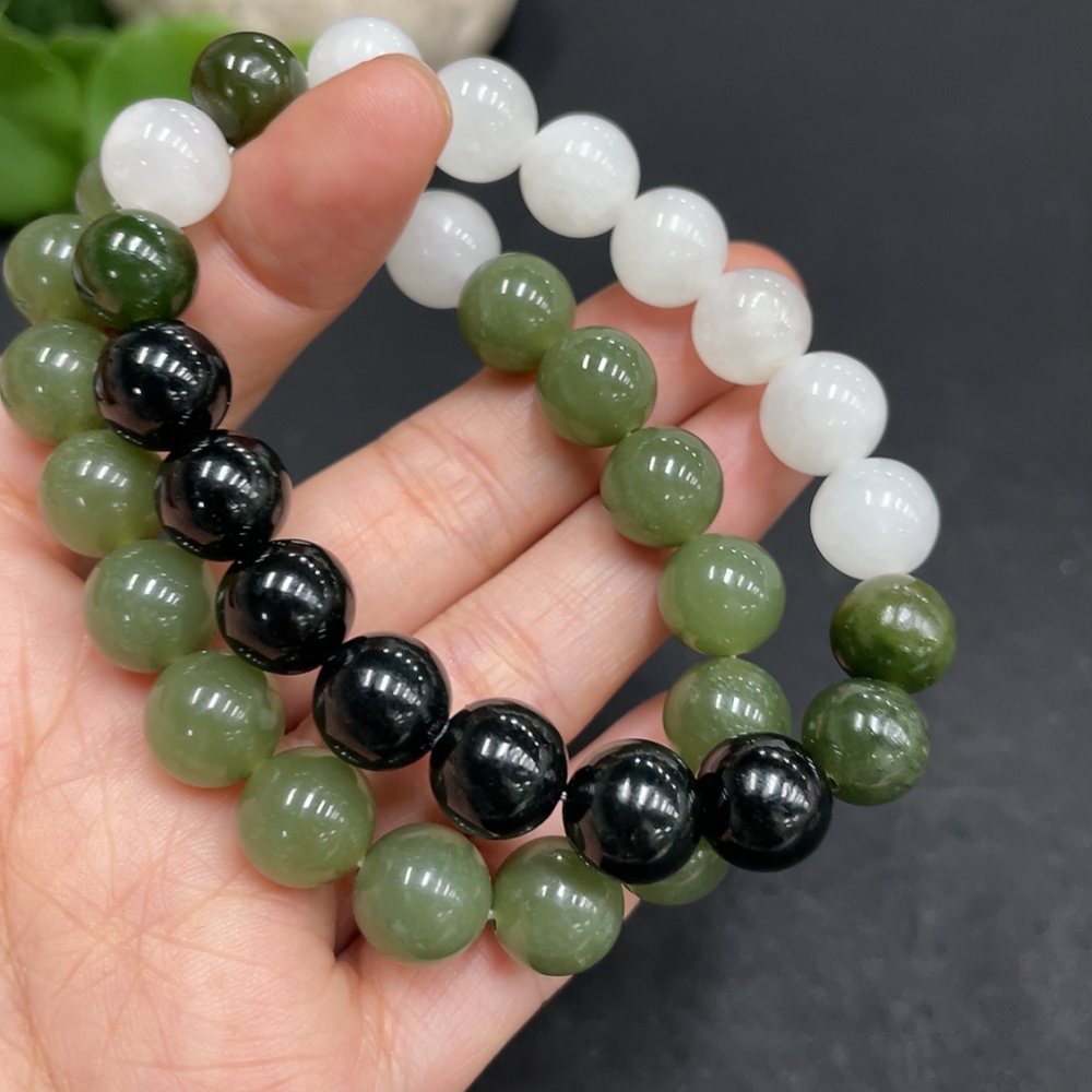 Hetian Jade Bracelet, approx. 10/9.4mm, total weight approx. 57.6g, contains other mineral components