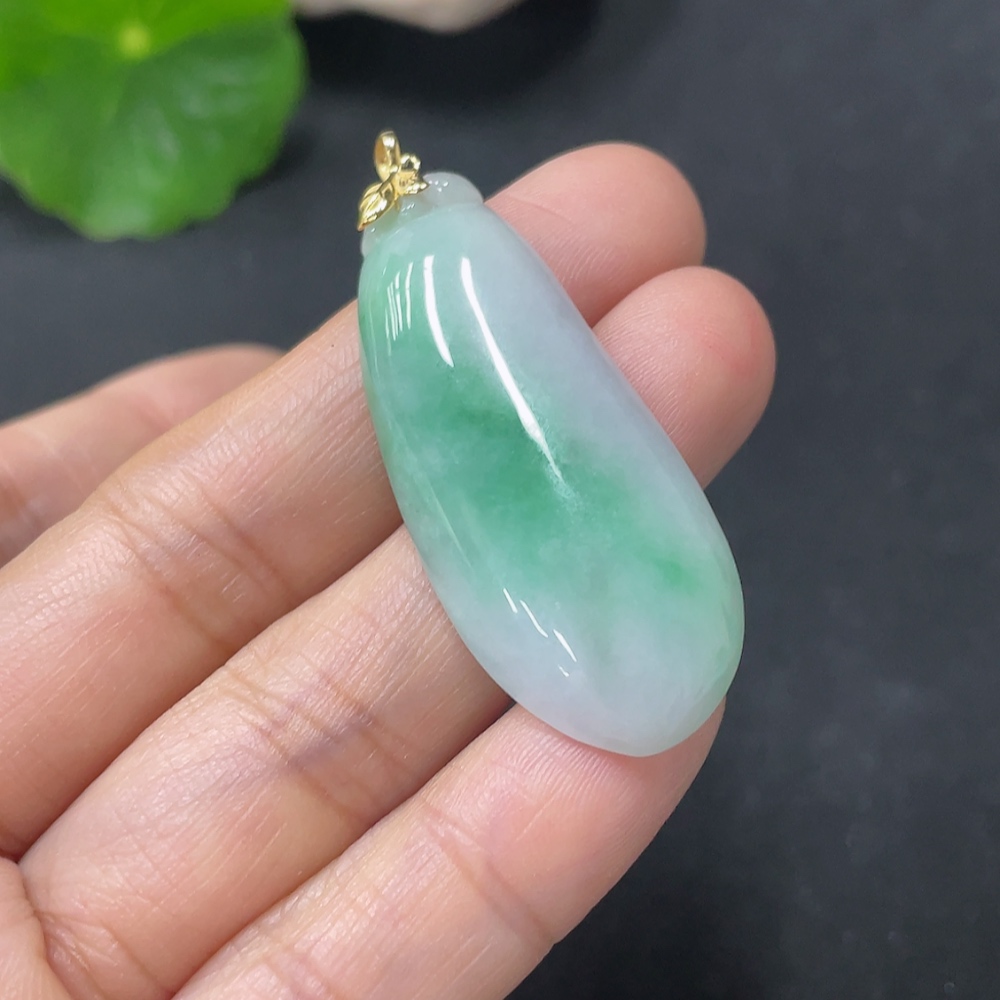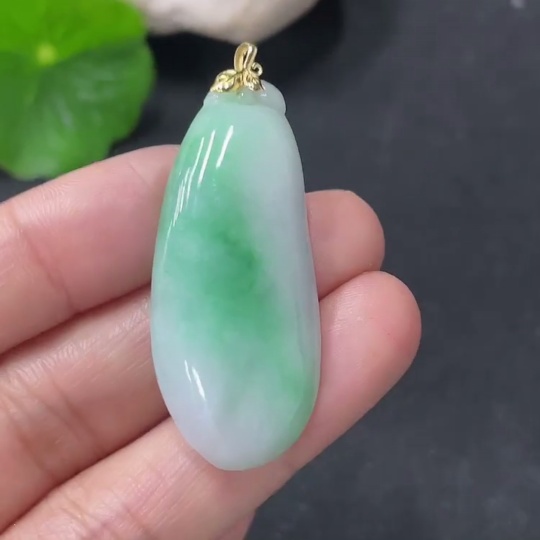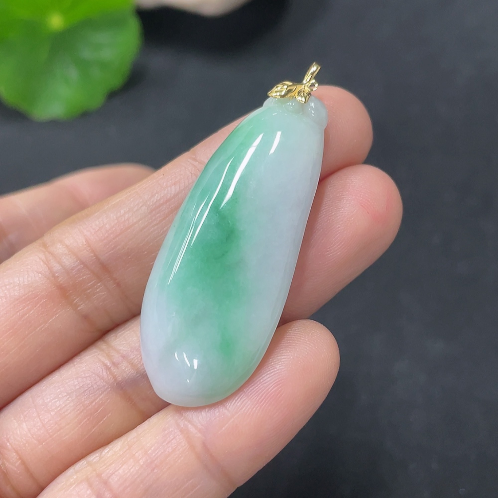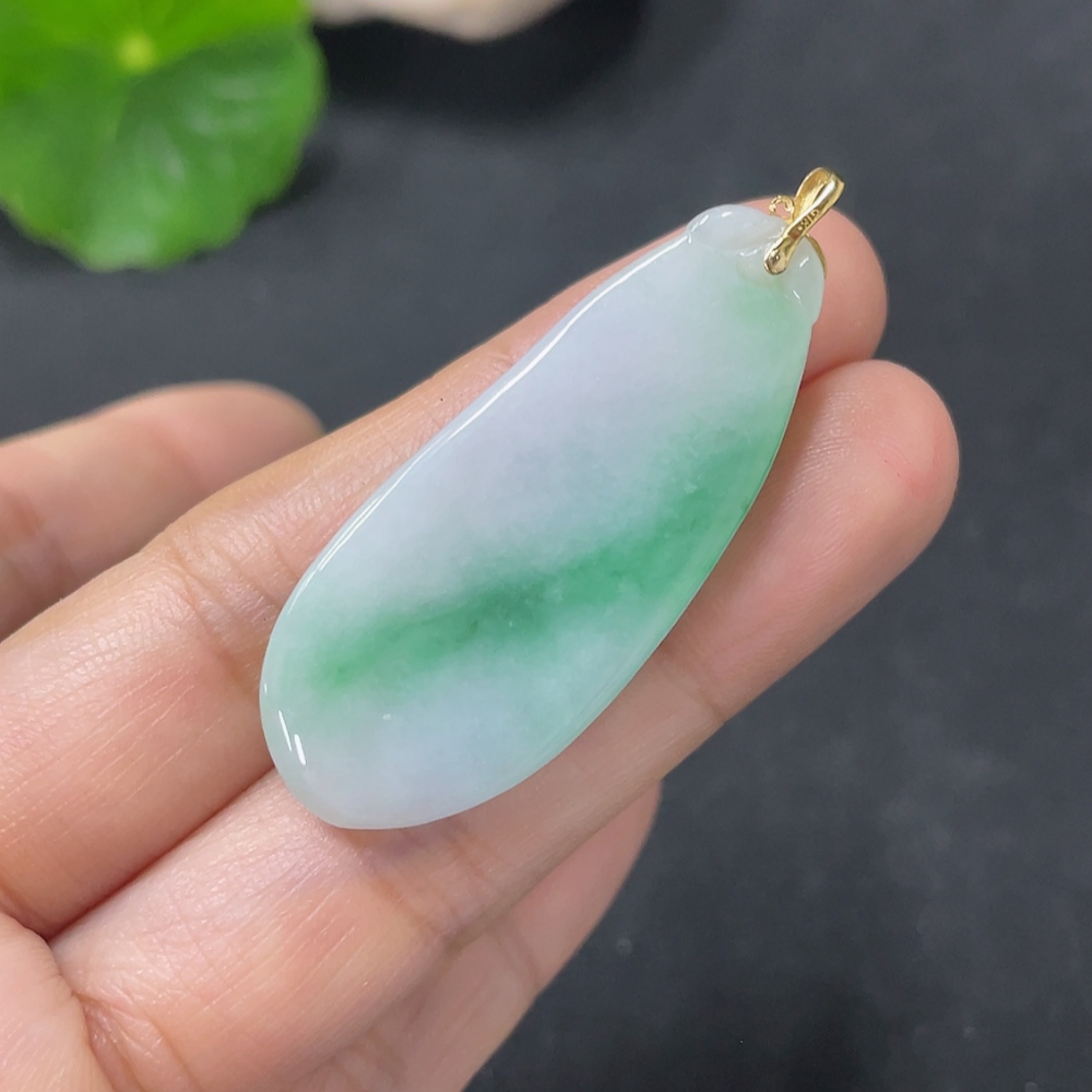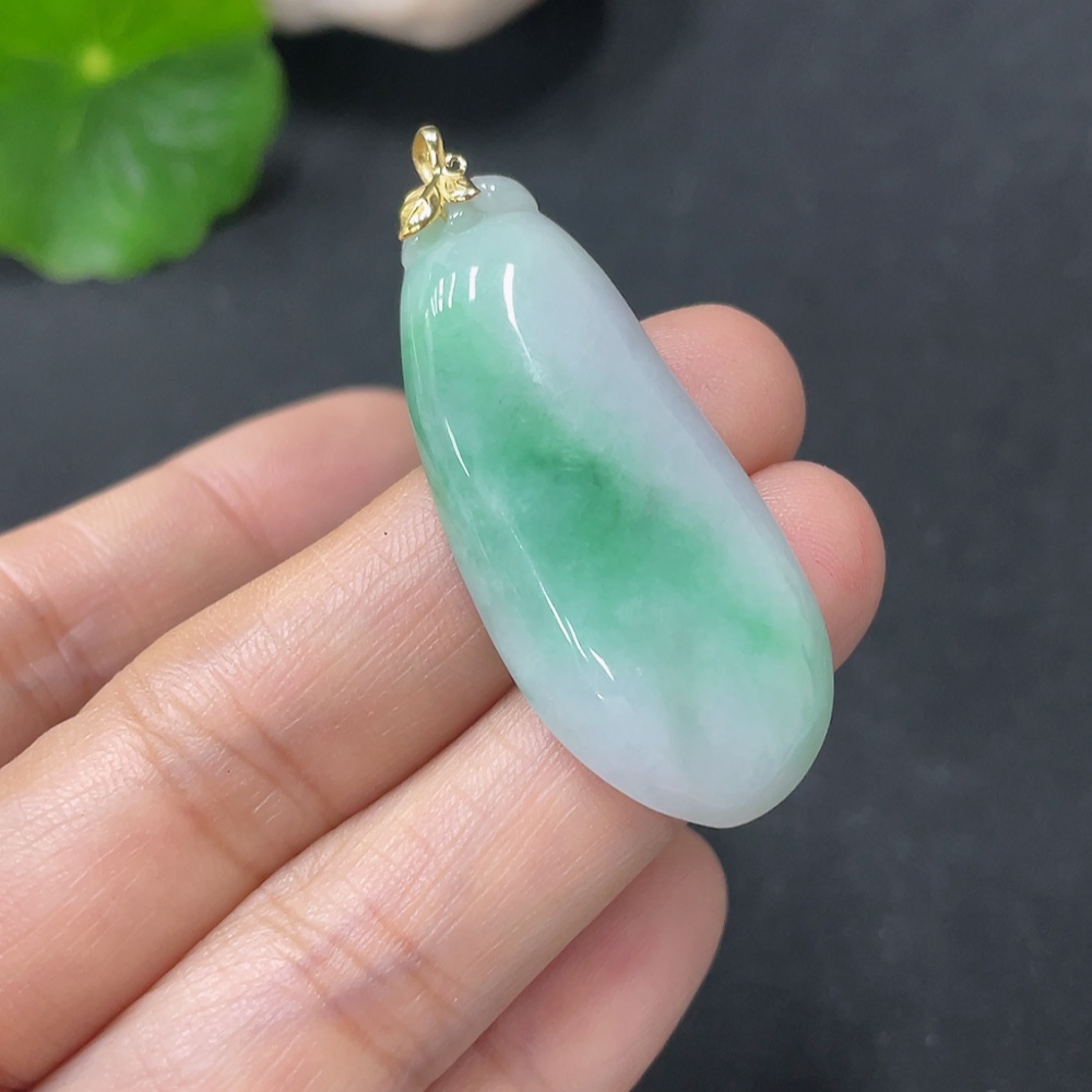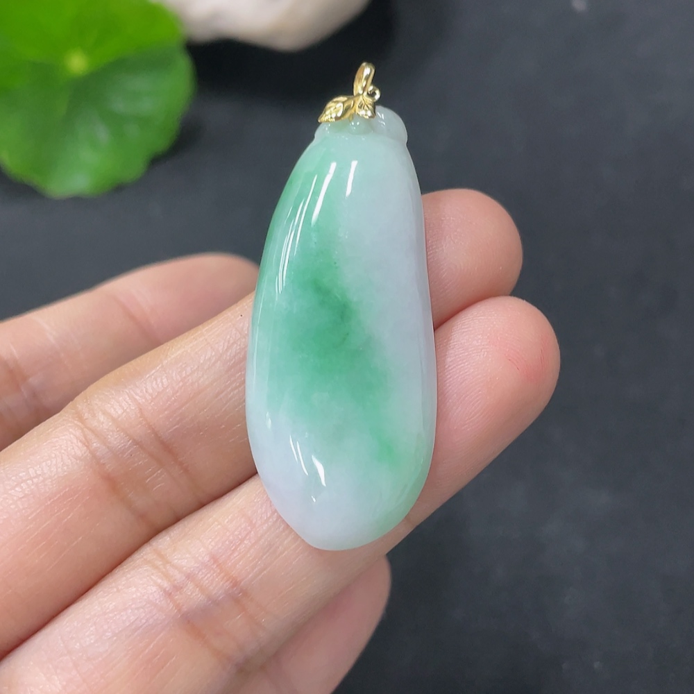 Jadeite Blessing Melody Pendant with 18K Gold Clasp, Total Weight Approximately 7.5g