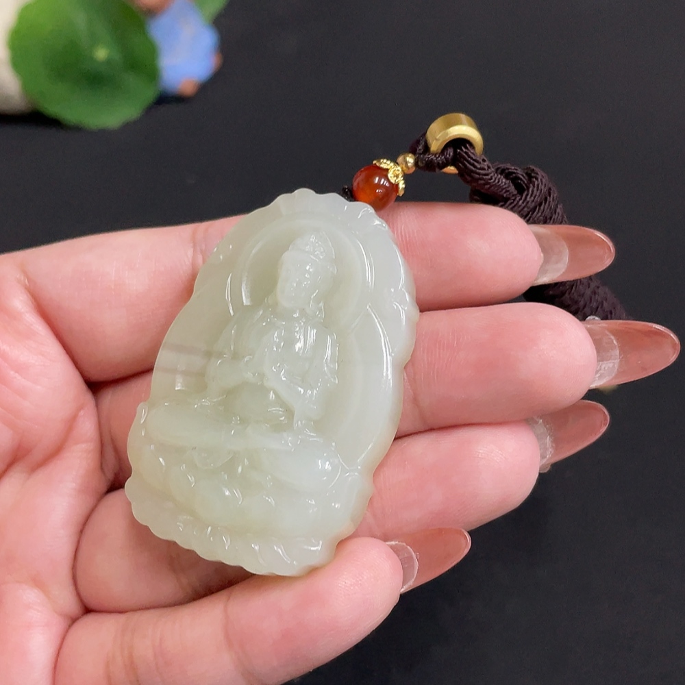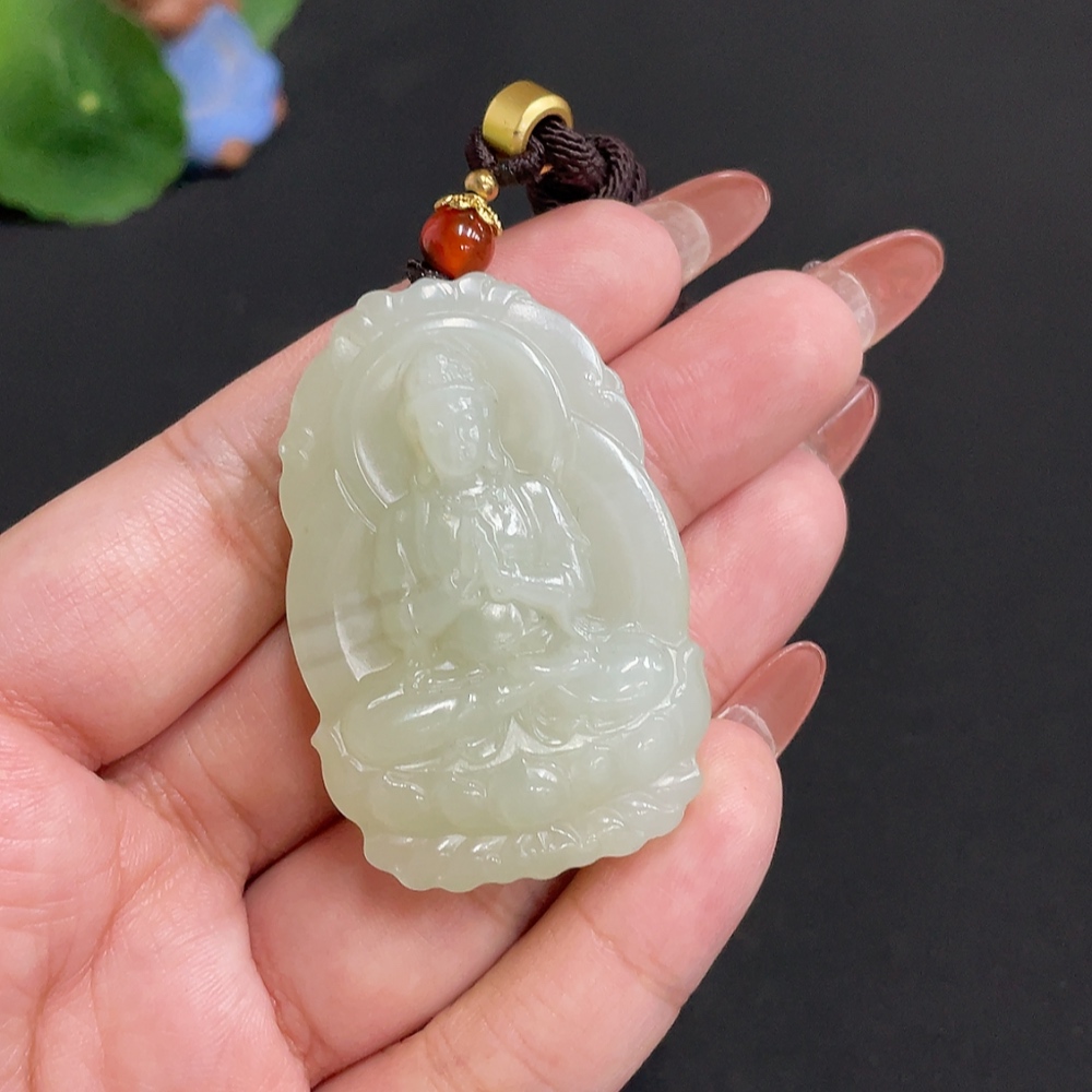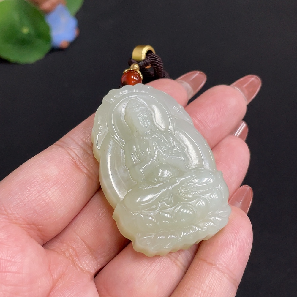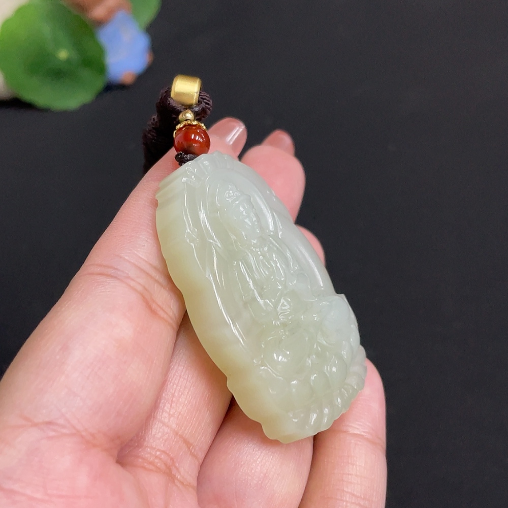 Hetian Jade Pendant Guanyin Total Weight Approx. [with rope] 38.3g