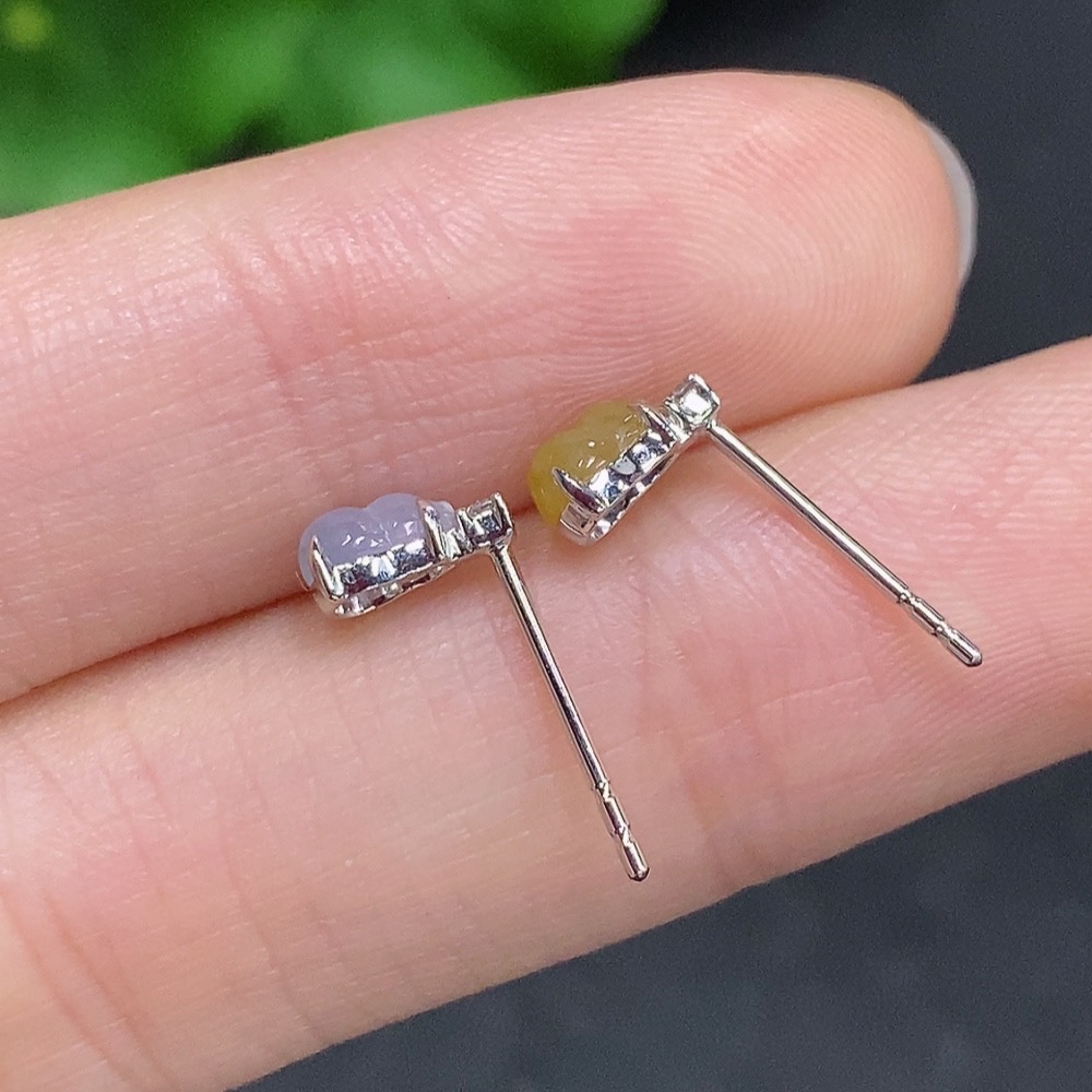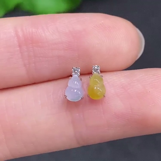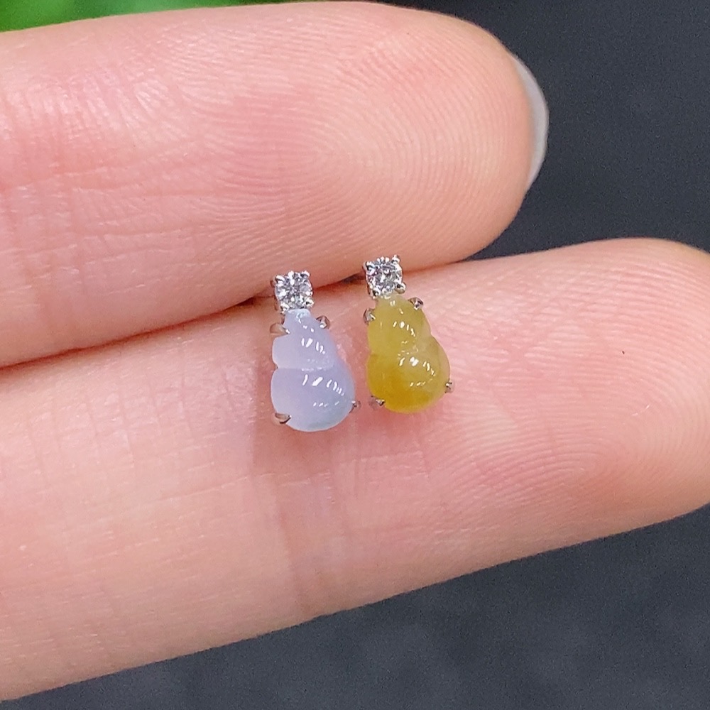 Jadeite Gourd Inlaid Earrings 18k Gold Total Weight Approx. 0.5g Color Origin Undetermined
