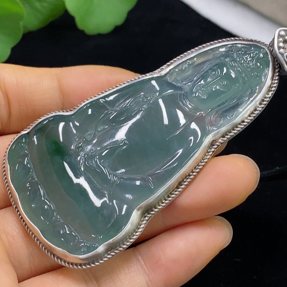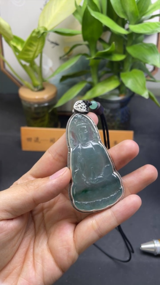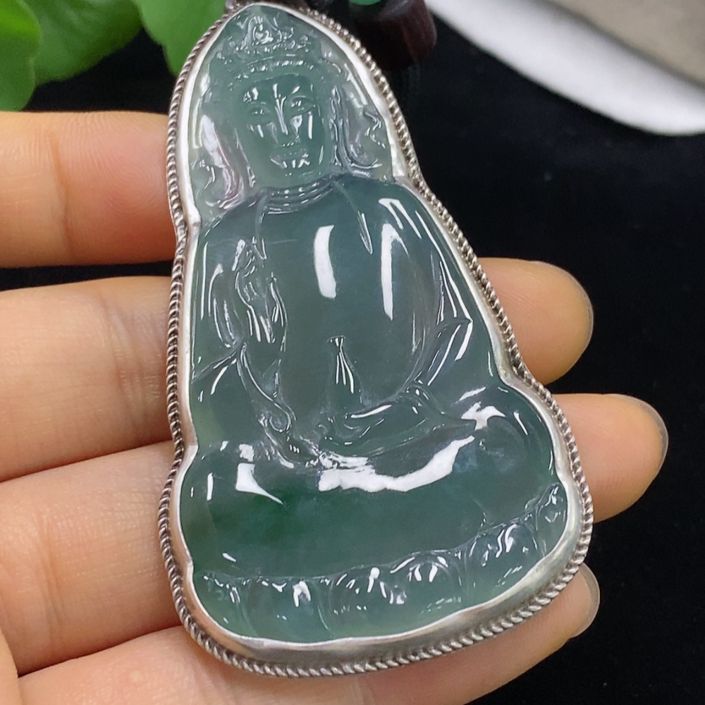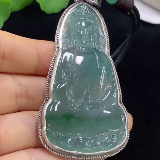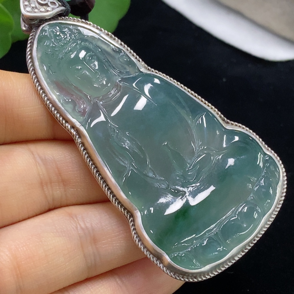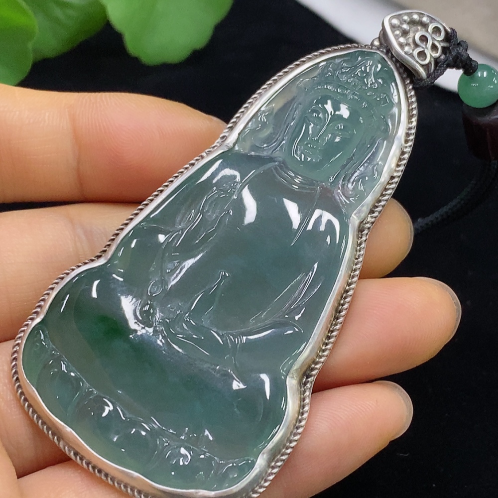 Jadeite Pendant Guanyin Non-Gold Beads Non-A with Cord Total Weight Approx. 37.48g