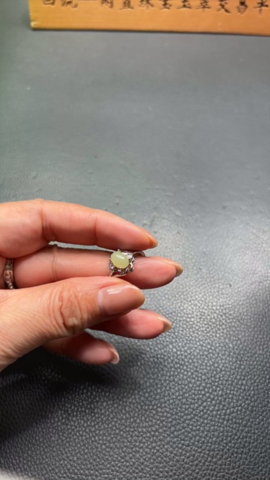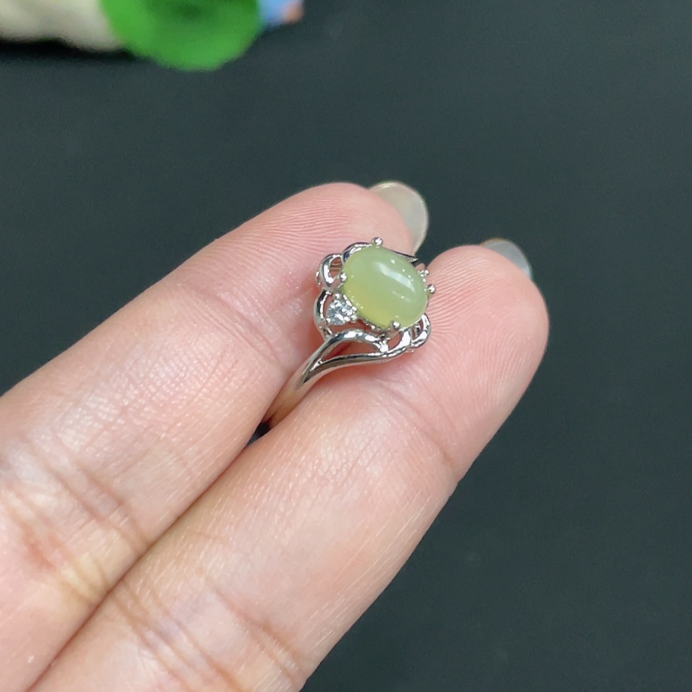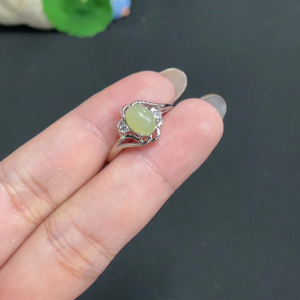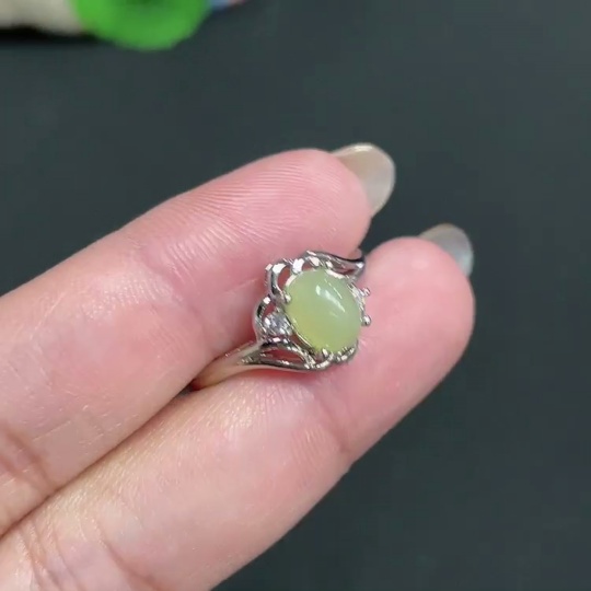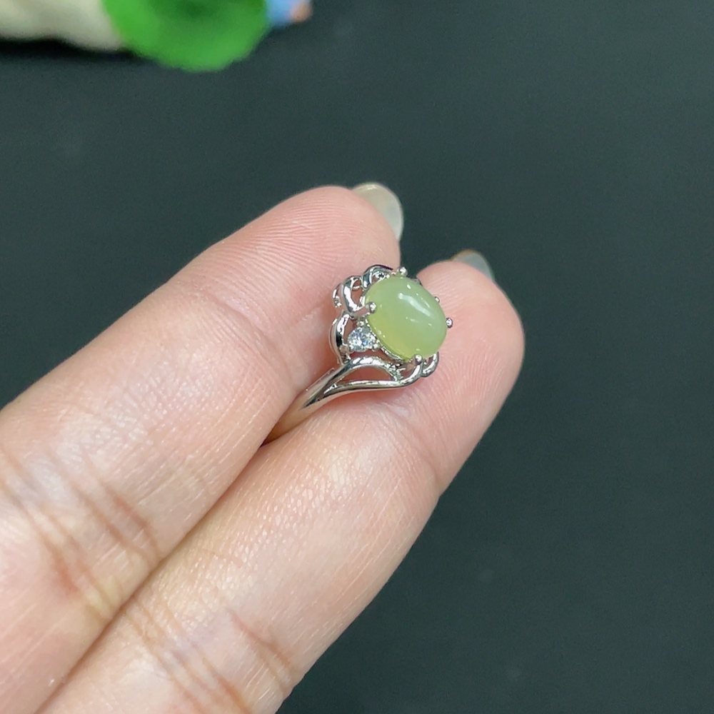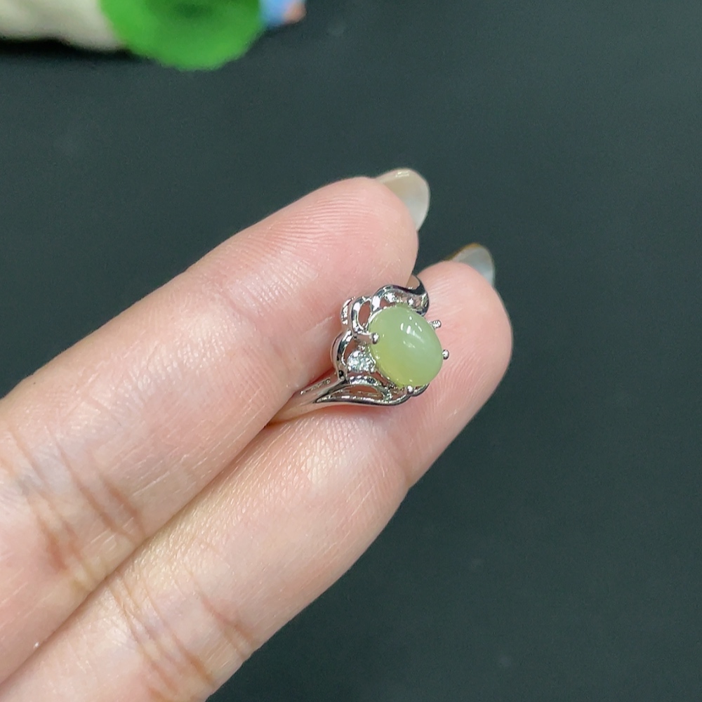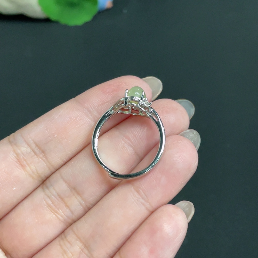 Hetian Jade inlaid adjustable ring, total weight approx. 2.3g, non-gold