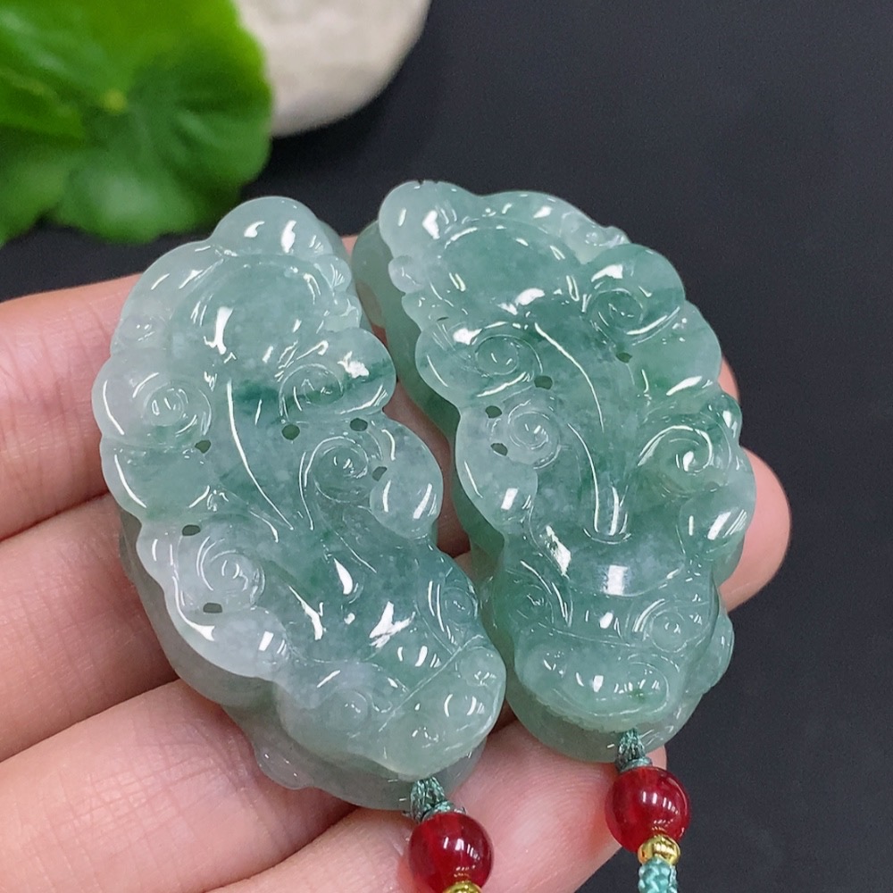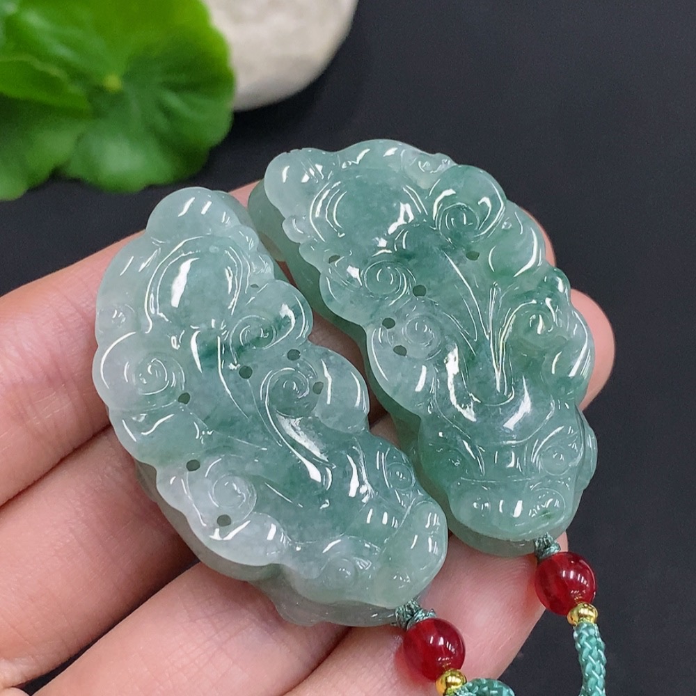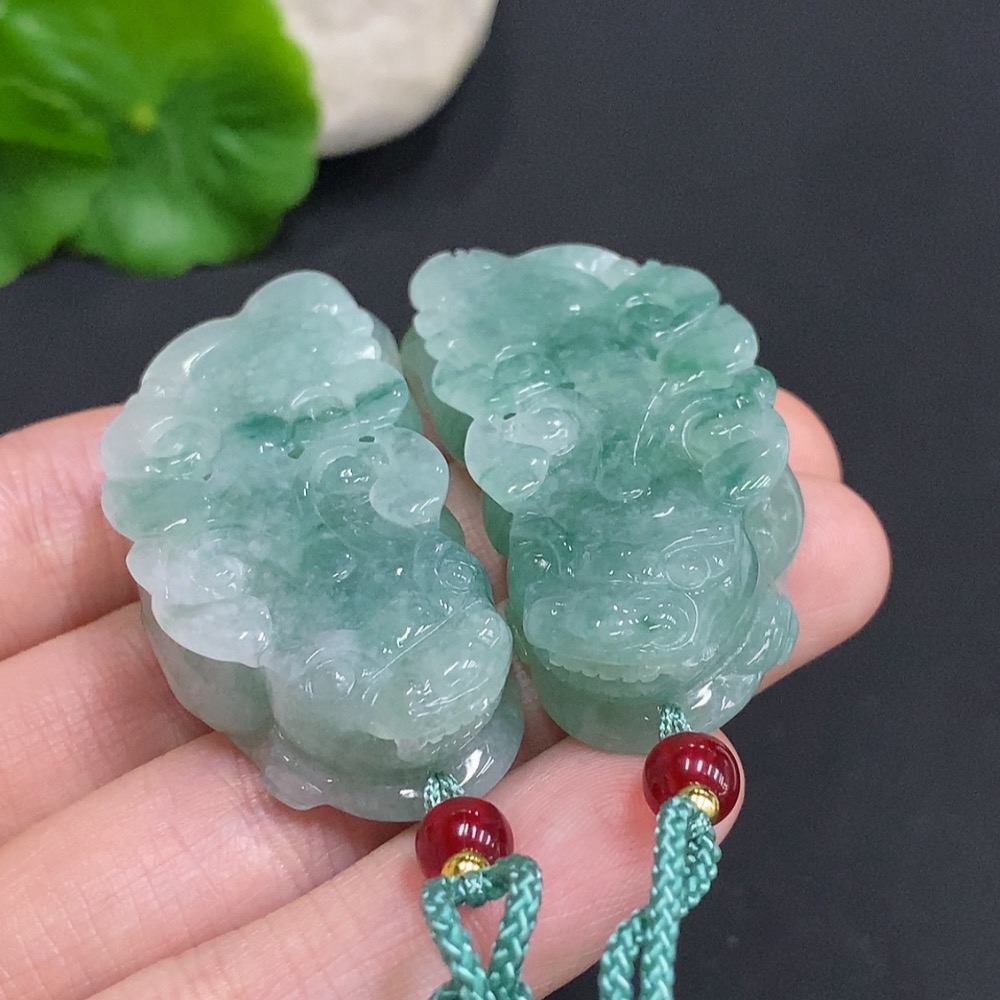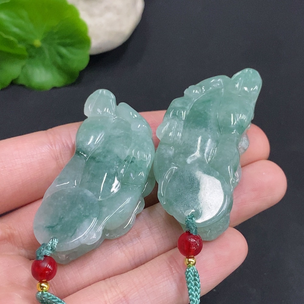Jadeite Pi Xiu Pendants Sell as a Lot Total Weight Approx. 53.4g (Incl. Rope Weight)