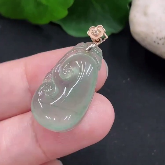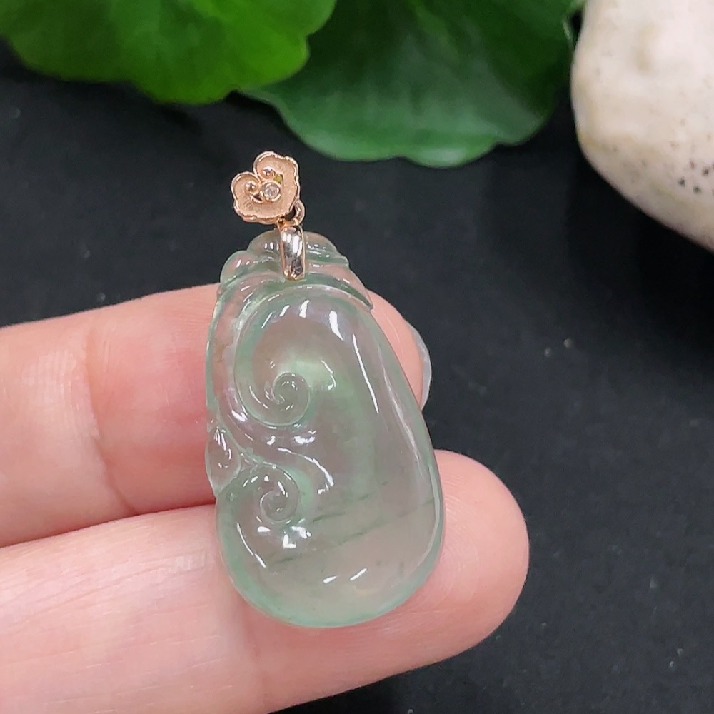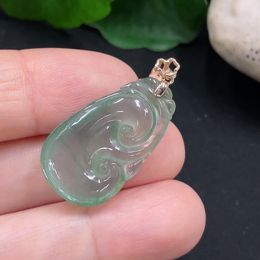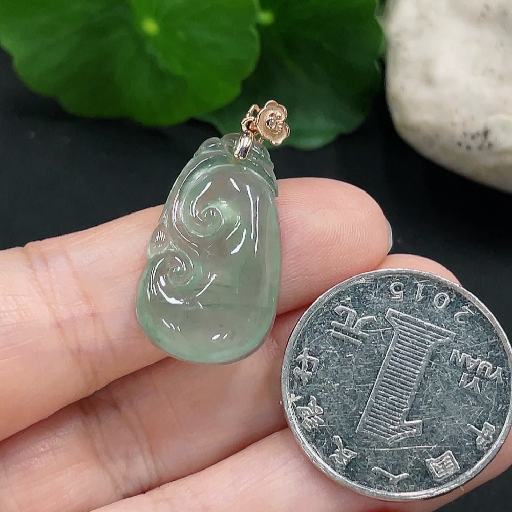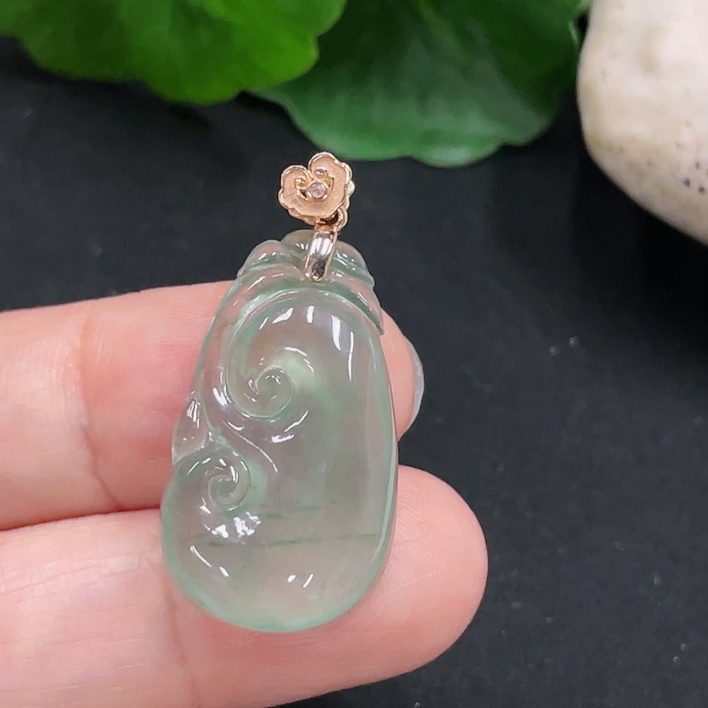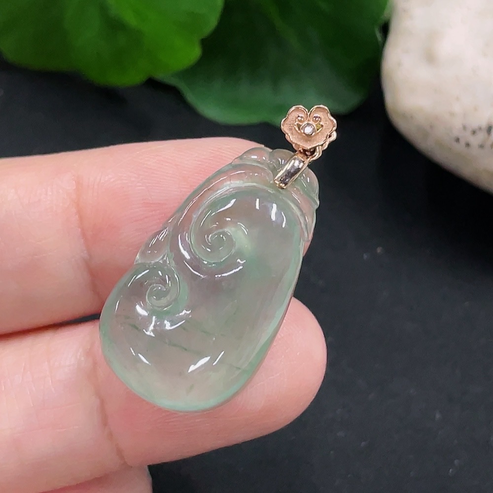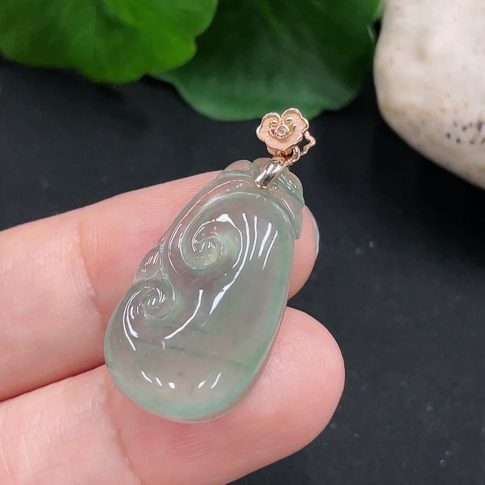 Jadeite Ruyi Pendant 18K Gold Total Weight Approx. 3.1g
