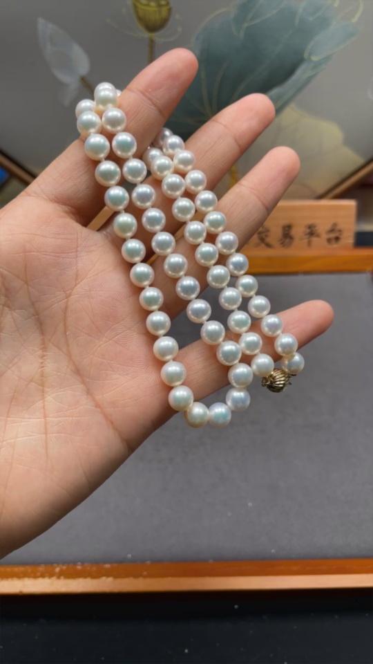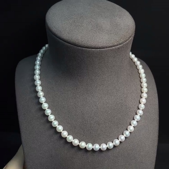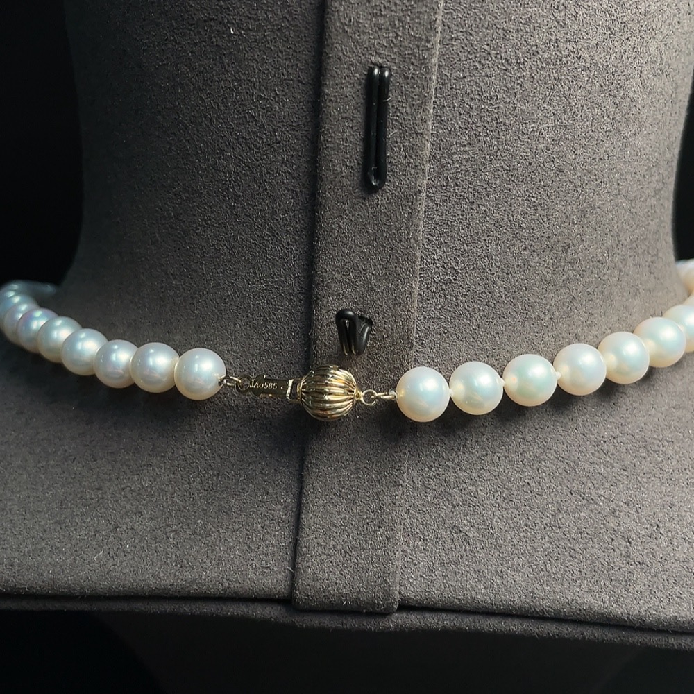 Pearl Necklace 58% Gold Content Undetectable String Total Weight Approx. 26.4g Size About 6.6mm