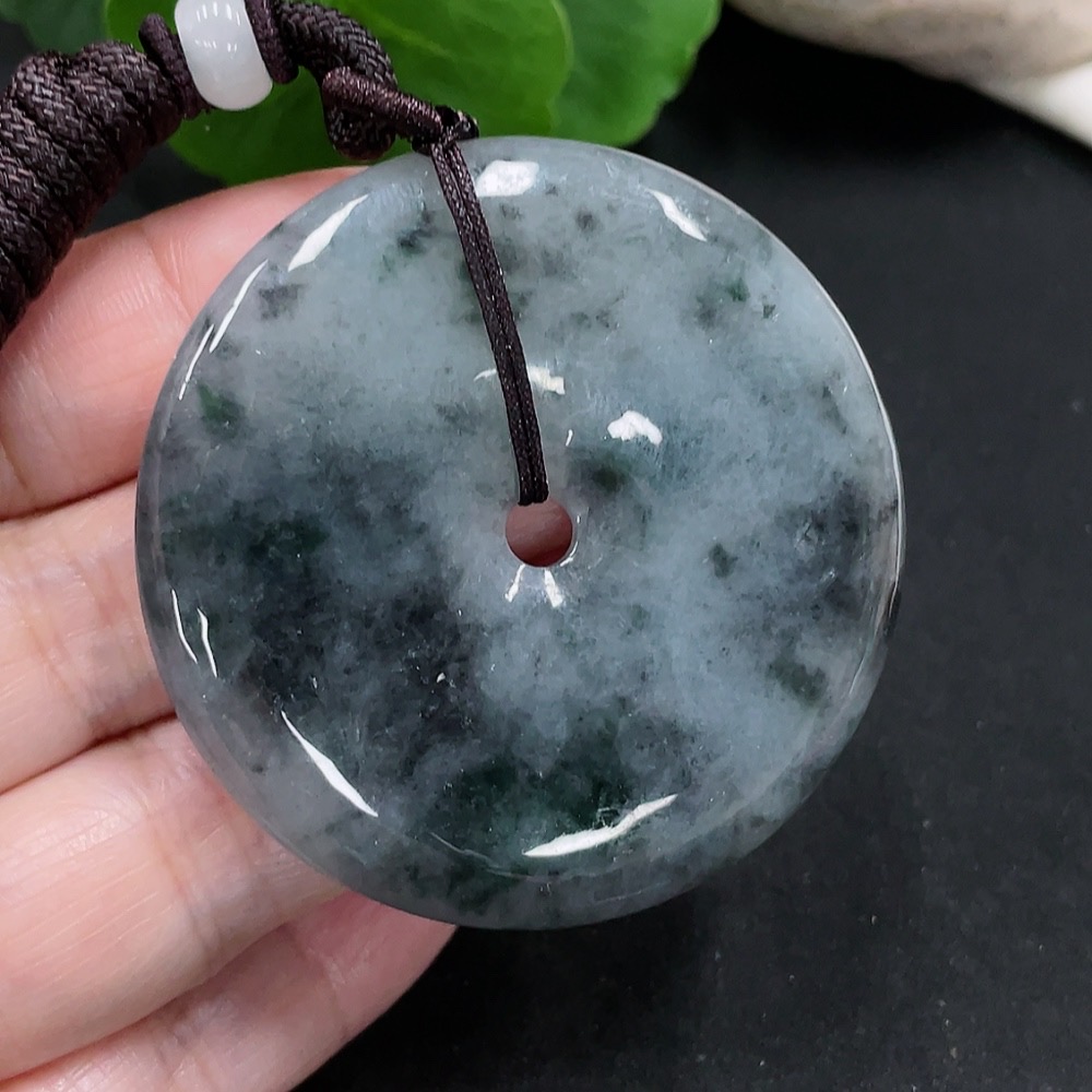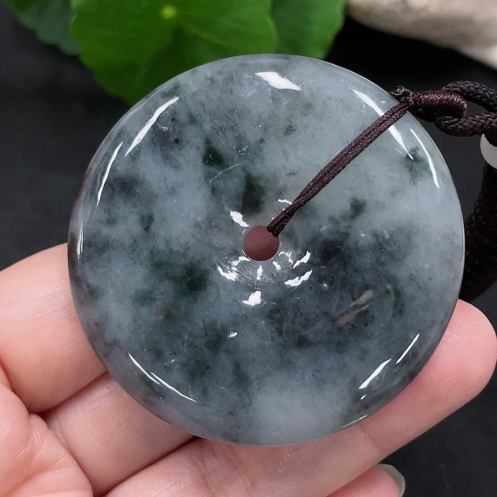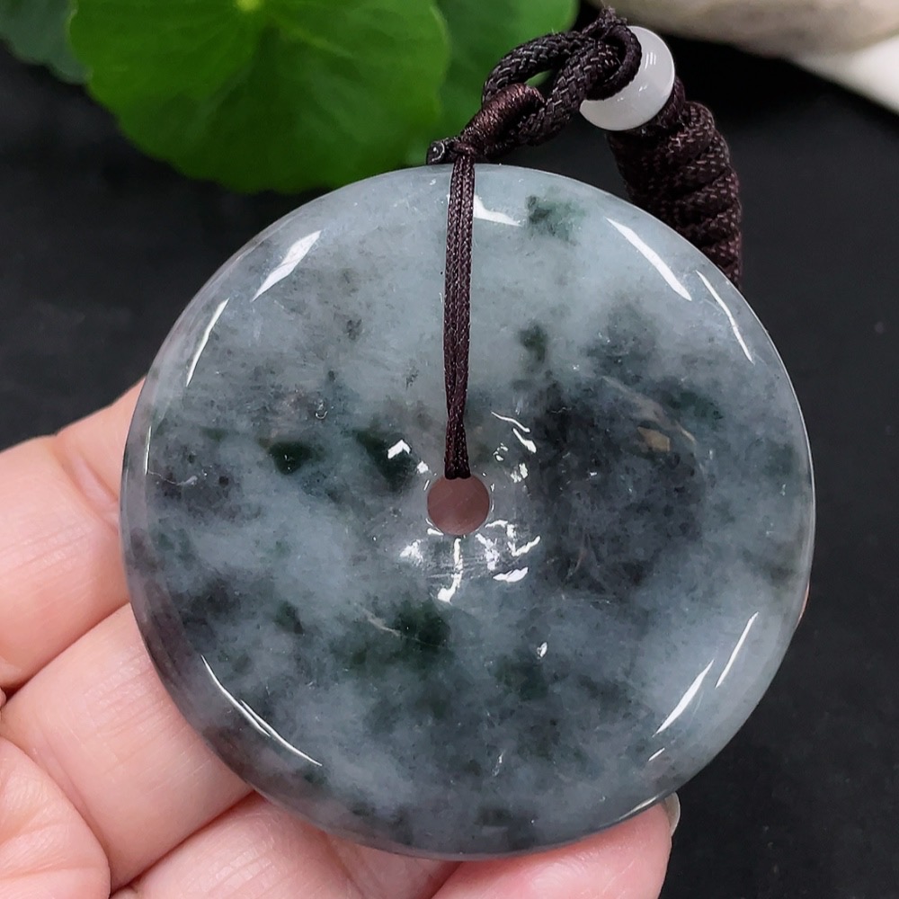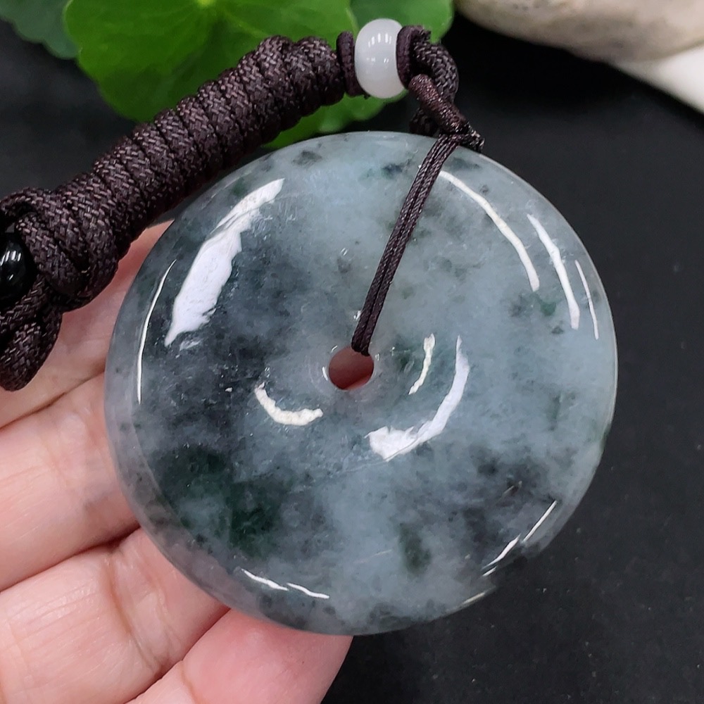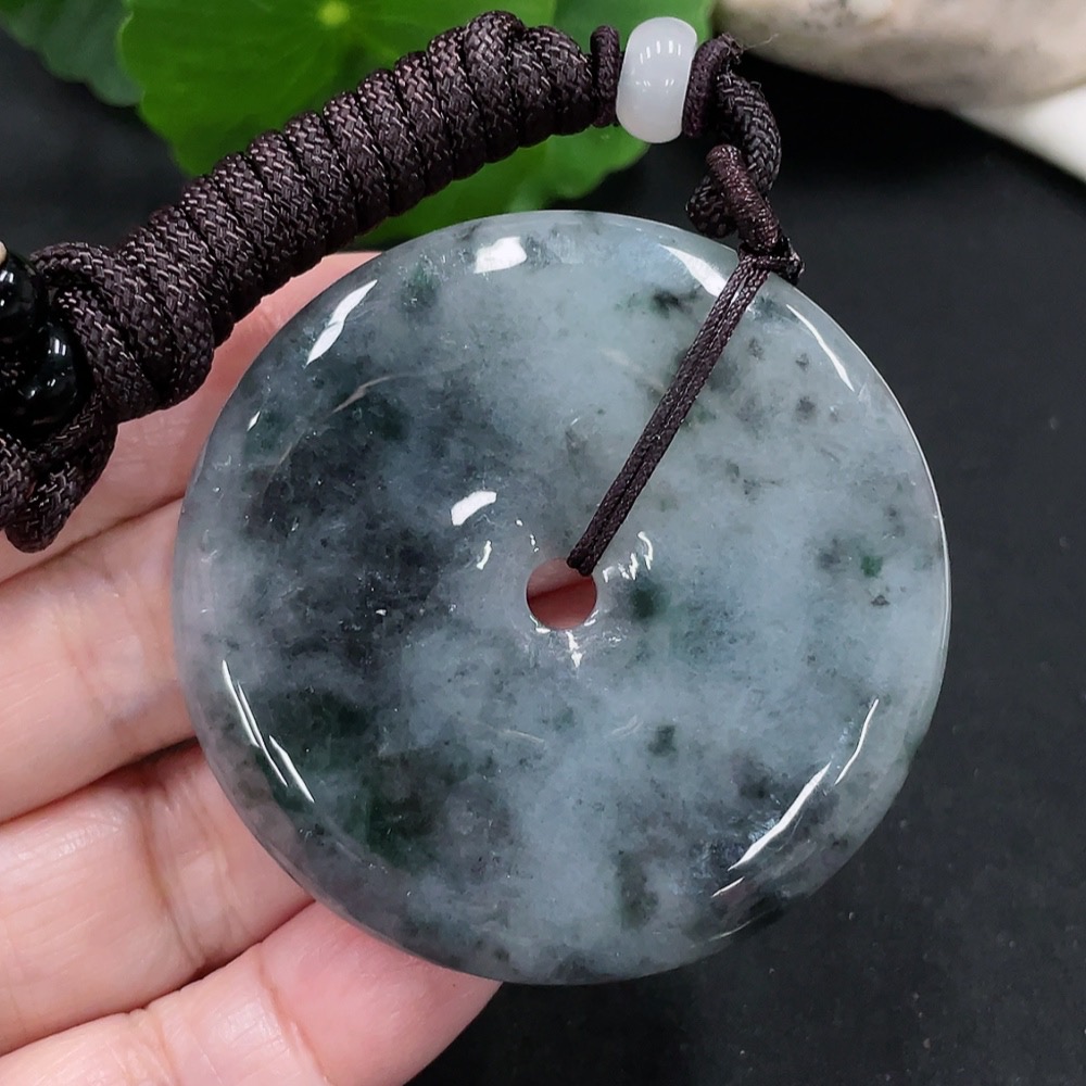 Jadeite Safety Buckle Pendant Total Weight Approx. 42.5g (Including Rope Weight)
