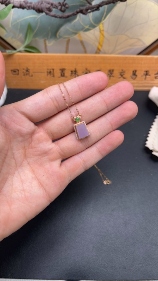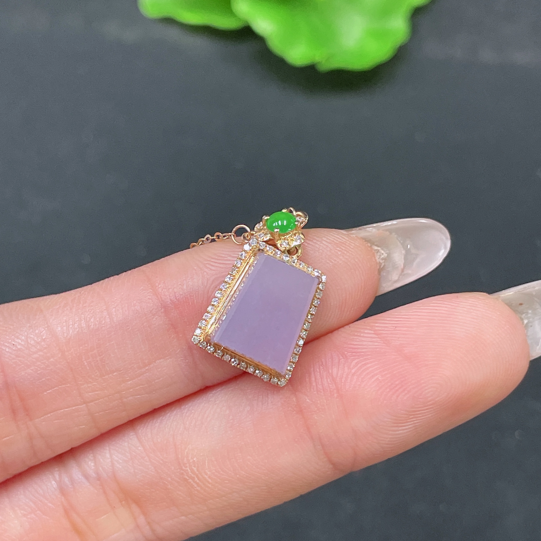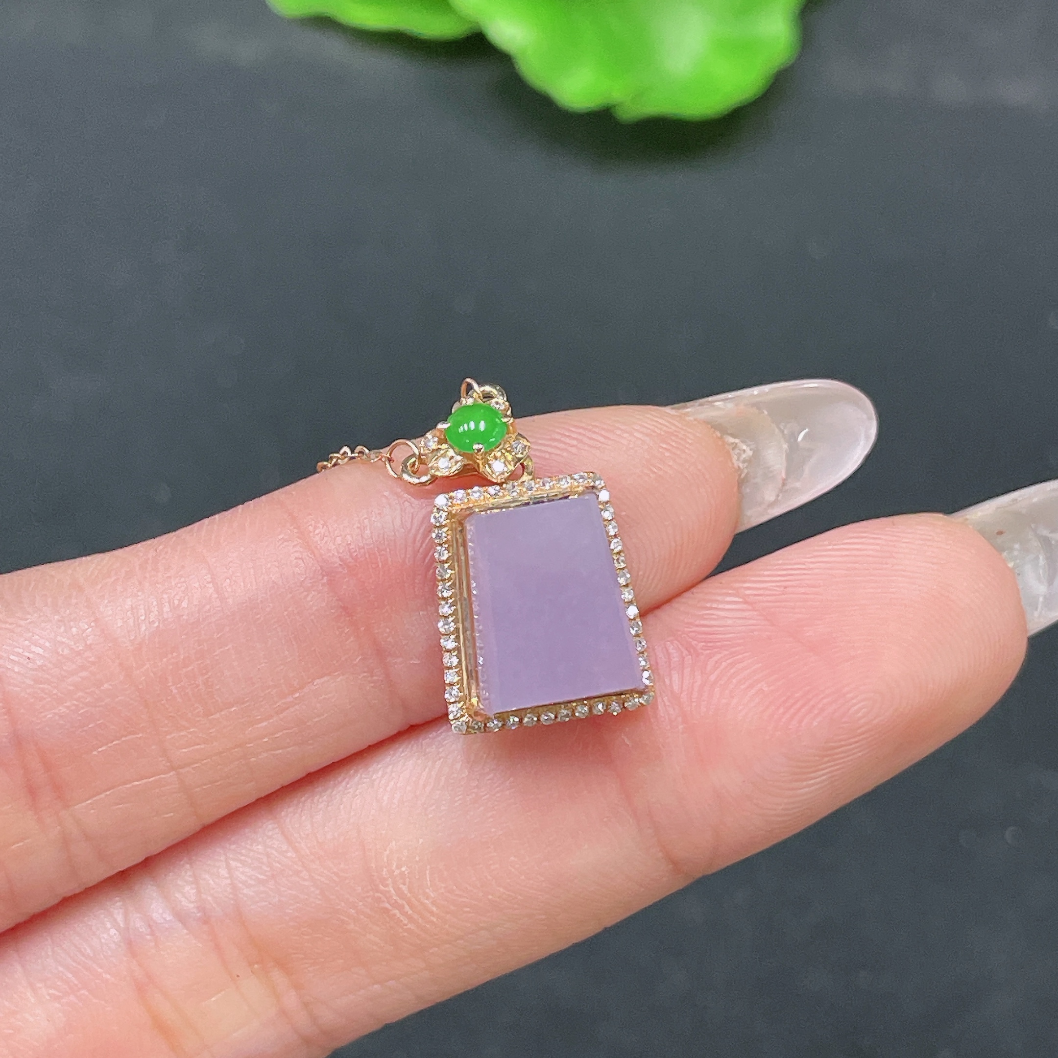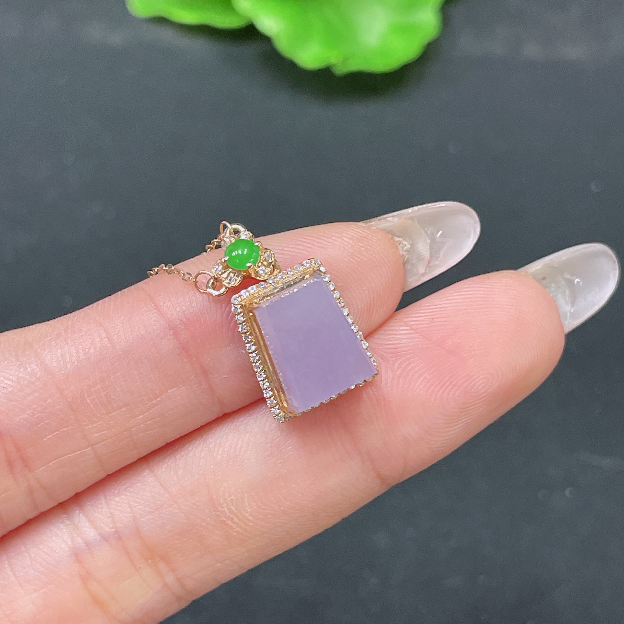 Jadeite Pendant Plain Pendant 18k Gold Inlaid with Diamonds Including Chain Total Weight Approx. 2.44g
