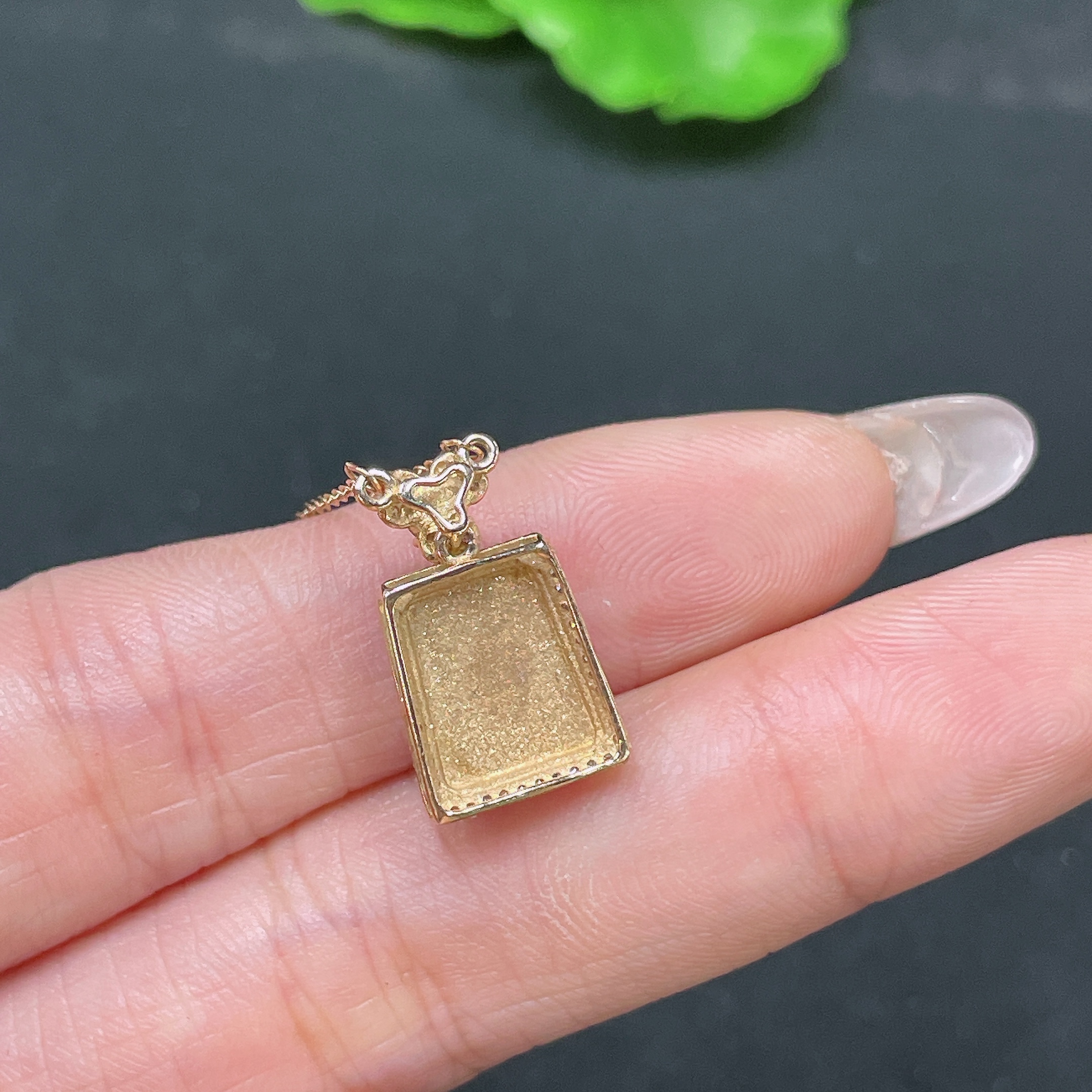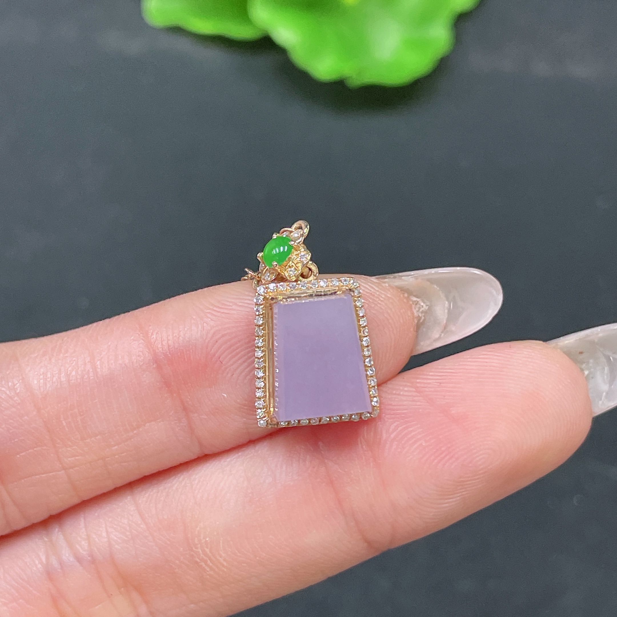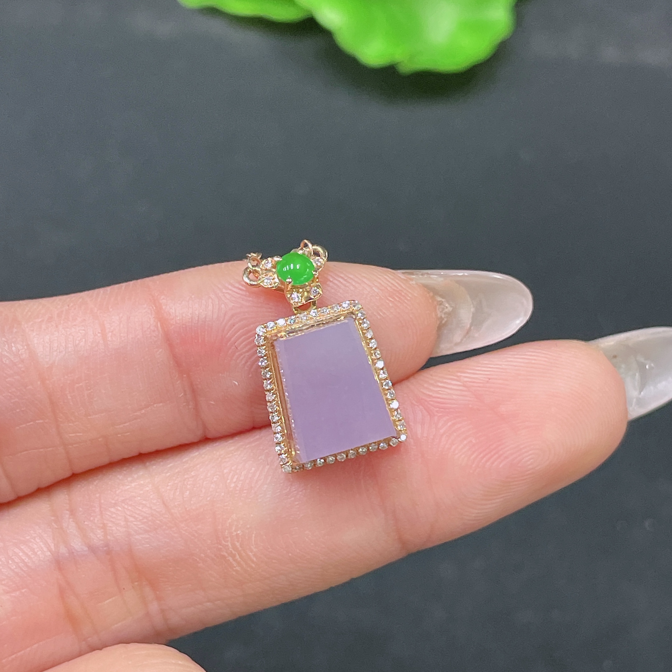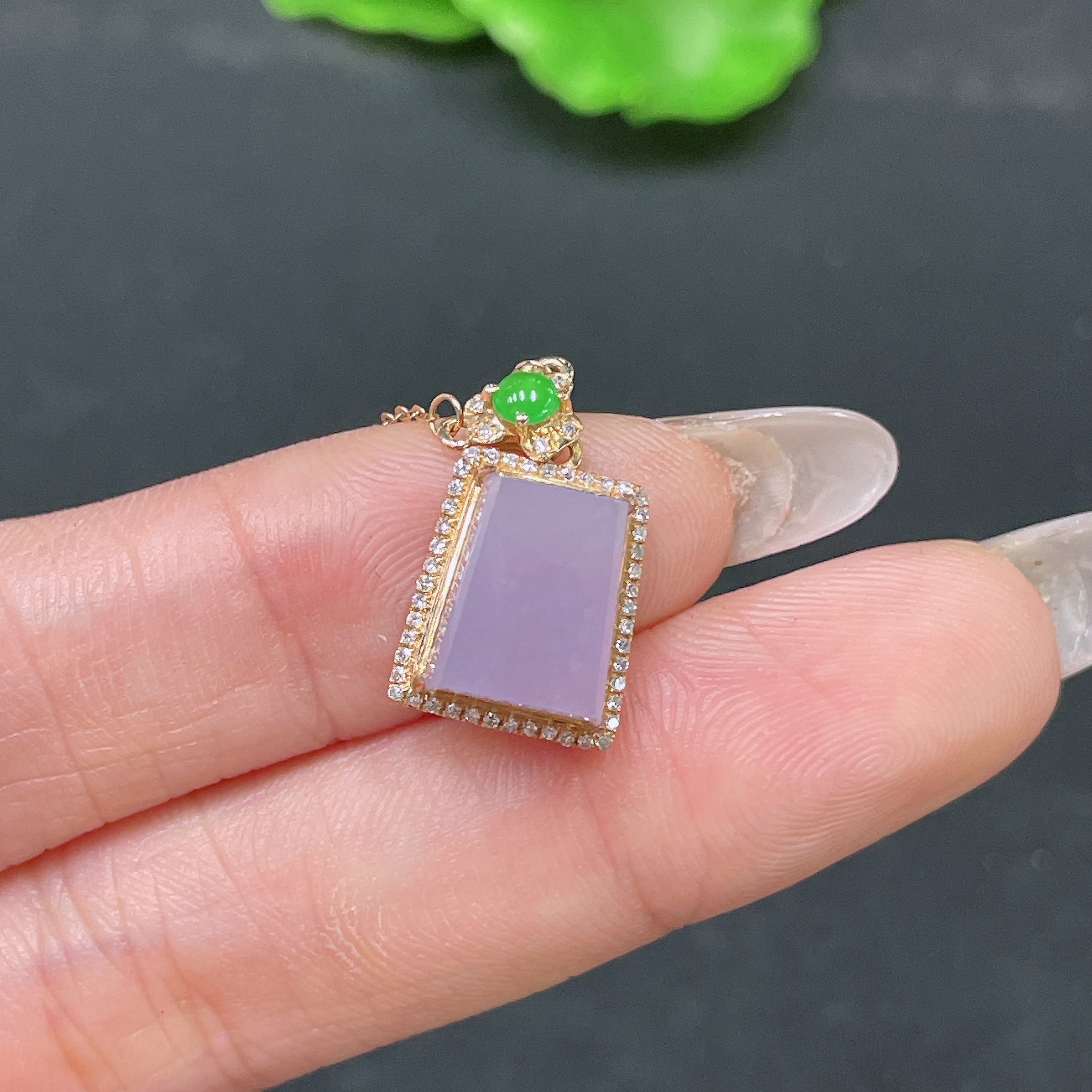 Jadeite Pendant Plain Pendant 18k Gold Inlaid with Diamonds Including Chain Total Weight Approx. 2.44g