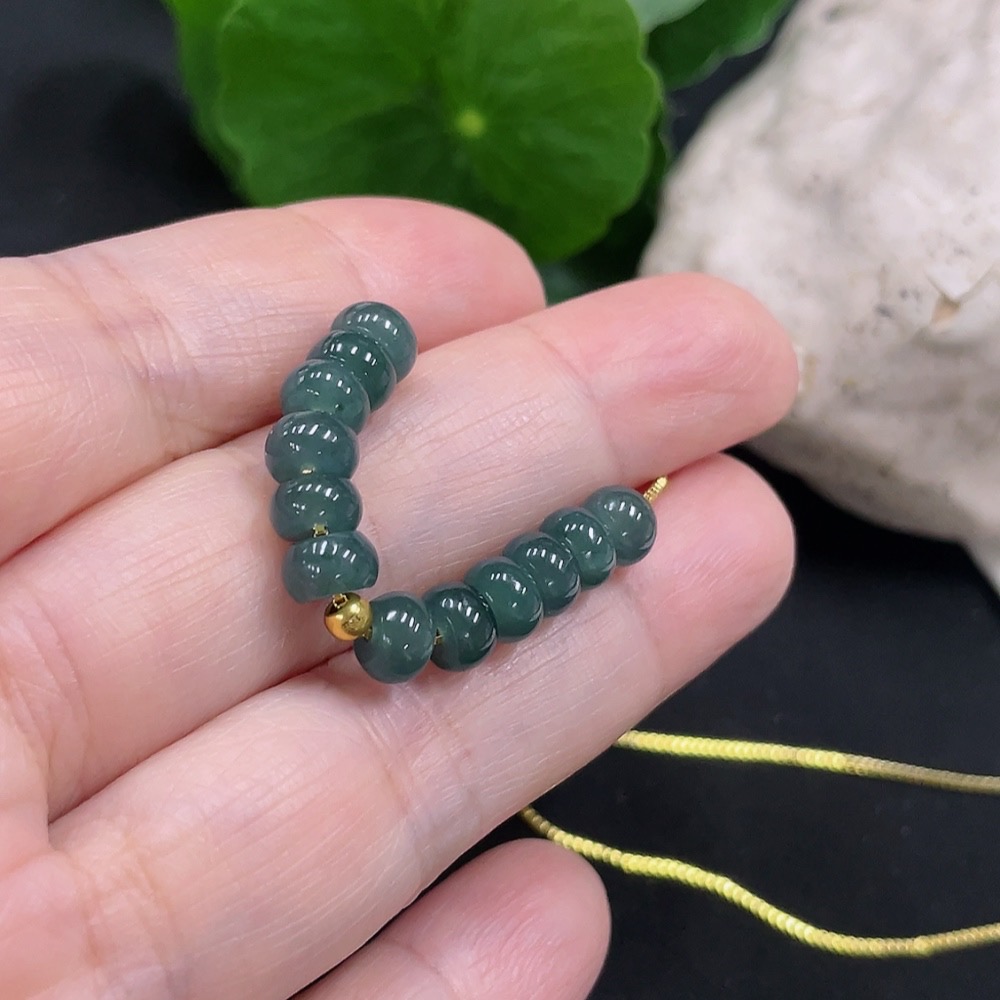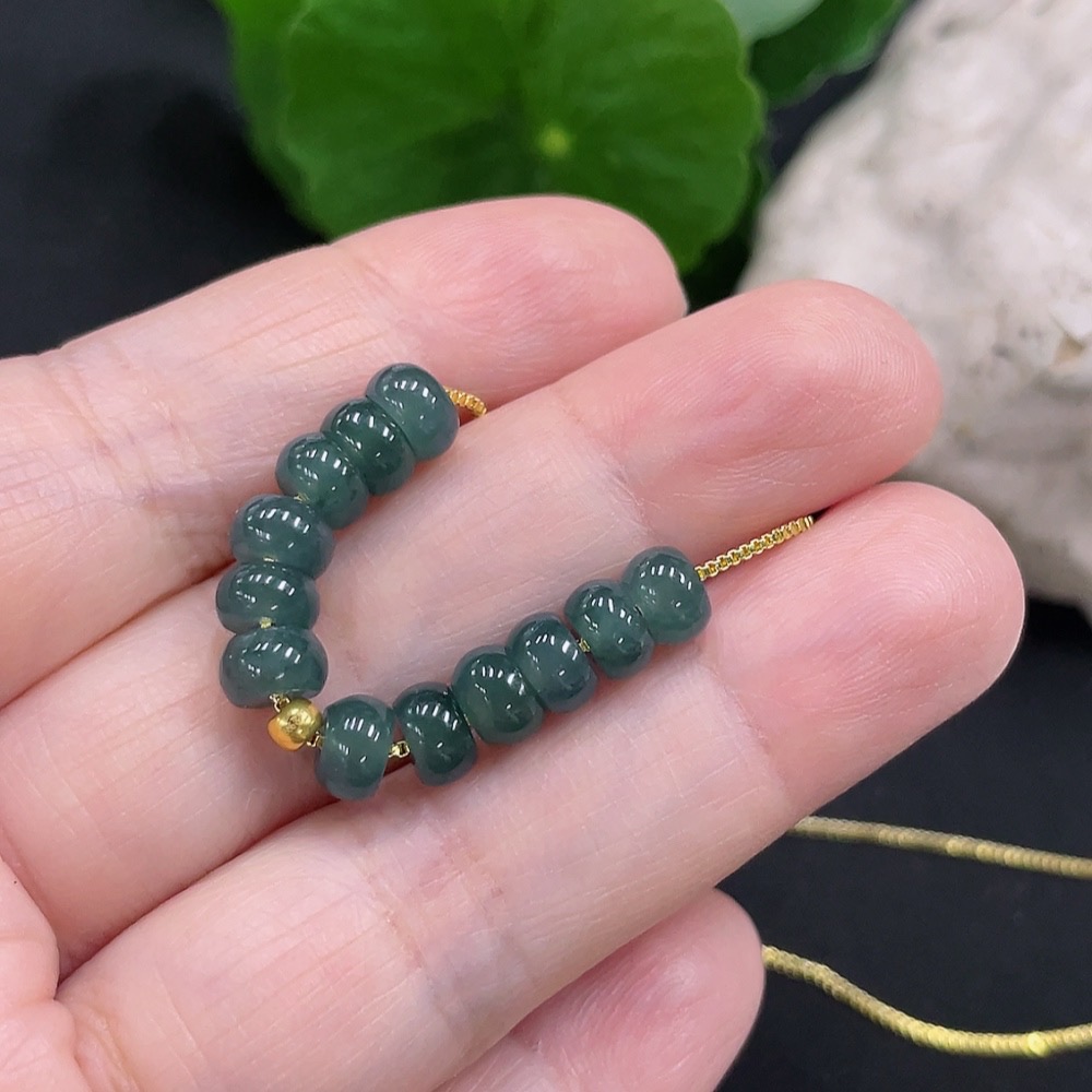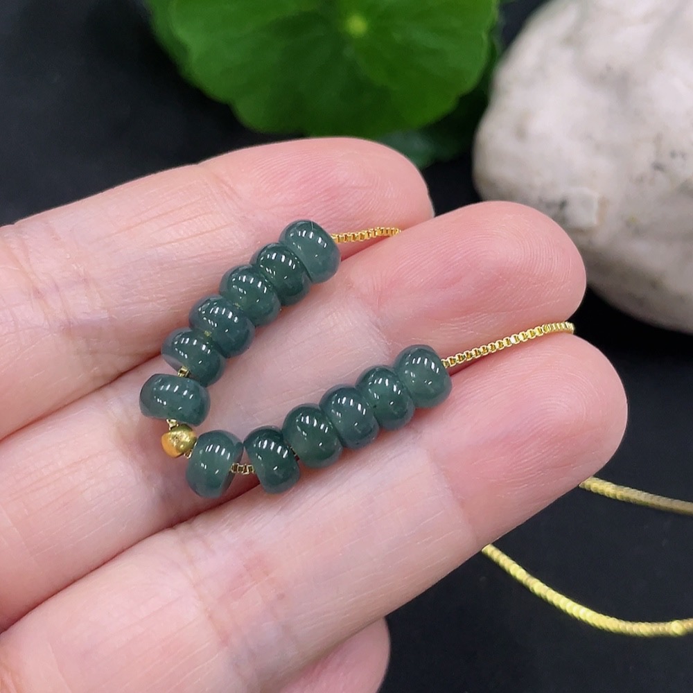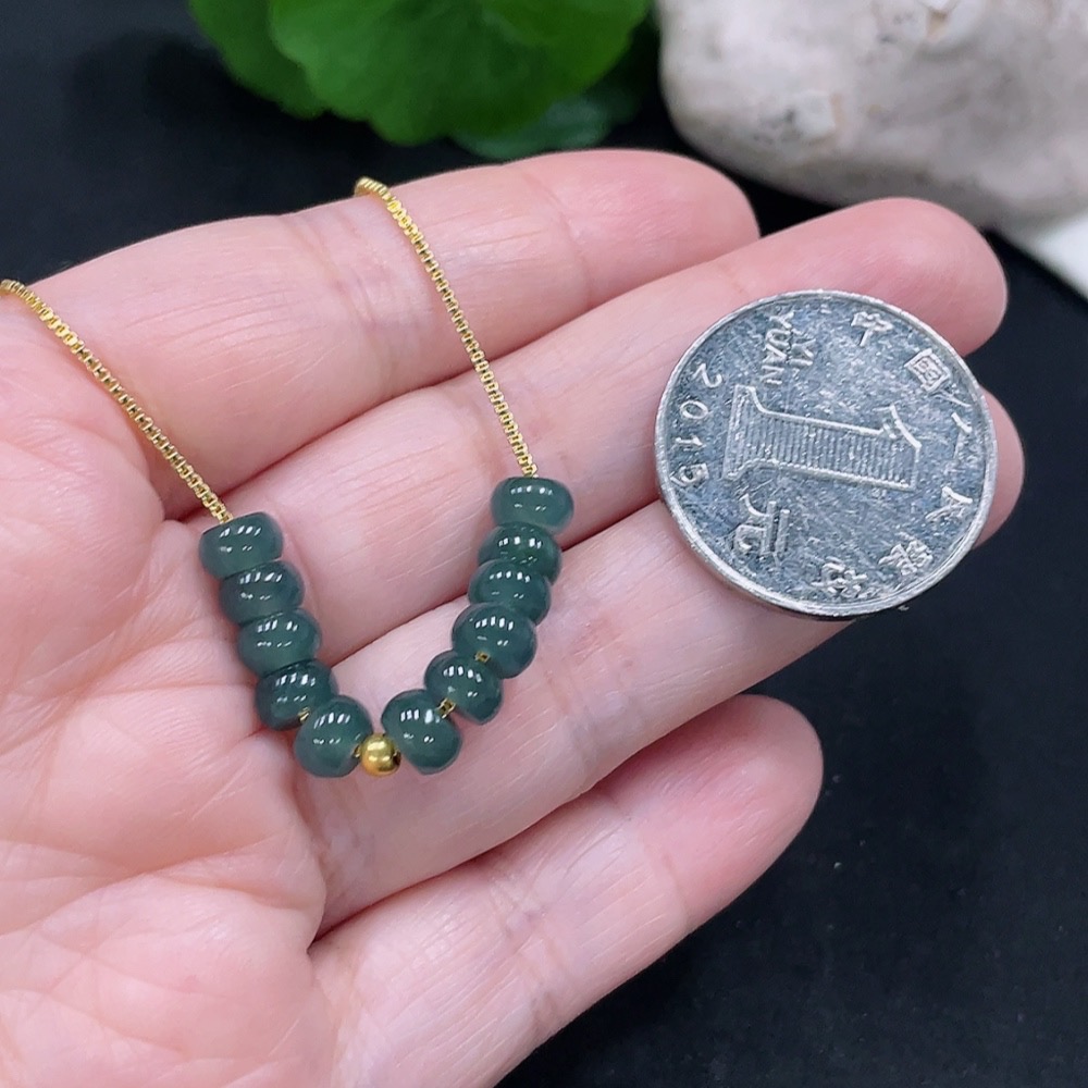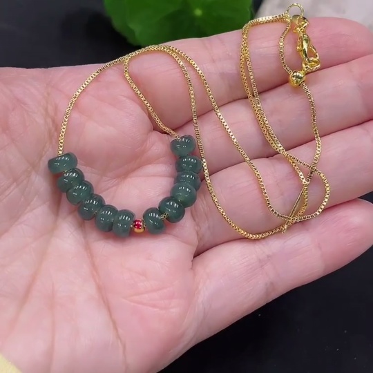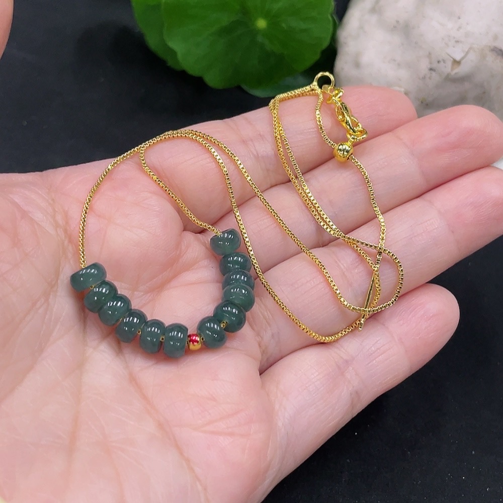 Jadeite Bead Necklace approx. 5.9mm marked red with 97% gold content, non-gold for the rest total weight approx. 5g (including chain)