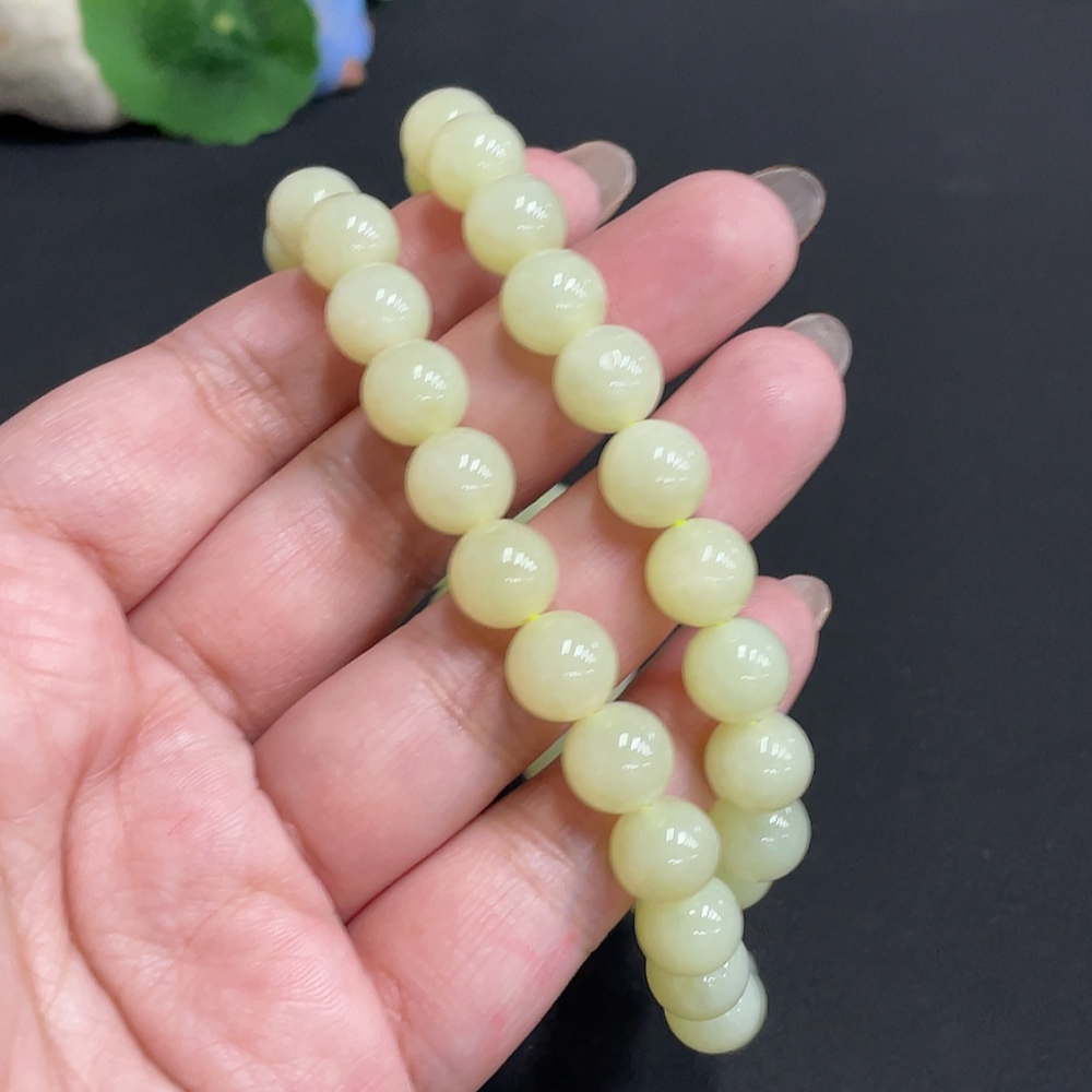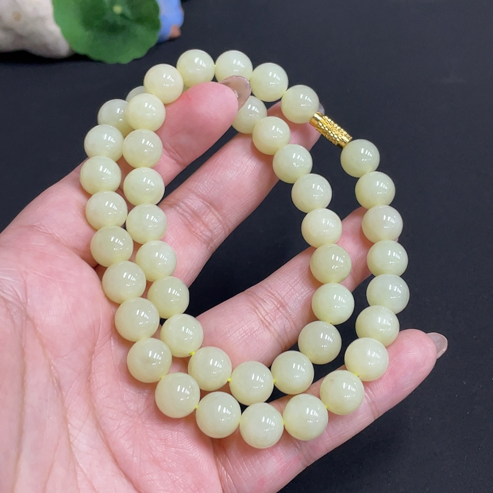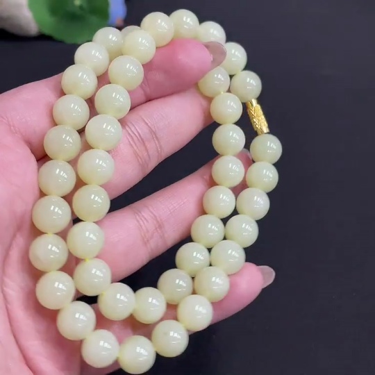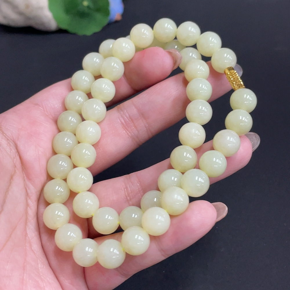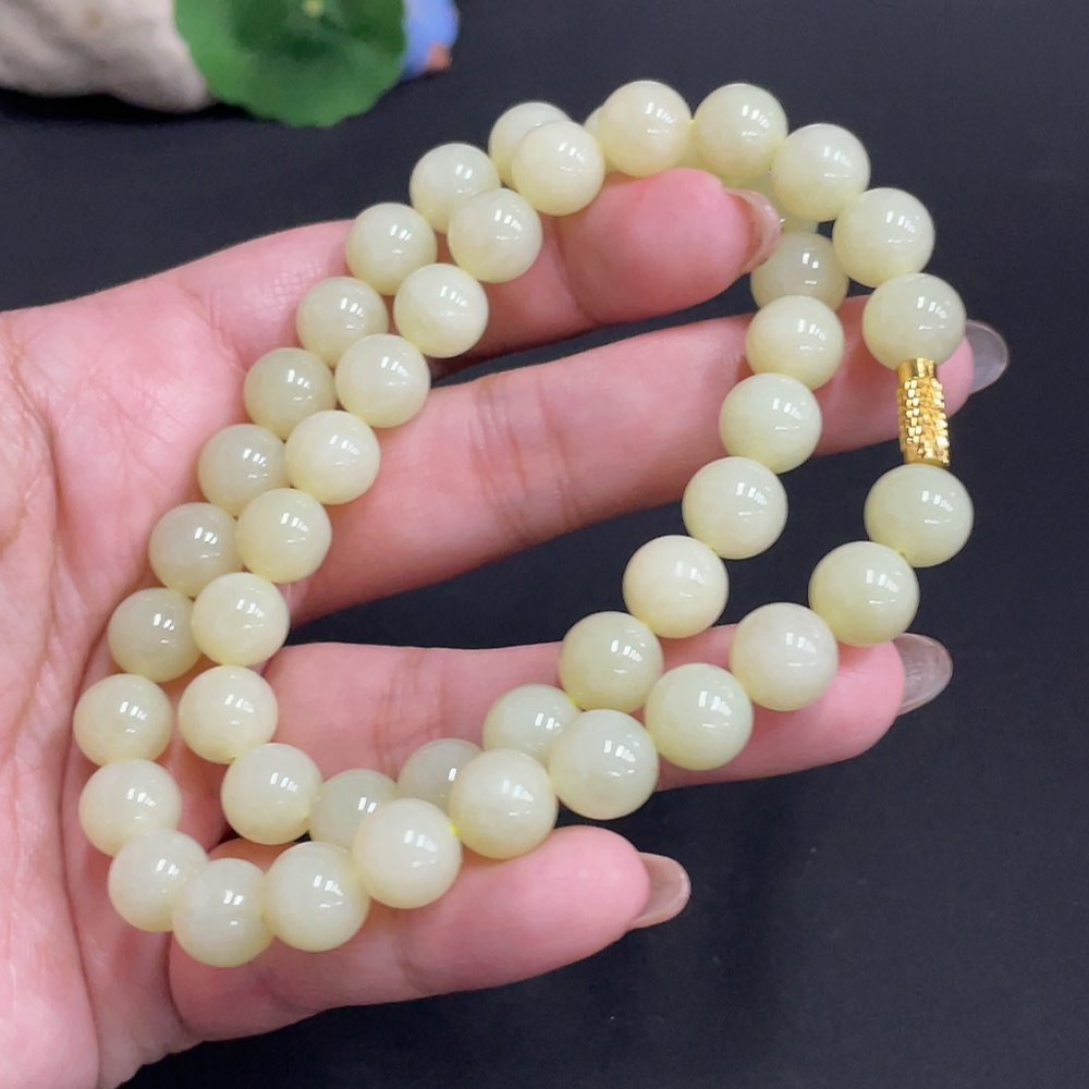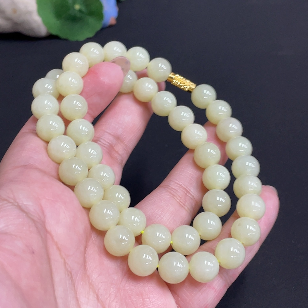 Hetian Jade Bead Necklace Approx. 9.3mm Total Weight About 62.9g Non-Gold