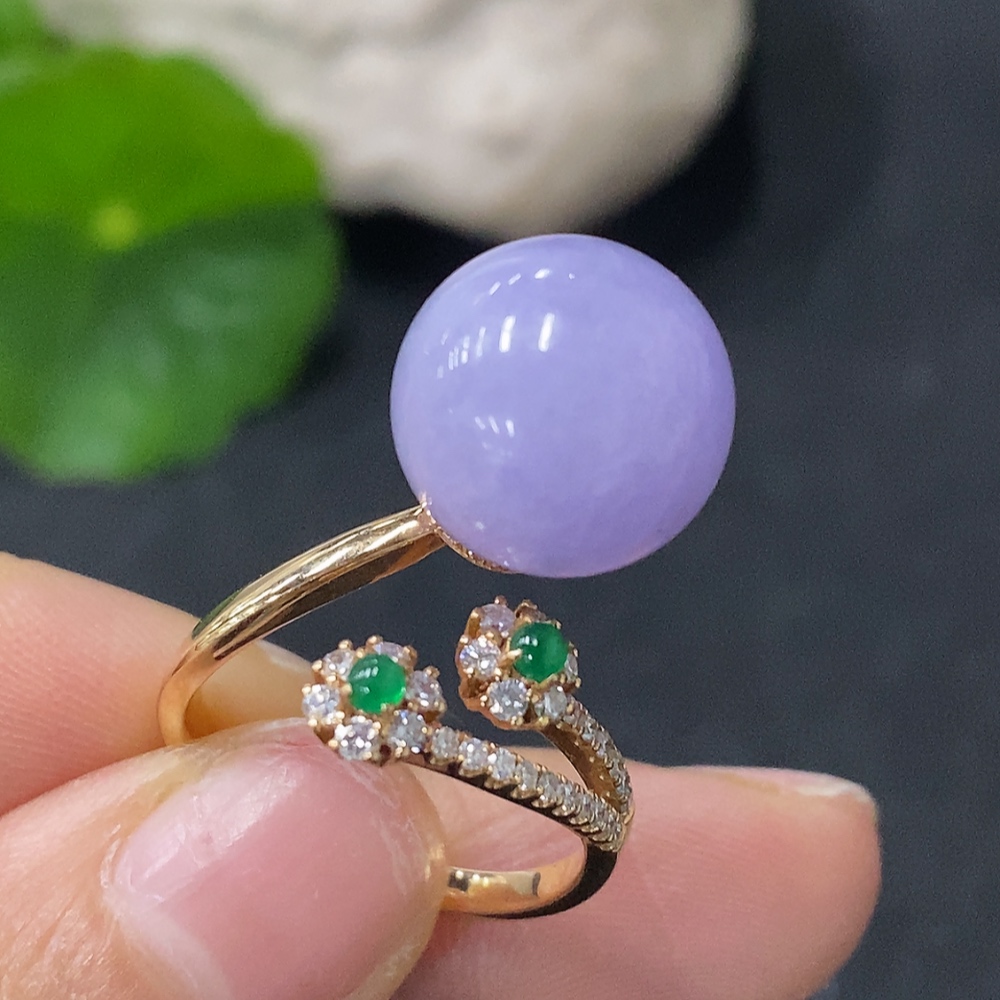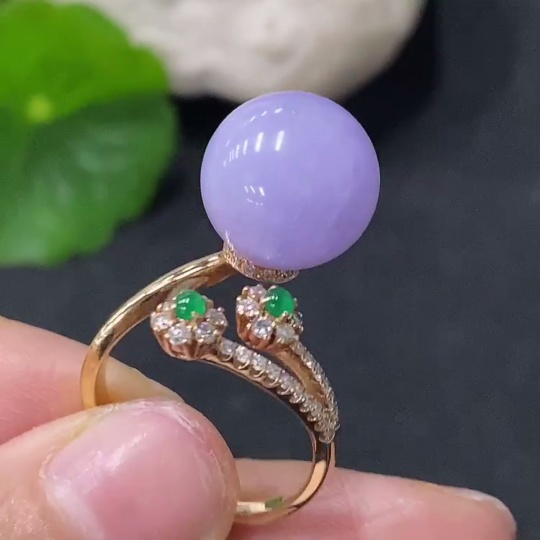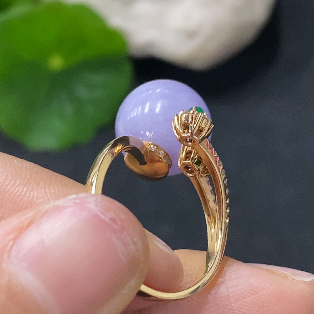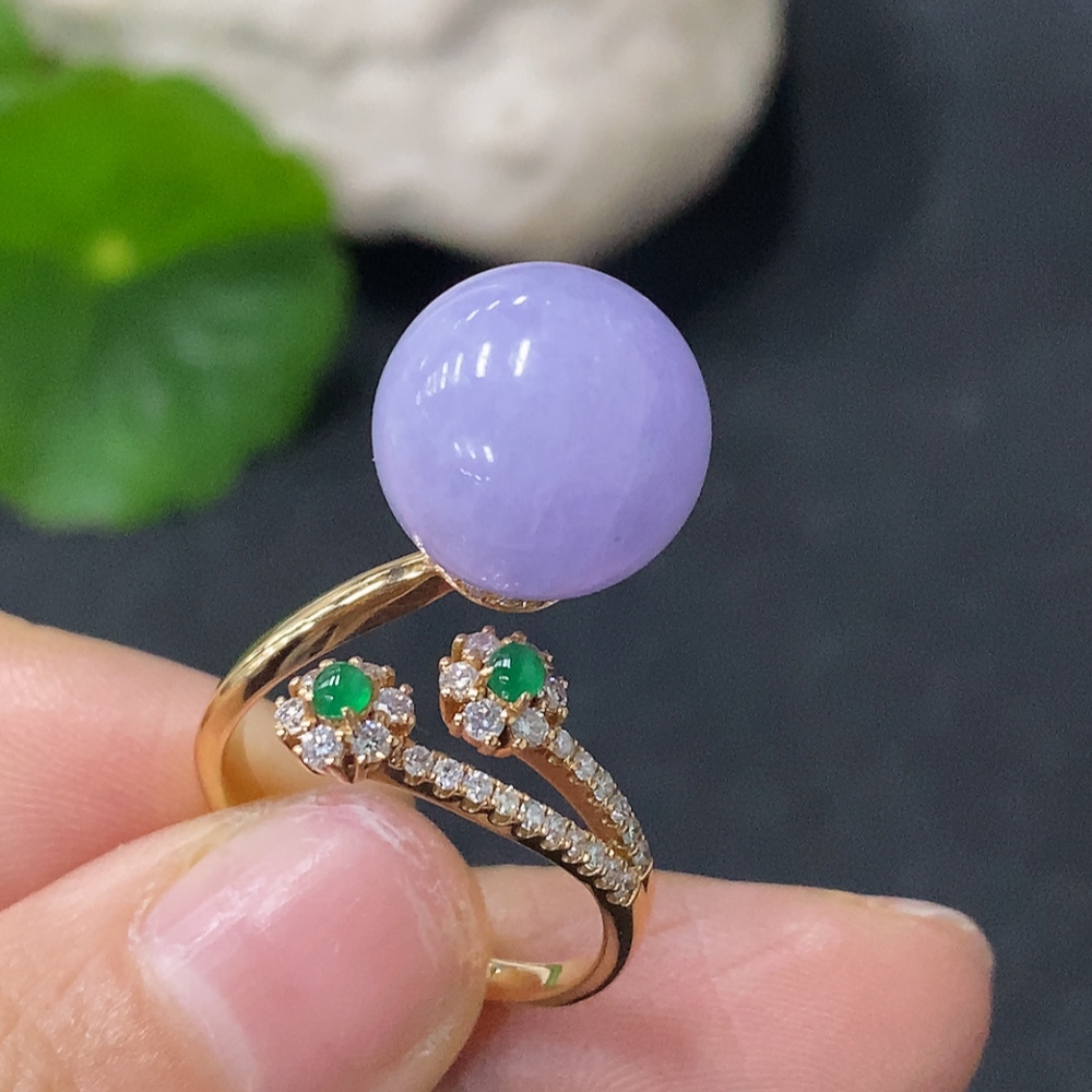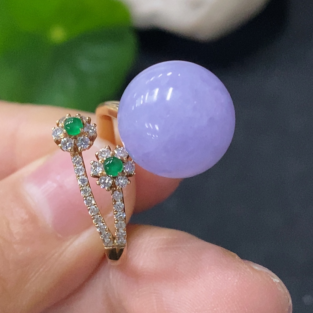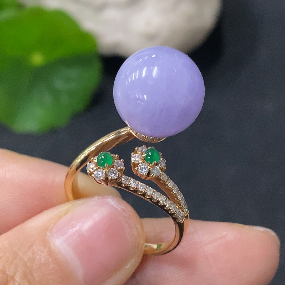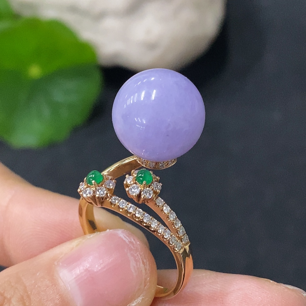 Jadeite inlaid ring 18k with diamond size 13 total weight approximately 6.72g with non-A bead
