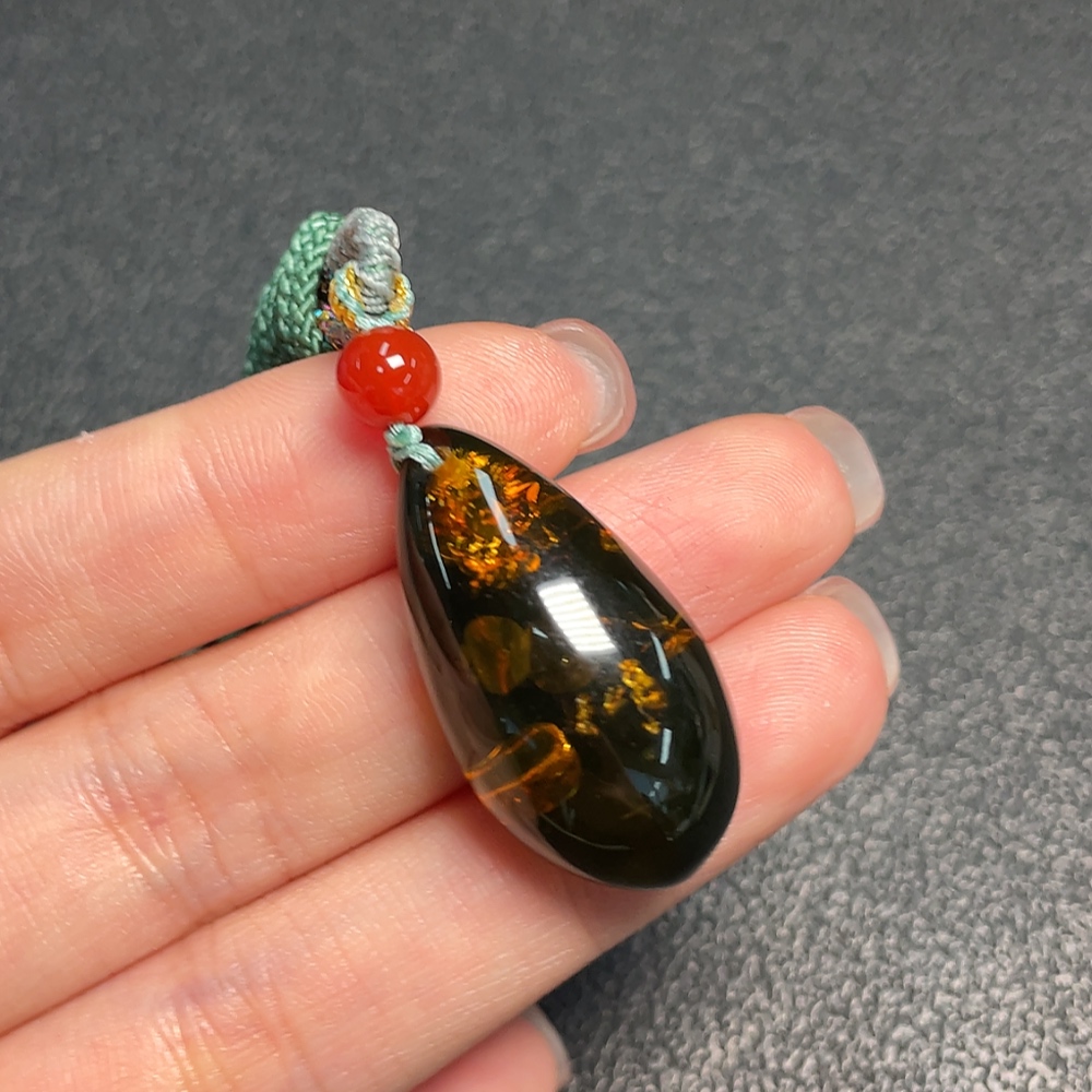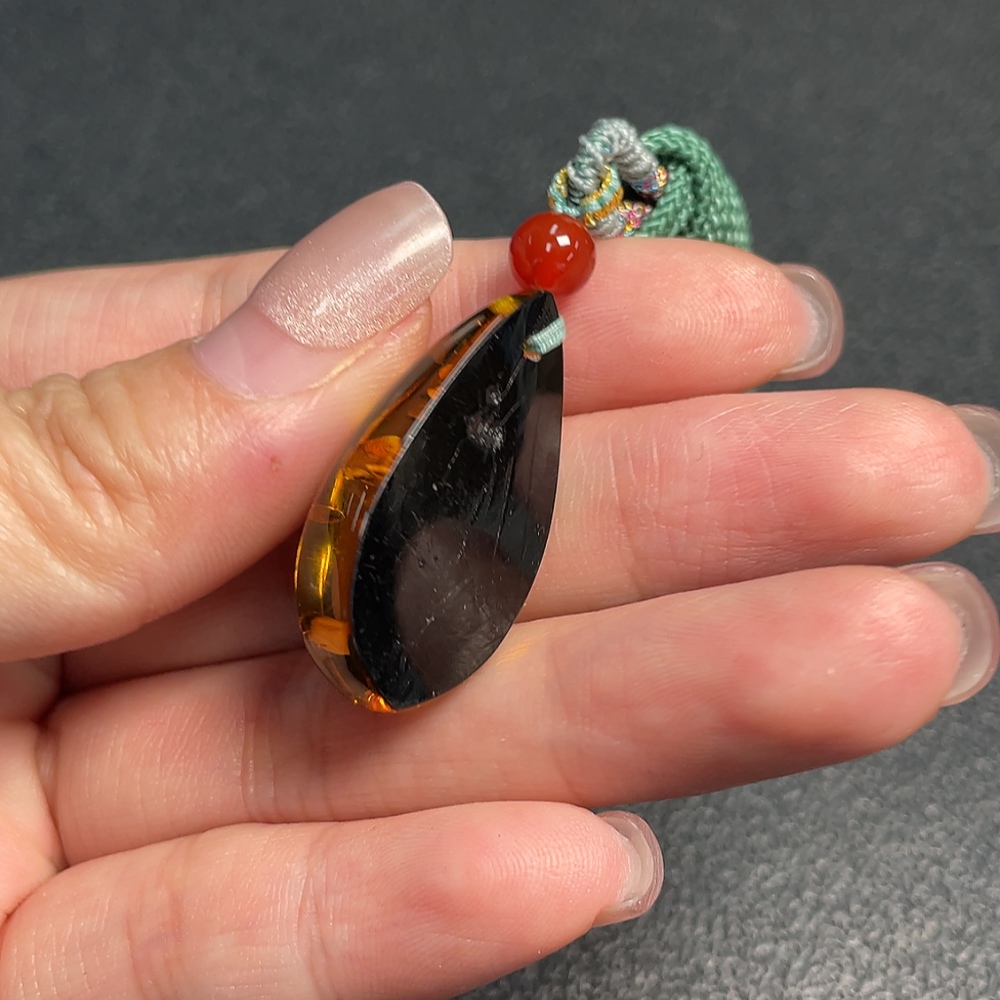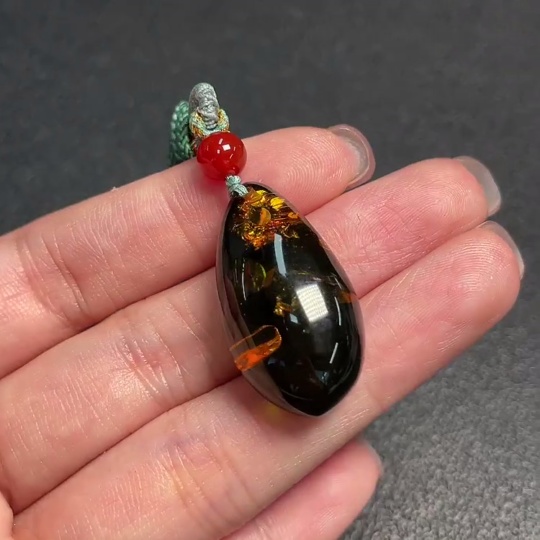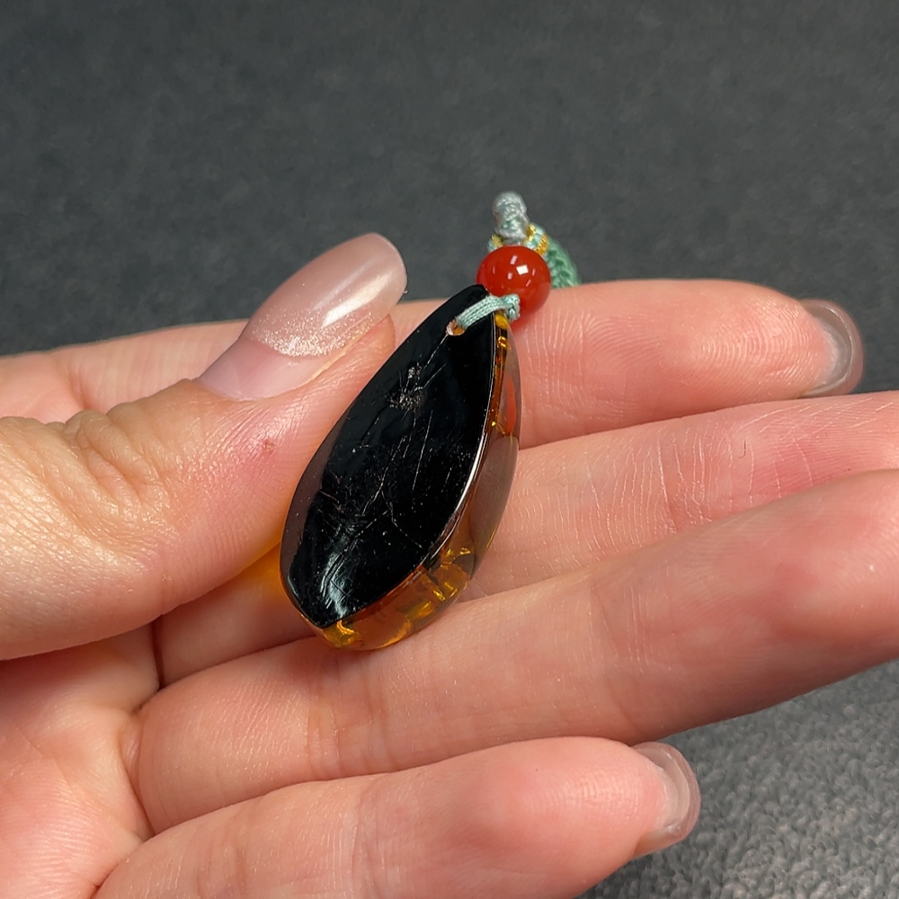 Amber beeswax pendant, total product weight approx. 4.79g including rope