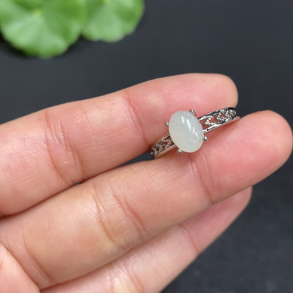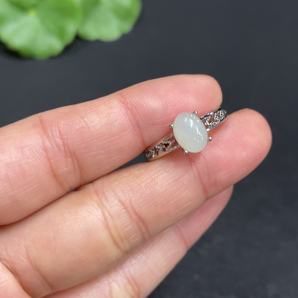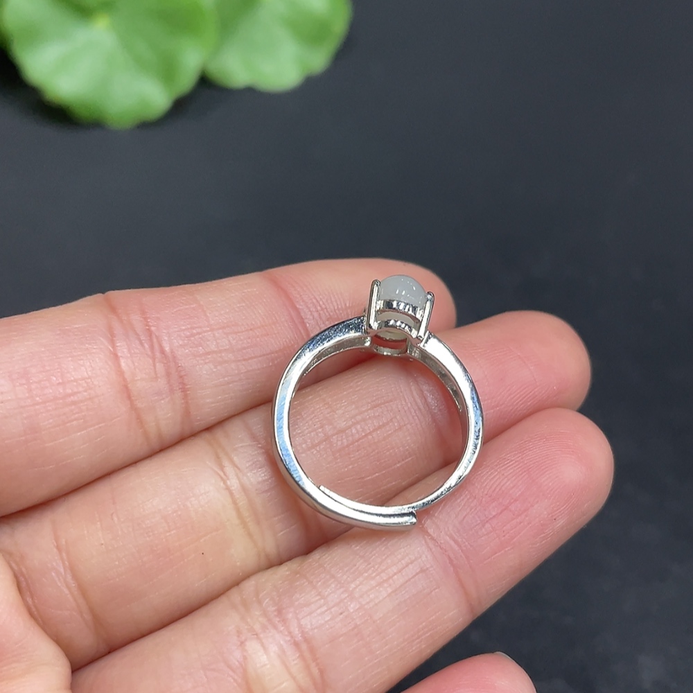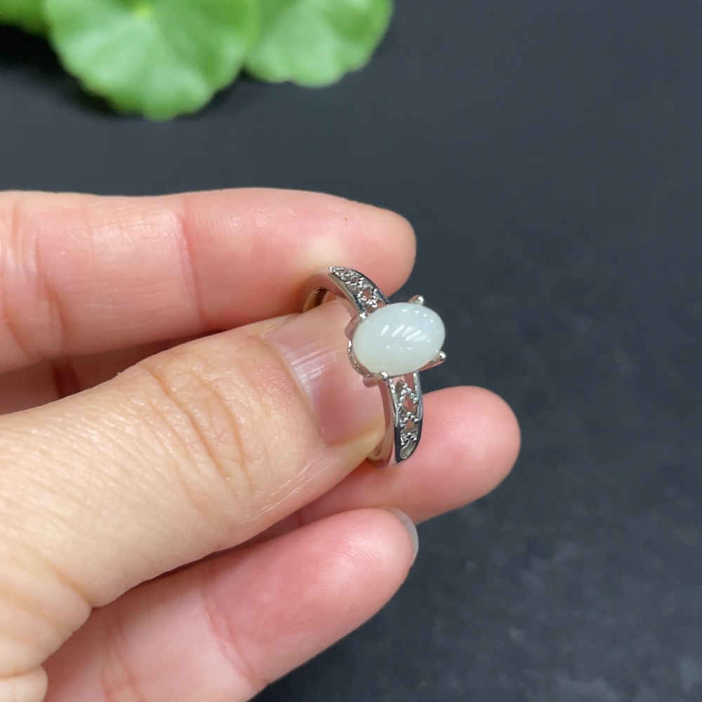 Hetian Jade Inlaid Adjustable Ring Non-Gold Inlaid Total Weight About 2g