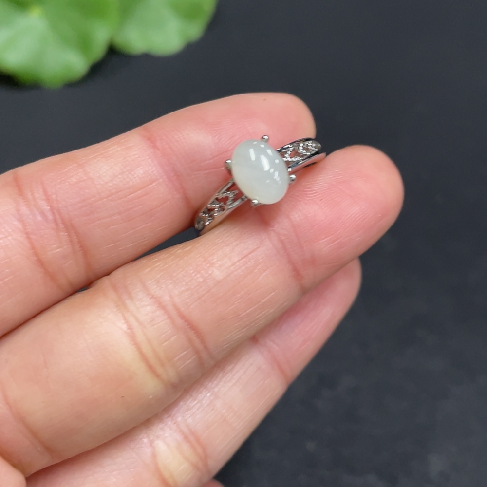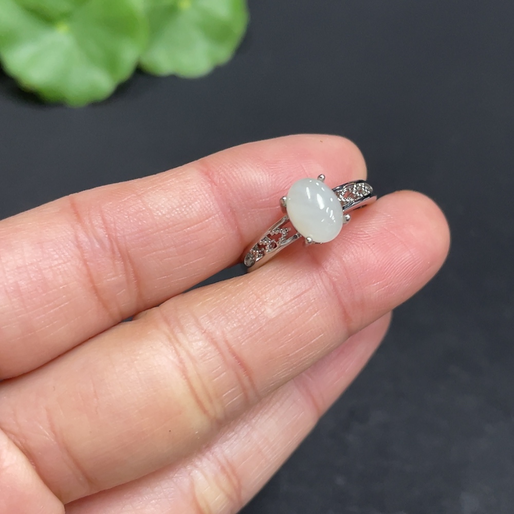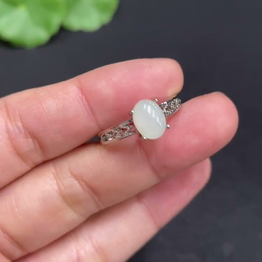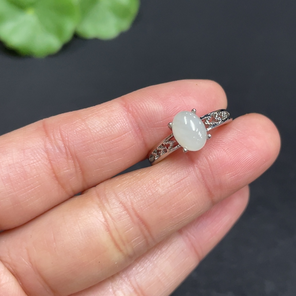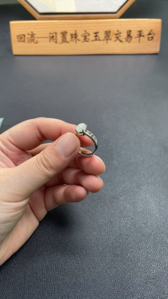 Hetian Jade Inlaid Adjustable Ring Non-Gold Inlaid Total Weight About 2g