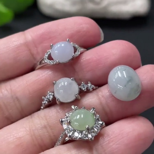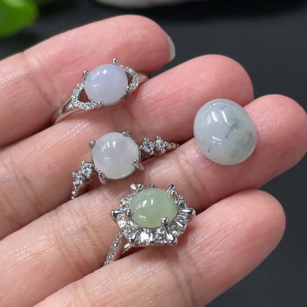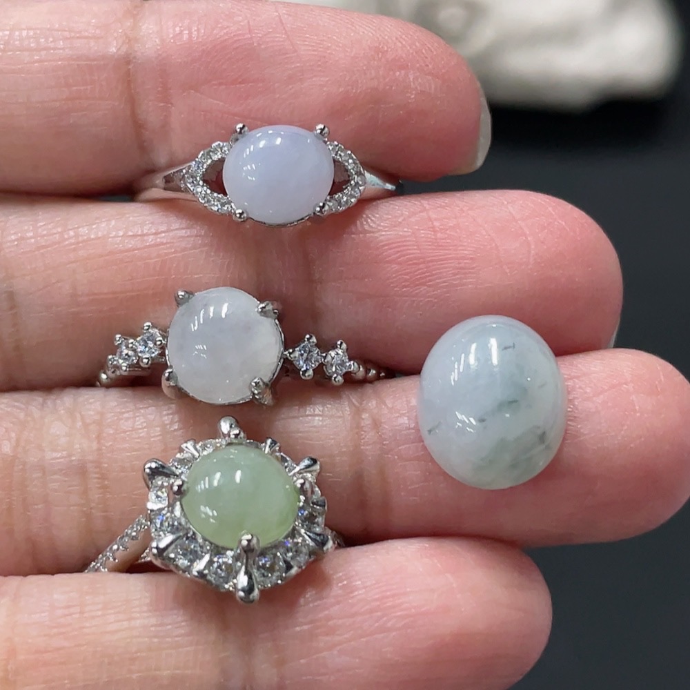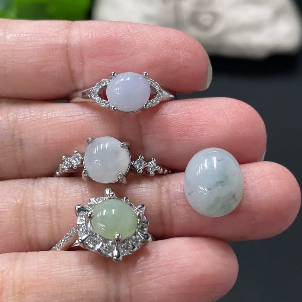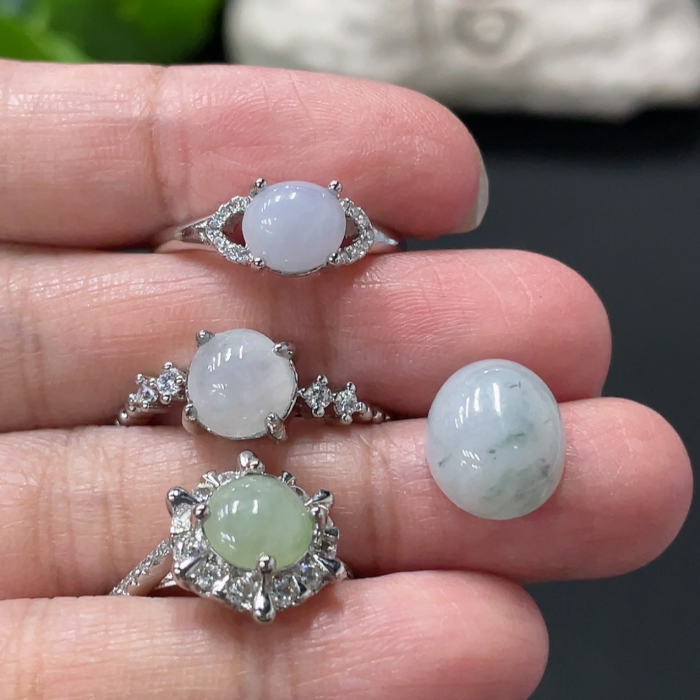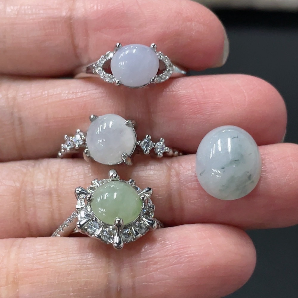 Jadeite Inlaid Ring Cabochon Sell as a Lot Non-Gold